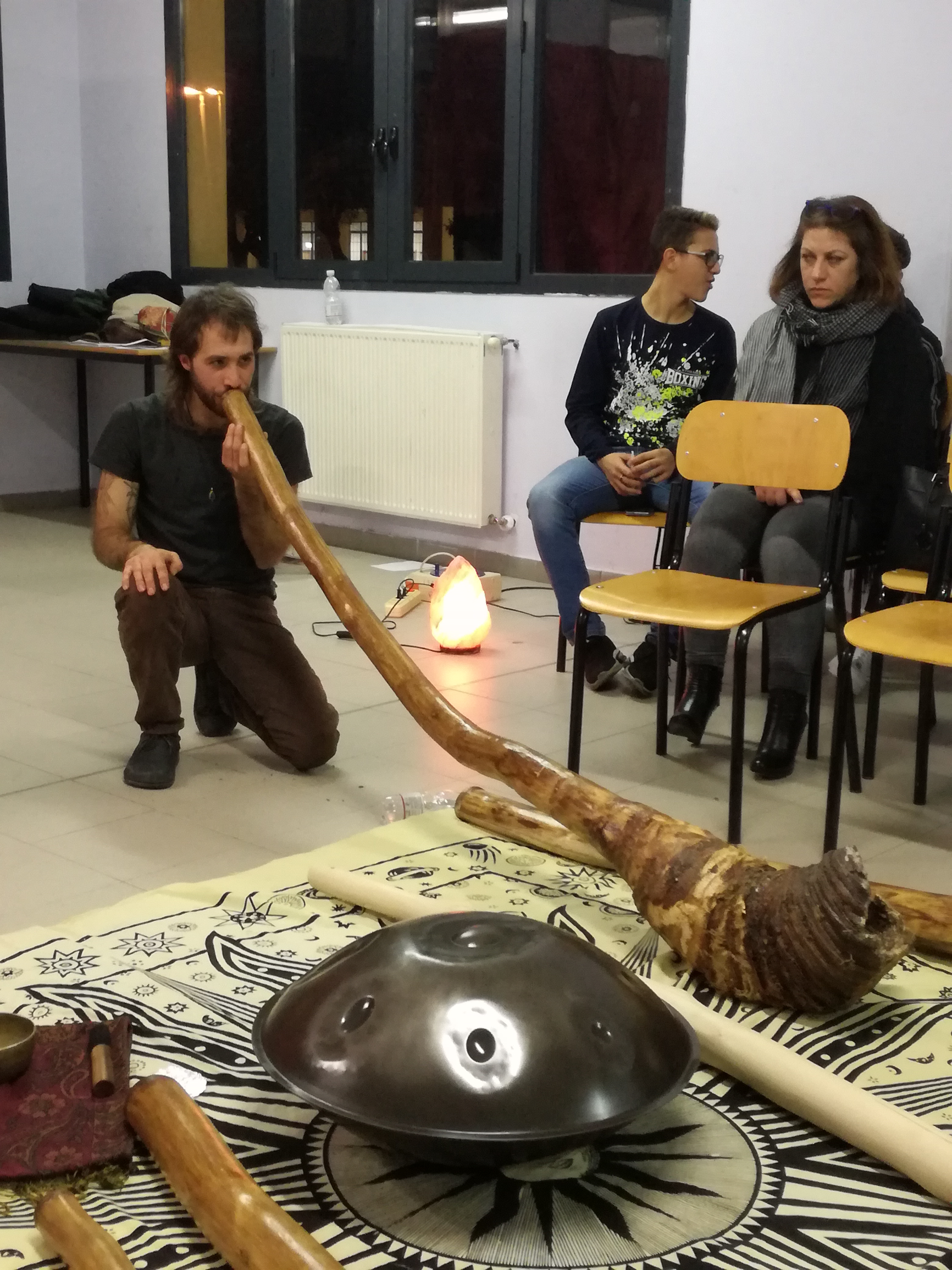 Sorprendente lo spazio riservato alla suono terapia: non spettacolo, ma esperienza che fa stare bene, svuotando le emozioni della giornata e restituendo energia pulita. Sono stati ascoltati i suoni di strumenti tibetani e aborigeni, campane e digeridù grazie all’impegno di un altro ex studente, Luca Natali, che ha fatto sperimentare in cerchio il valore del silenzio. Un tema bandito in genere da un’aula scolastica.
