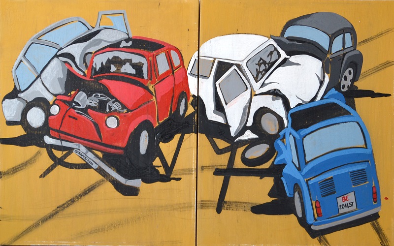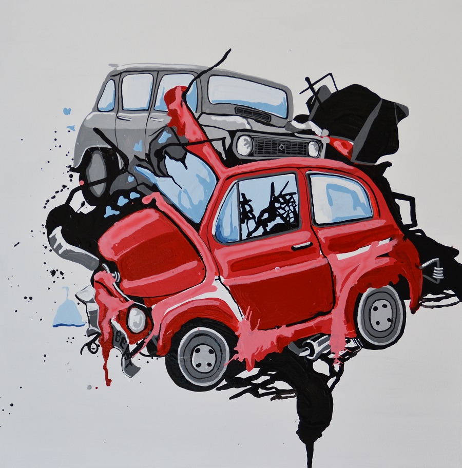 Terzo appuntamento sabato 24 maggio dalle ore 17.00 a Studio7 Arte Contemporanea, via Pennina 19, a Rieti, con l’inaugurazione della mostra personale VIAGGI TURBO-LENTI, a cura di Barbara Pavan. E’ l’assenza la principale protagonista degli ultimi lavori di Stefano Bergamo: le strade segnate dal transito delle sue automobiline di cui non si intuiscono che le tracce del passaggio, frammenti di un viaggio che non è dato sapere se ancora in corso o se già arrivato al termine. Ancora una volta Bergamo racconta, attraverso il colorato linguaggio pop che lo caratterizza, l’avventura del quotidiano: nel suo universo di automobiline, metafora dei percorsi umani, relazionali ed esistenziali, si alternano il caos ed il silenzio, la velocità ed il lento fluire del traffico, il modellino nuovo fiammante ma anche il cimitero di automobili. Nello spazio di una tela, l’artista si interroga sul significato ed il mistero della vita e della morte, senza abbandonare mai la cifra stilistica ed ironica che lo contraddistingue. La mostra sarà visitabile fino al 13 giugno 2014. Ingresso libero. (Infoline mob.320.4571689).