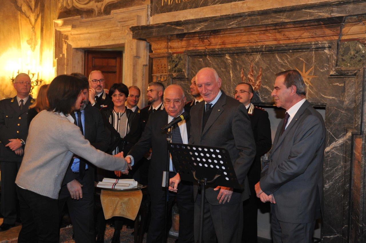 Il Prefetto Crudo ha poi consegnato le onorificenze dell’“Ordine al Merito della Repubblica Italiana”, conferite con decreto del Presidente della Repubblica del 2 giugno 2017, all’Ufficiale Colonnello Cosimo d’Elia, Comandante Provinciale della Guardia di Finanza di Rieti, ai Cavalieri Sig. Sandro Di Filippo, funzionario dell’Agenzia delle Dogane e Monopoli, Ing. Flavio Celestino Ferrante, dirigente dell’Agenzia delle Entrate di Roma, Dott.ssa Lorella Gallone, Viceprefetto, in servizio presso la Prefettura di Rieti, Sig. Claudio Malatesta, Maresciallo Capo della Guardia di Finanza, in servizio presso il Comando Provinciale della Guardia di Finanza di Rieti.