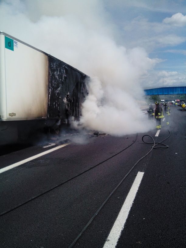 La squadra del Presidio Vigili del Fuoco di Poggio Mirteto è intervenuta presso la A1 in prossimità dell’uscita Ponzano Soratte direzione Nord per l’incendio di un autoarticolato (trasporto di pasta).