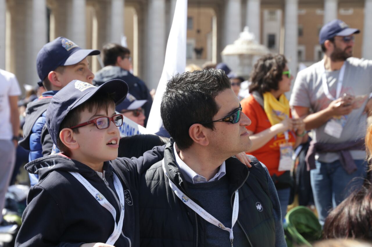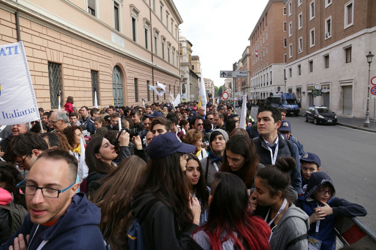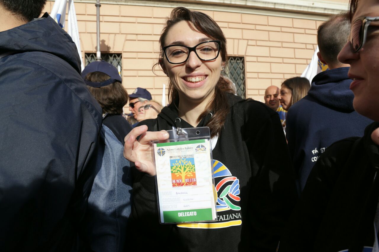 E bambini (con le famiglie) e giovani erano presenti in tanti, ad accogliere l’invito di papa Francesco a guardare al futuro forti di una storia significativa («Avere una bella storia alle spalle non serve però per camminare con gli occhi all’indietro, non serve per guardarsi allo specchio, non serve per mettersi comodi in poltrona!», le parole dirompenti del Pontefice). Da Rieti una settantina, che giunti a Roma si sono ricongiunti ai delegati che da venerdì partecipavano all’assemblea e ai sacerdoti assistenti diocesani, don Zdenek Kopriva e don Roberto D’Ammando che seguivano i lavori, oltre che alla ventina di giovanissimi di gruppi Acg che da sabato a lunedì hanno svolto in parallelo un “mini-campo” nell’Urbe assieme ai coetanei della parrocchia San Barnaba di Roma (quella in cui ha la sua abitazione romana Silvia, che per lavoro si divide tra Rieti e la Capitale), che li ha ospitati, e di due diocesi piemontesi, Acqui Terme e Alessandra, che si sono uniti loro fino a domenica.