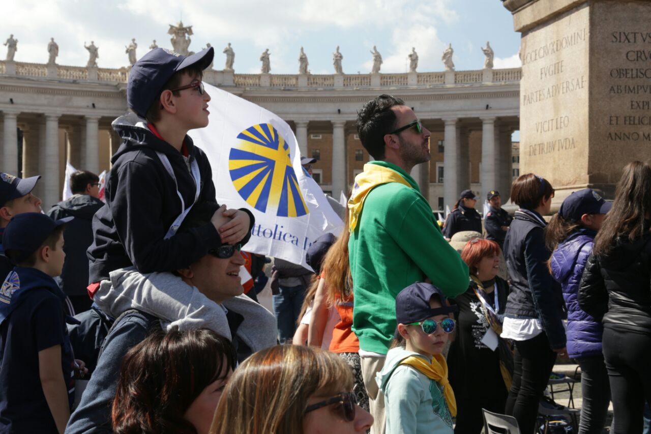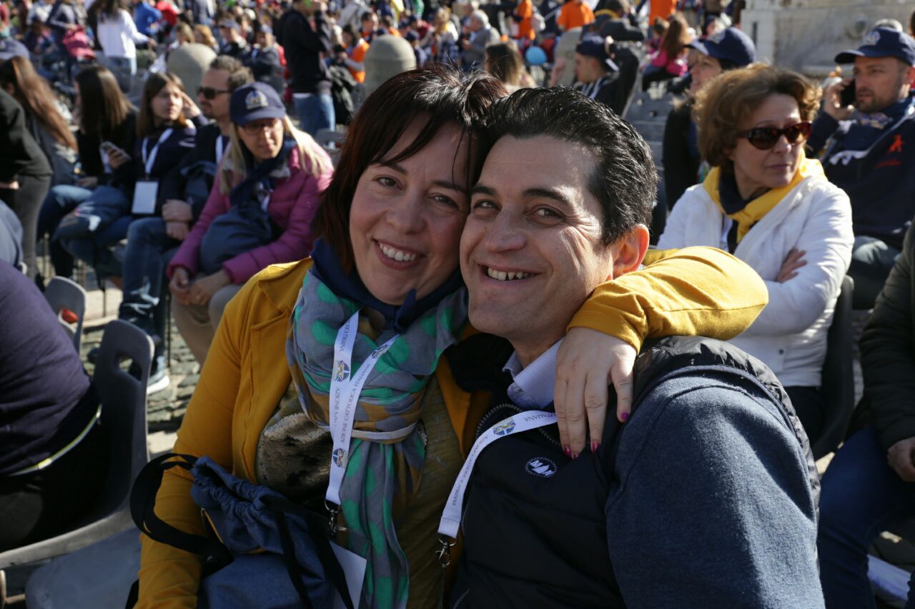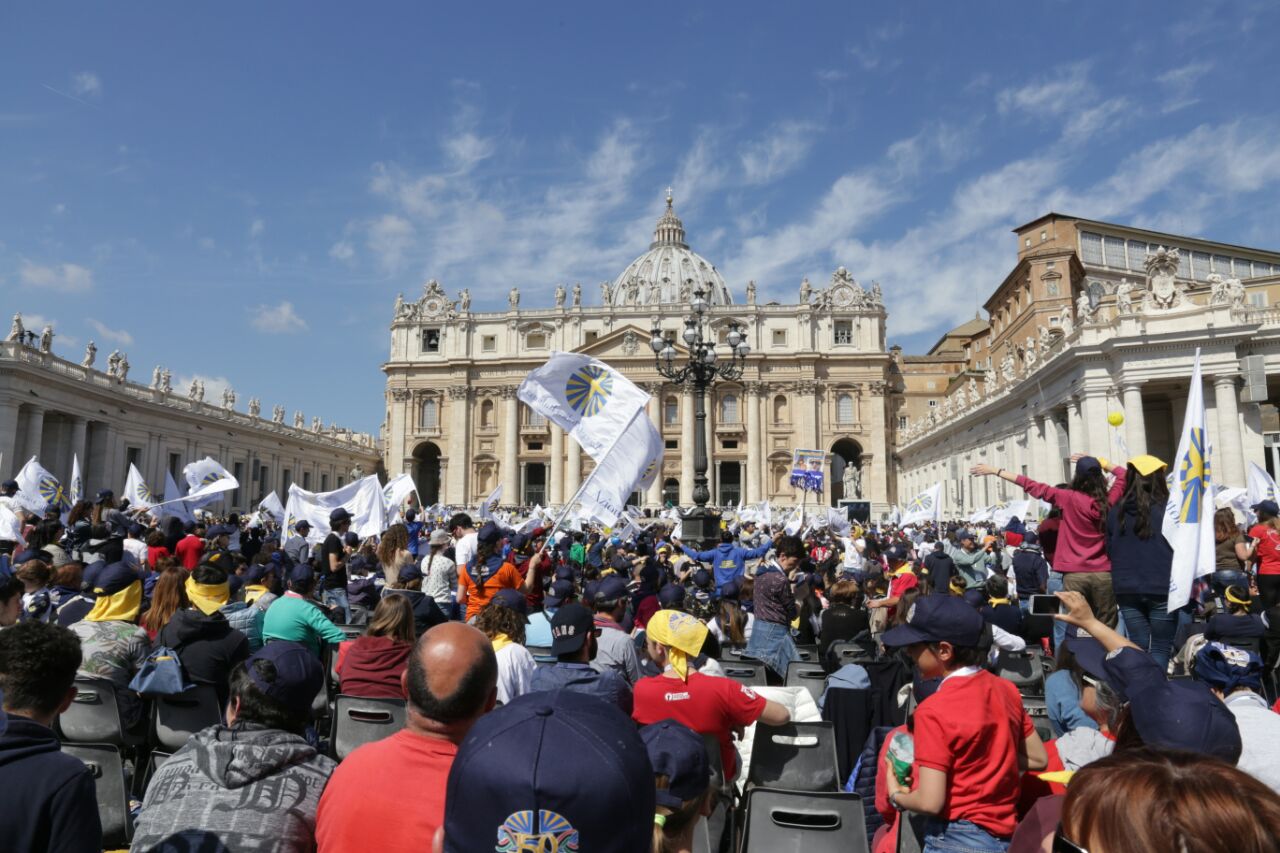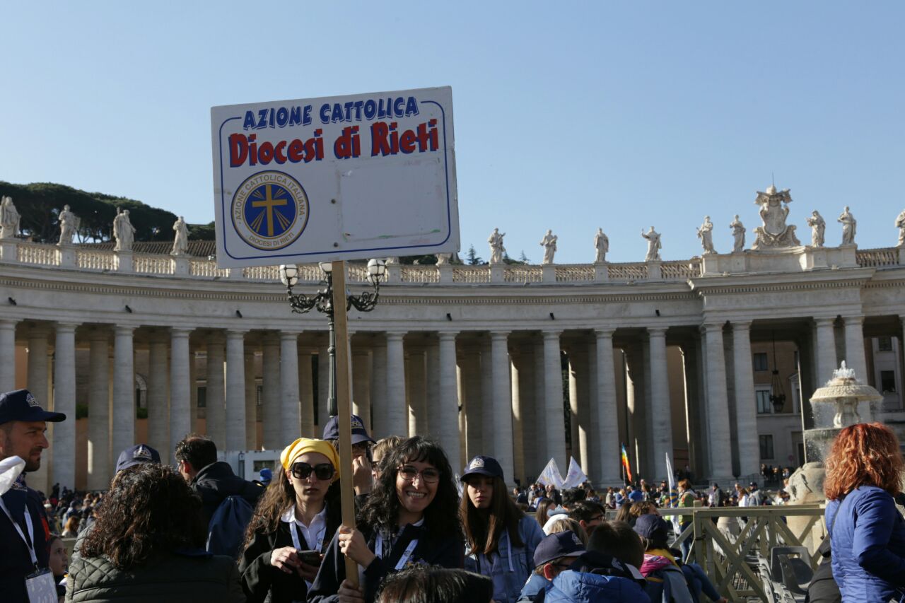 E bambini (con le famiglie) e giovani erano presenti in tanti, ad accogliere l’invito di papa Francesco a guardare al futuro forti di una storia significativa («Avere una bella storia alle spalle non serve però per camminare con gli occhi all’indietro, non serve per guardarsi allo specchio, non serve per mettersi comodi in poltrona!», le parole dirompenti del Pontefice). Da Rieti una settantina, che giunti a Roma si sono ricongiunti ai delegati che da venerdì partecipavano all’assemblea e ai sacerdoti assistenti diocesani, don Zdenek Kopriva e don Roberto D’Ammando che seguivano i lavori, oltre che alla ventina di giovanissimi di gruppi Acg che da sabato a lunedì hanno svolto in parallelo un “mini-campo” nell’Urbe assieme ai coetanei della parrocchia San Barnaba di Roma (quella in cui ha la sua abitazione romana Silvia, che per lavoro si divide tra Rieti e la Capitale), che li ha ospitati, e di due diocesi piemontesi, Acqui Terme e Alessandra, che si sono uniti loro fino a domenica.