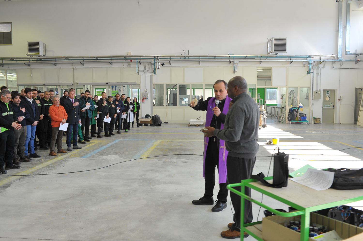 Anche quest’anno, il vescovo Domenico non rinuncia alla benedizione pasquale dei lavoratori nelle fabbriche. Un gesto che insieme al rito porta nei luoghi di produzione piccoli, ma autentici, incontri pastorali, che invitano a leggere il contesto lavoro con lo sguardo della fede.