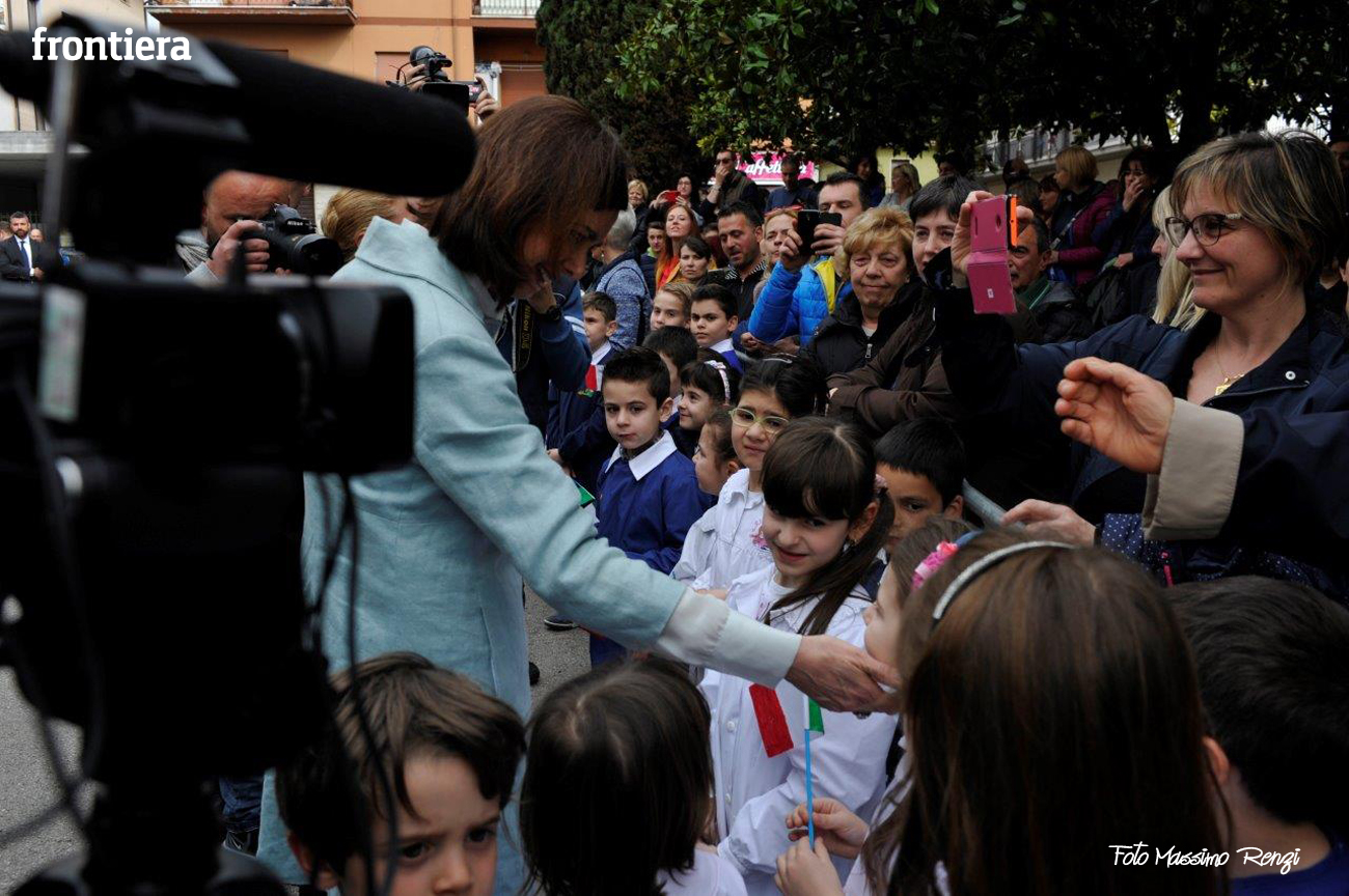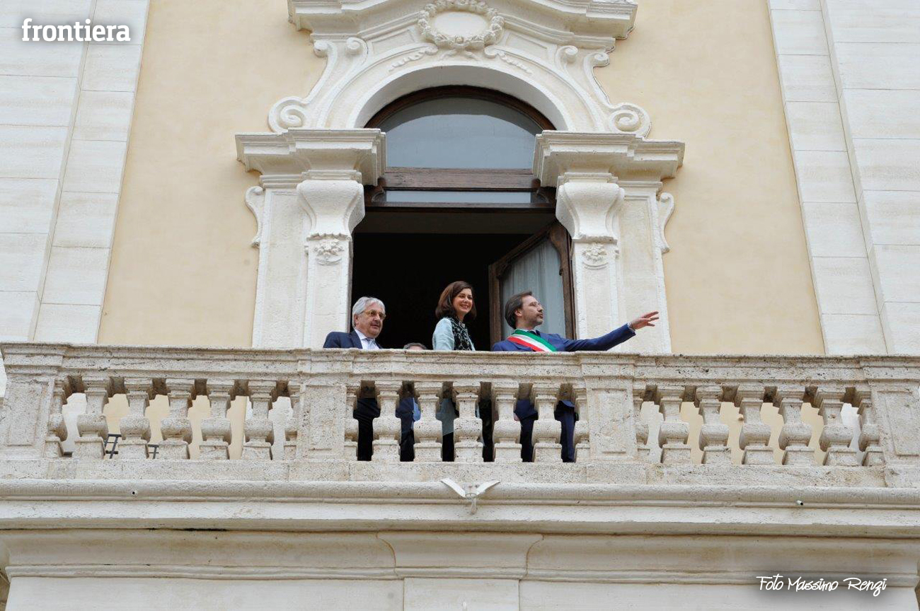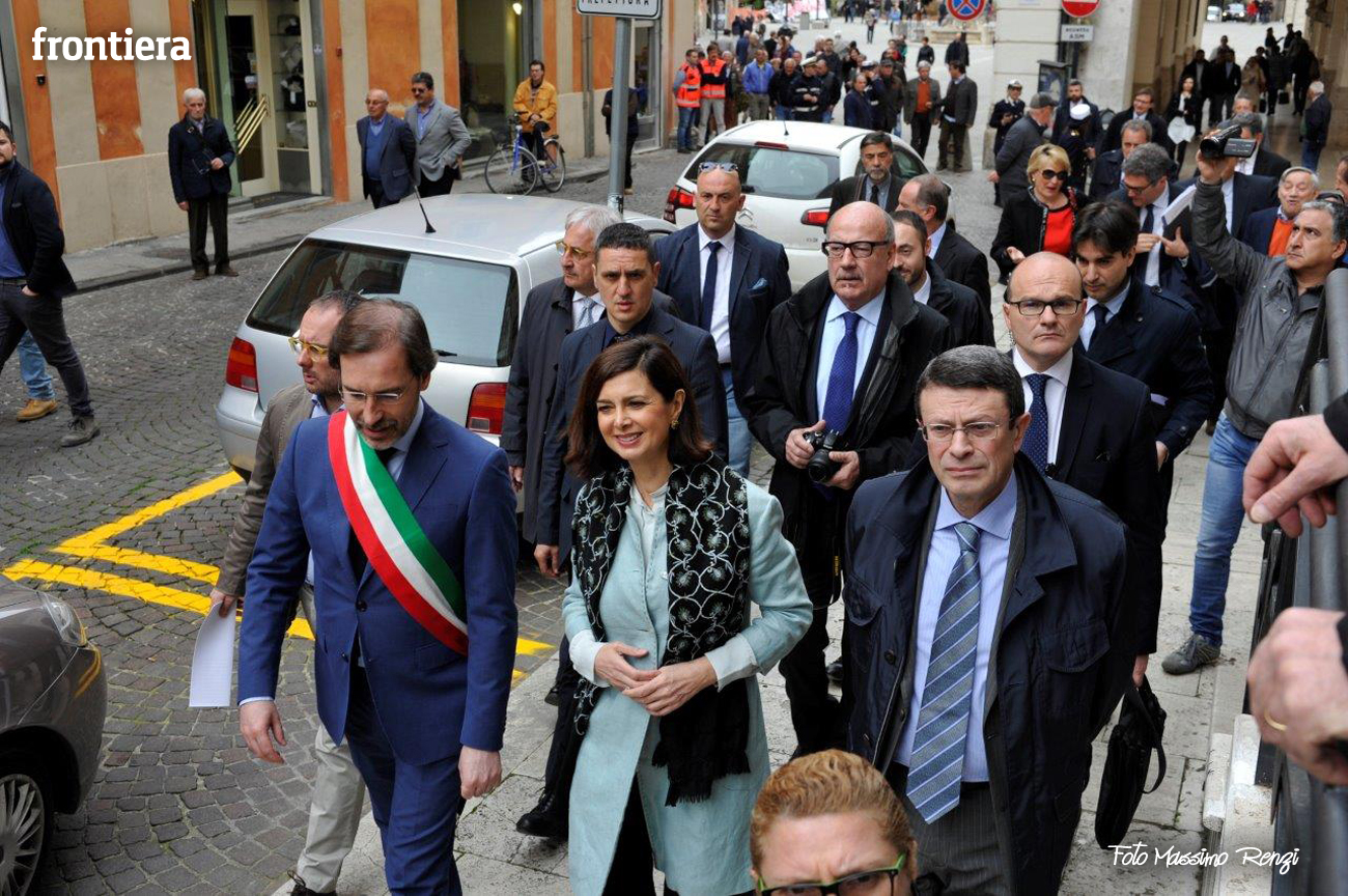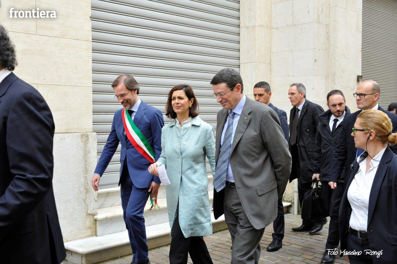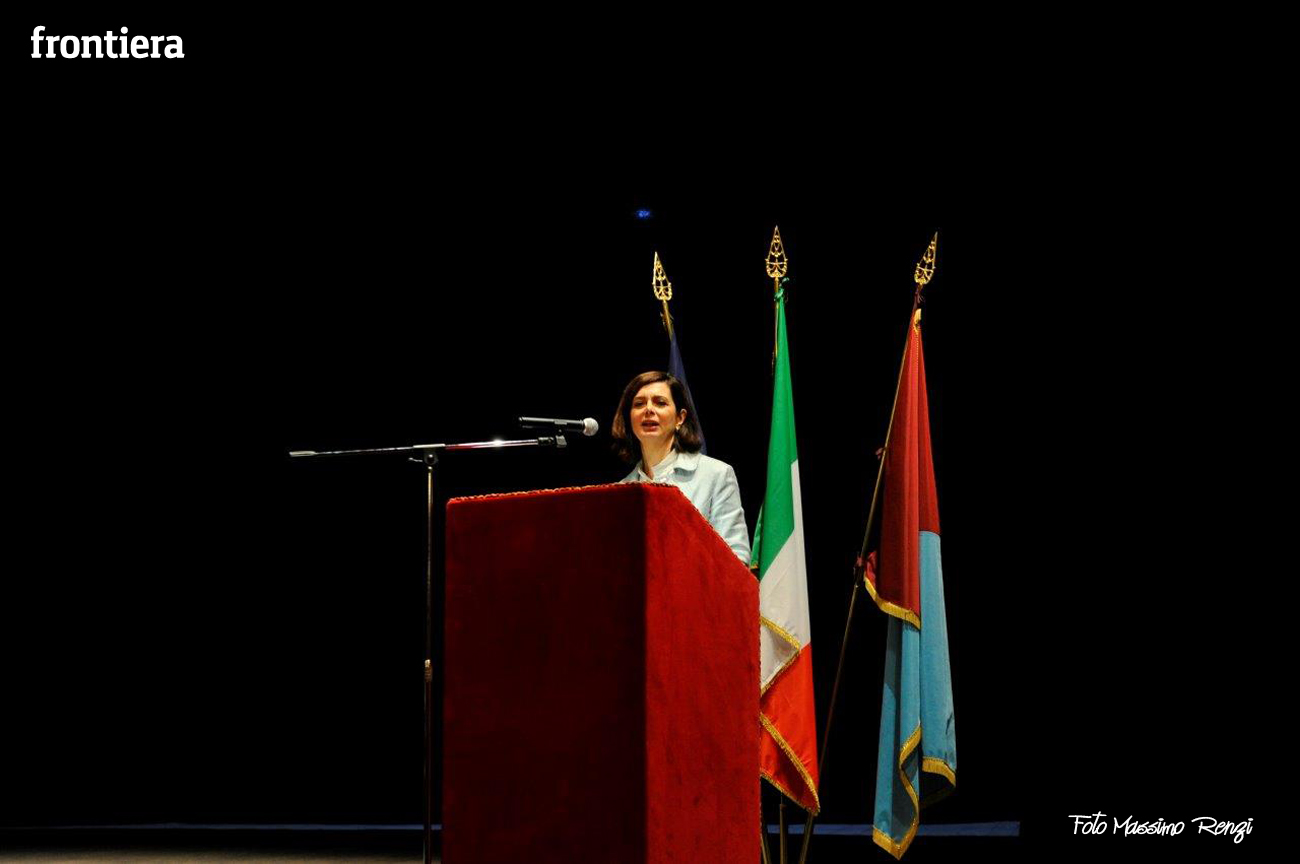 Accolta a Rieti tra gli applausi degli studenti il Presidente della Camera Laura Boldrini. Il sindaco Simone Petrangeli ha introdotto l’incontro: «voi studenti e studentesse siete i veri protagonisti».