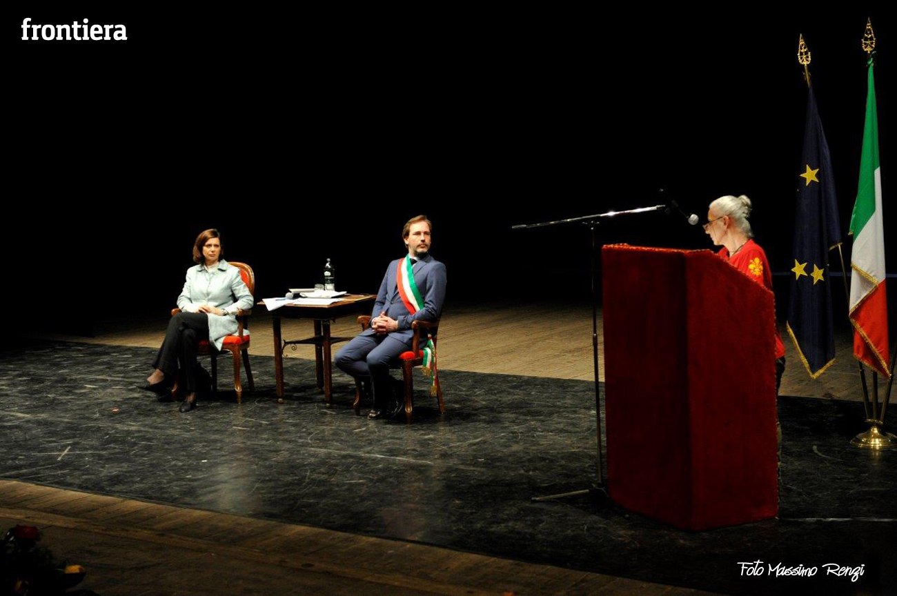 «Sono veramente emozionato, è un occasione per parlare di costituzione» continua Petrangeli, portando anche il saluto del presidente del Consiglio Comunale Marroni ancora all’ospedale e ricordando la figura della deputata e costituente Elettra Pollastrini.