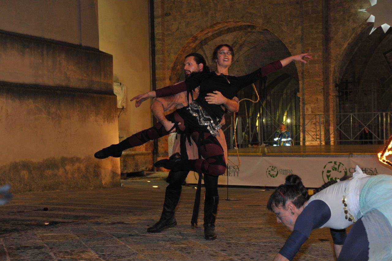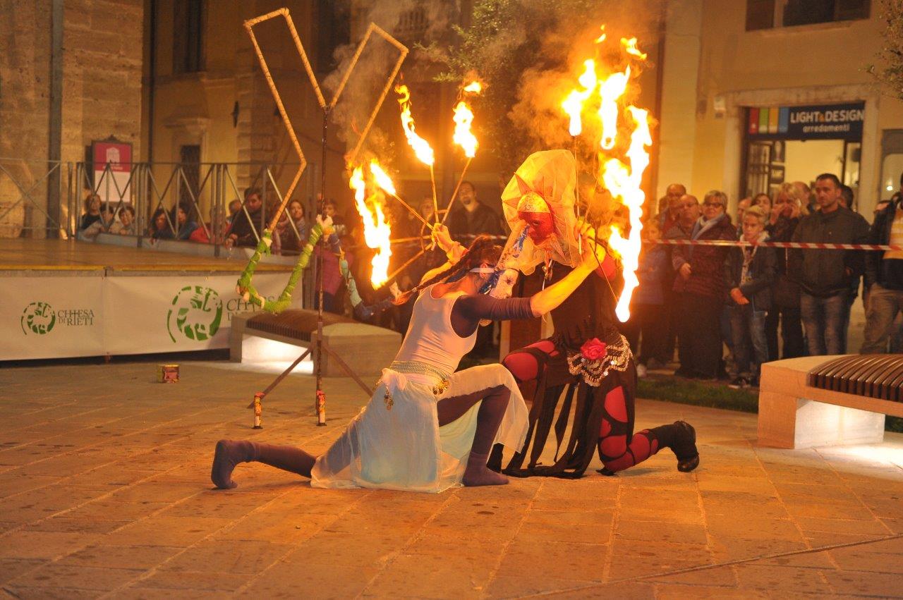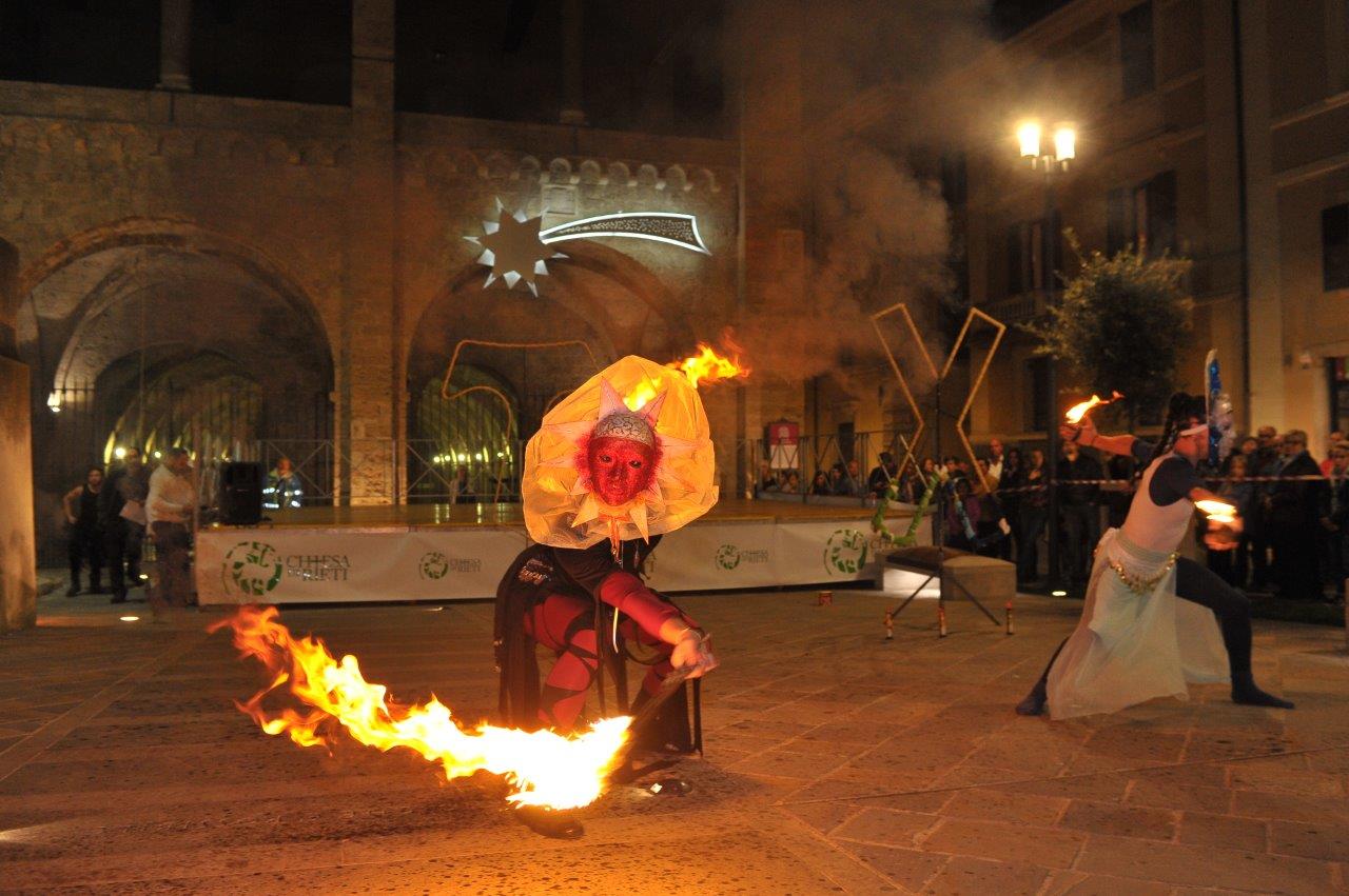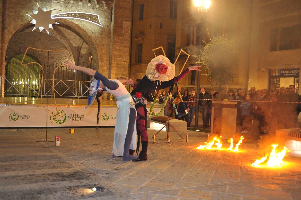 L’esibizione di giocoleria con il fuoco è stata curata dalla Compagnia di San Giovanni e dalla Confraternita di Misericordia di Rieti.