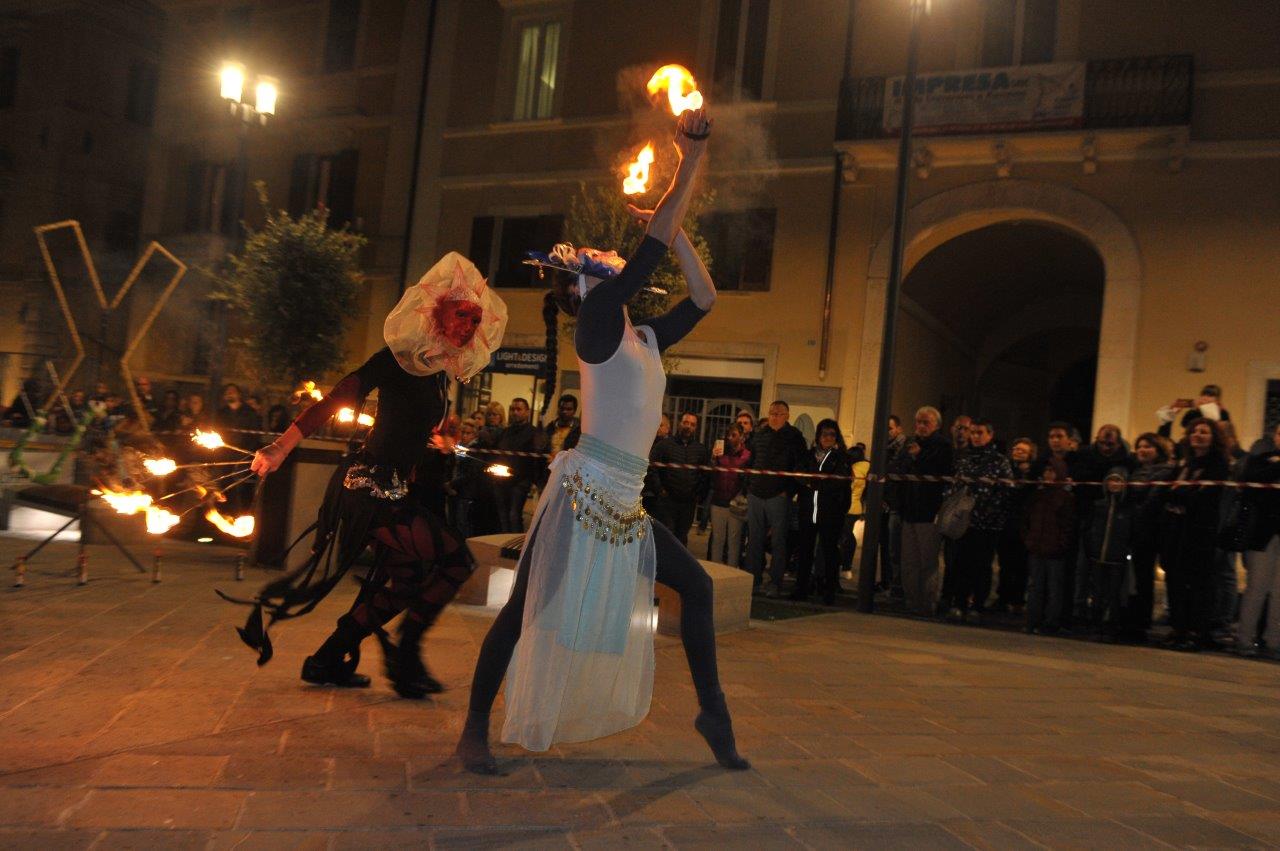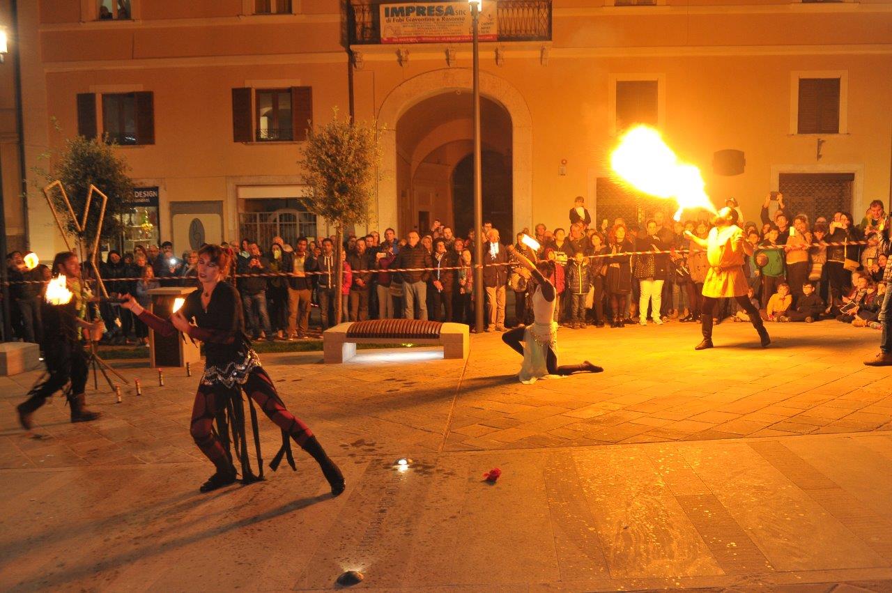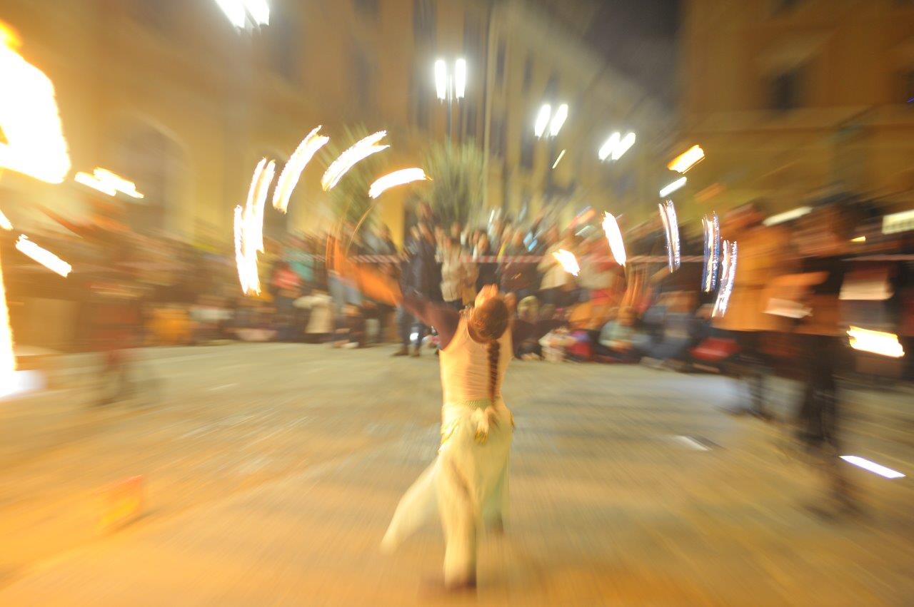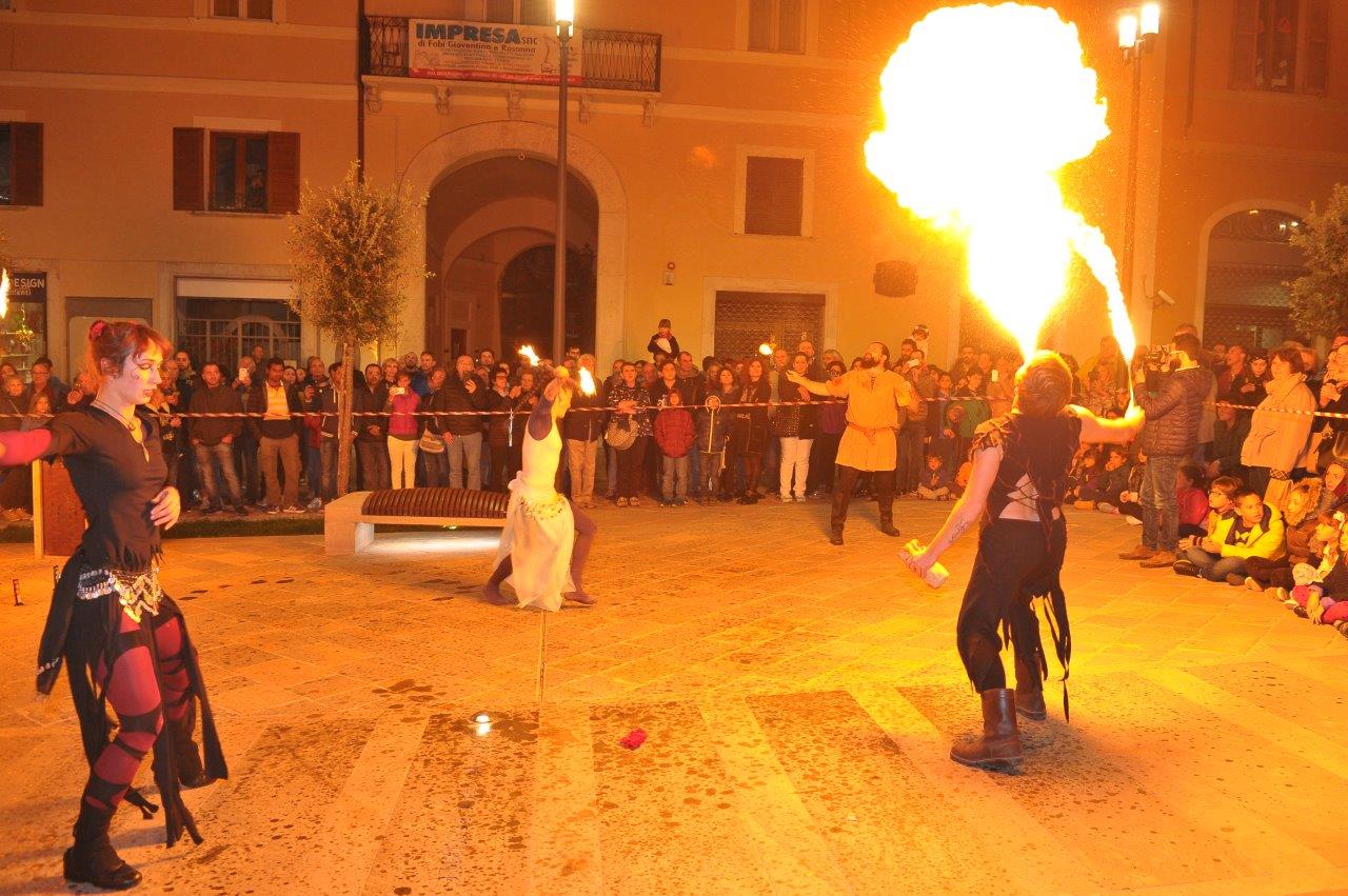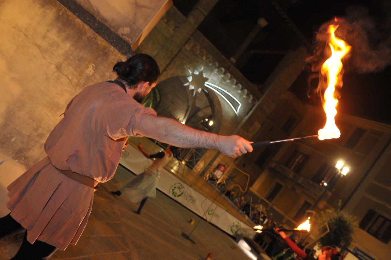 L’esibizione di giocoleria con il fuoco è stata curata dalla Compagnia di San Giovanni e dalla Confraternita di Misericordia di Rieti.