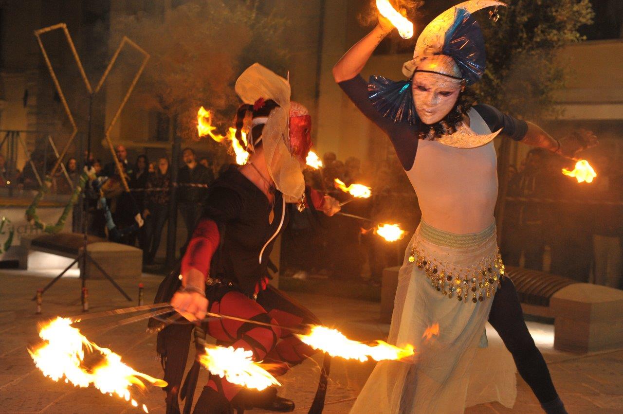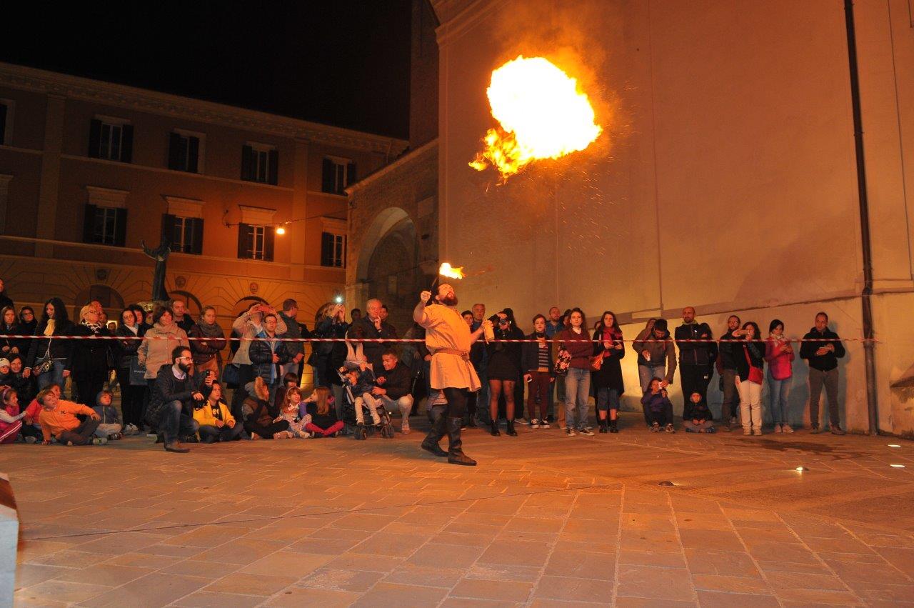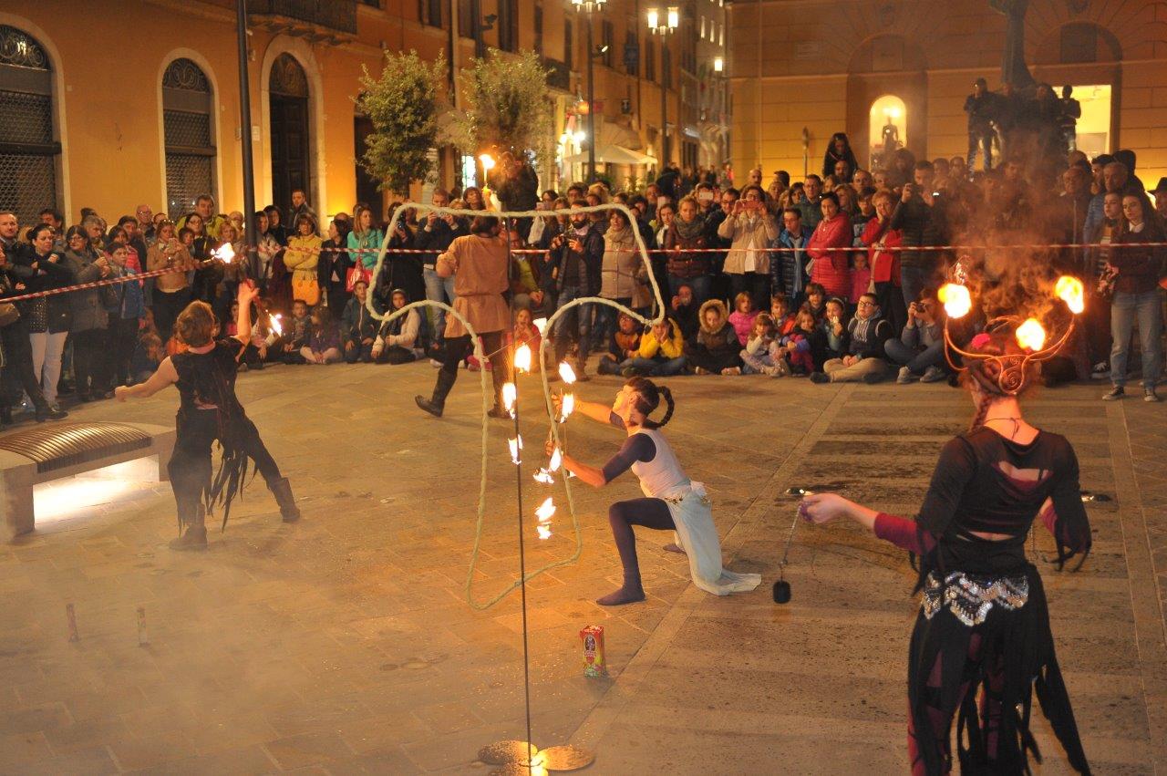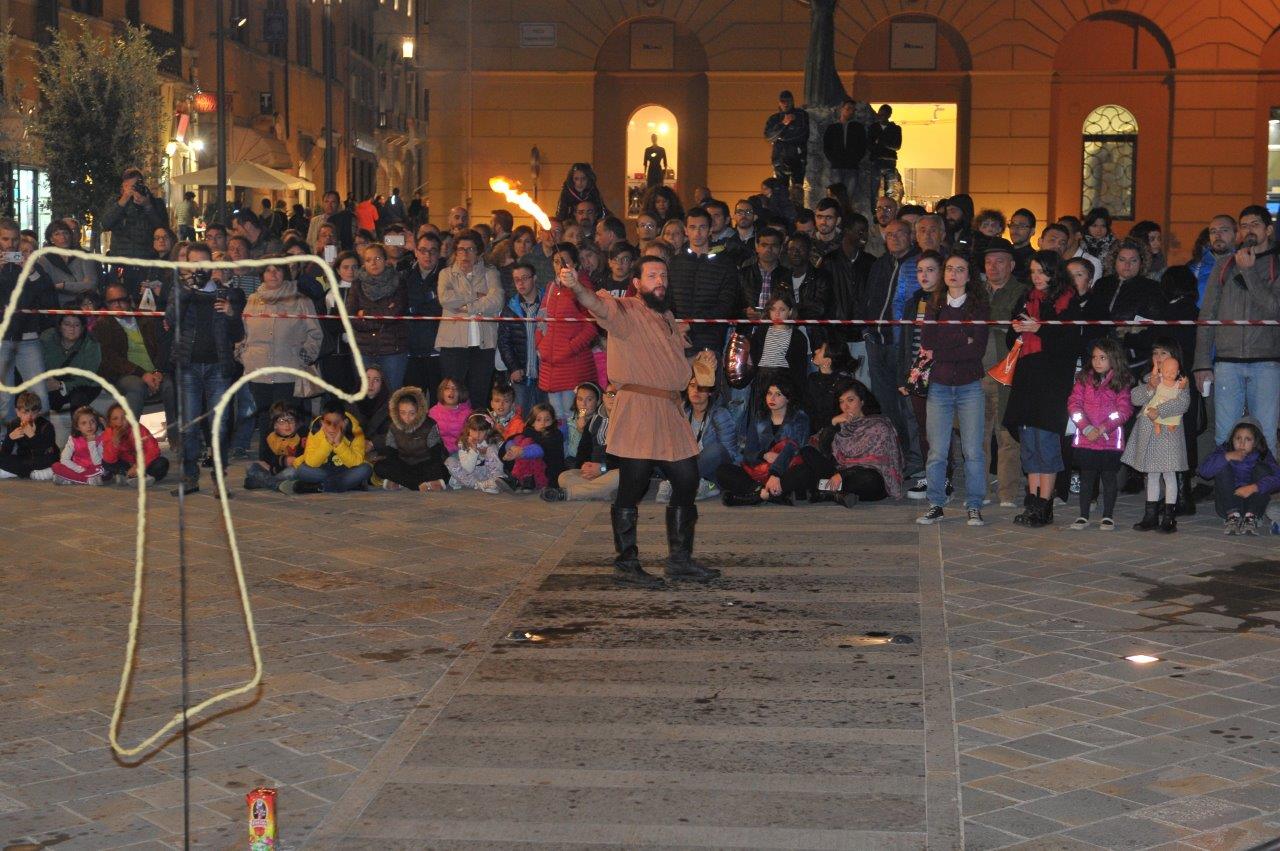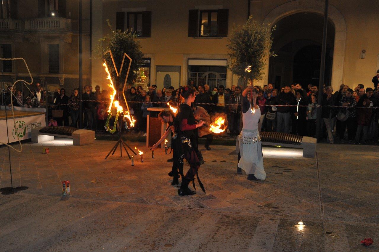 L’esibizione di giocoleria con il fuoco è stata curata dalla Compagnia di San Giovanni e dalla Confraternita di Misericordia di Rieti.