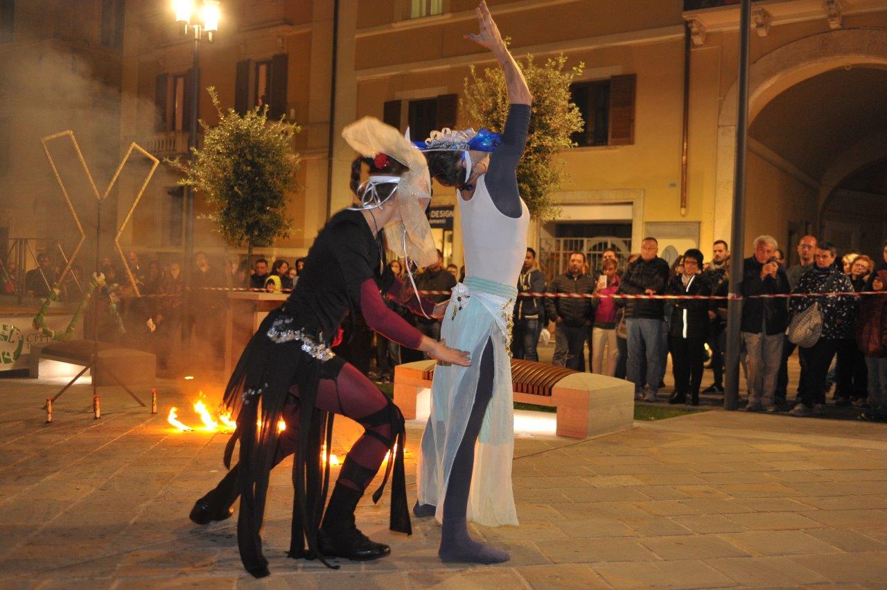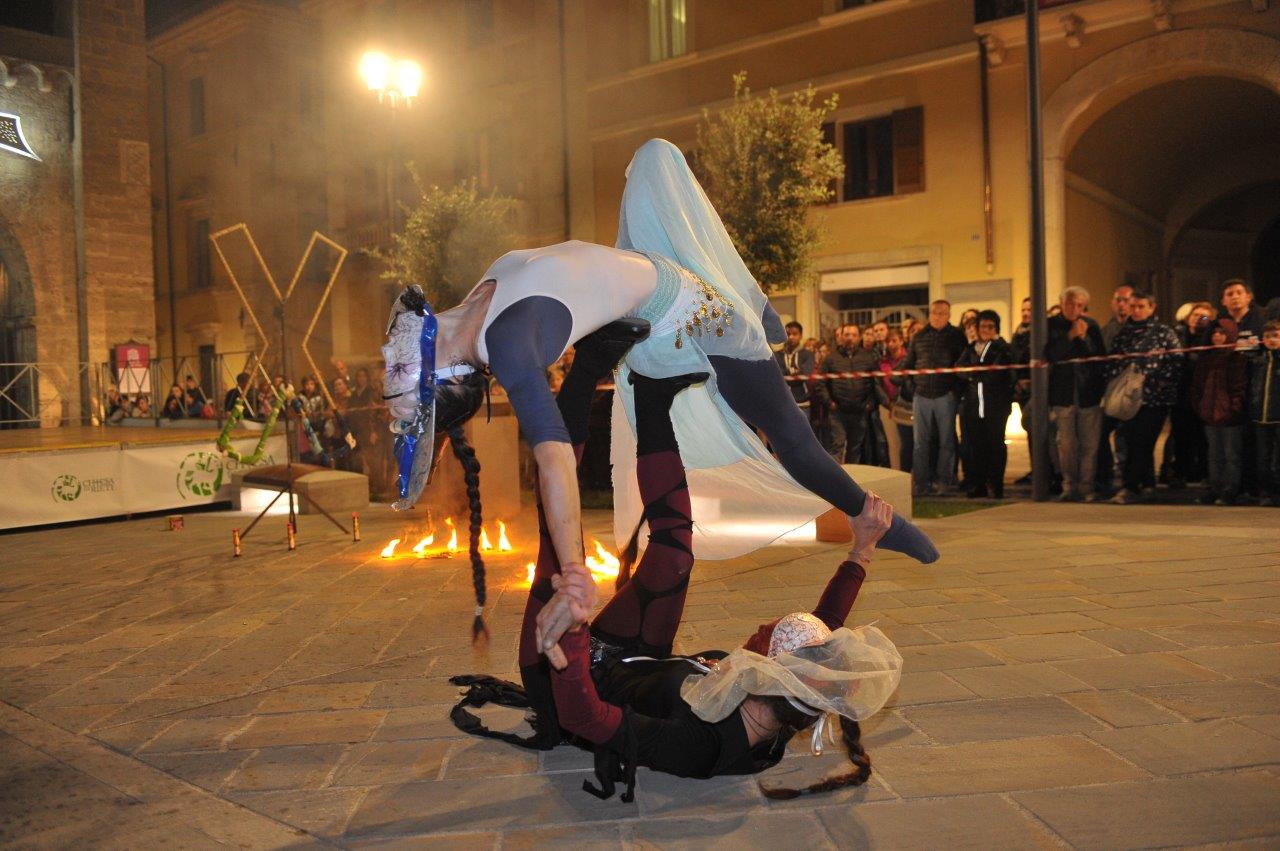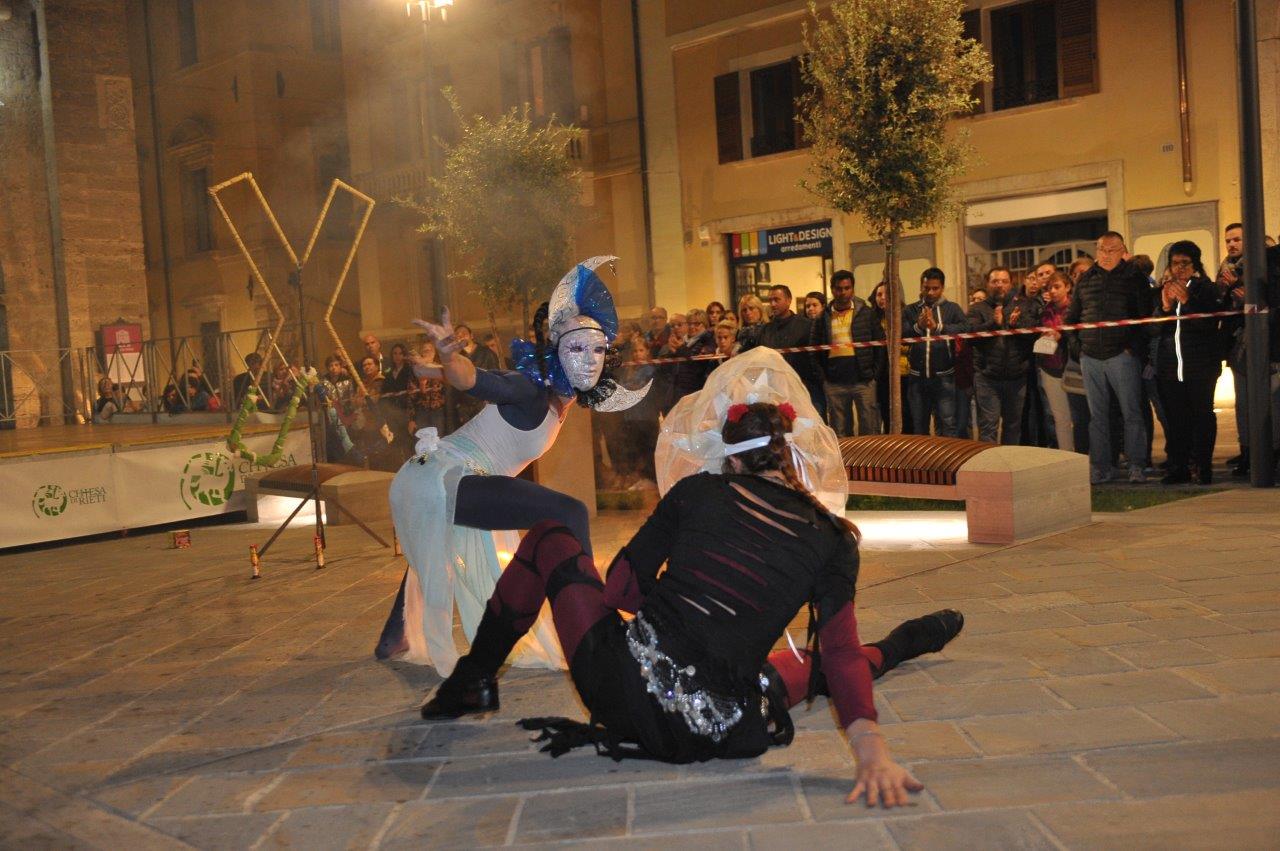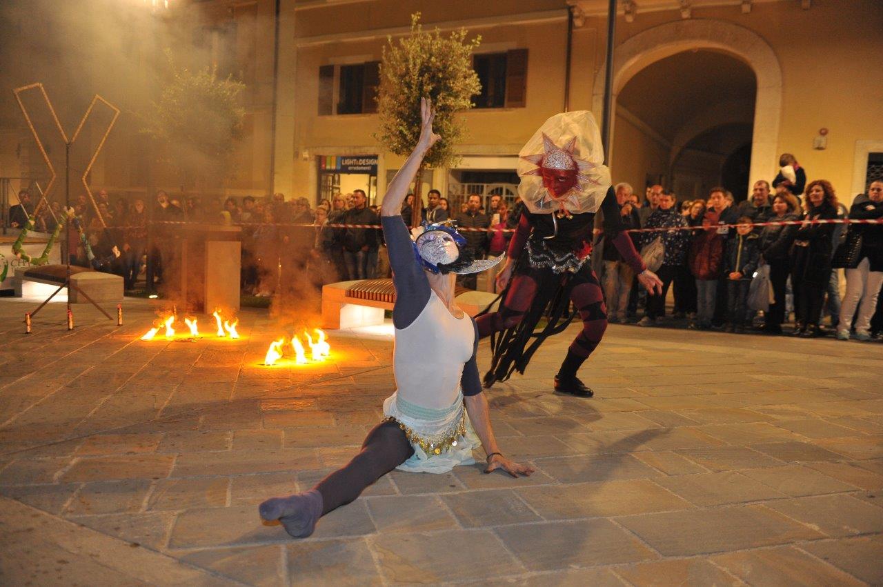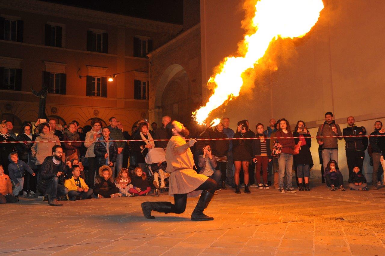 L’esibizione di giocoleria con il fuoco è stata curata dalla Compagnia di San Giovanni e dalla Confraternita di Misericordia di Rieti.
