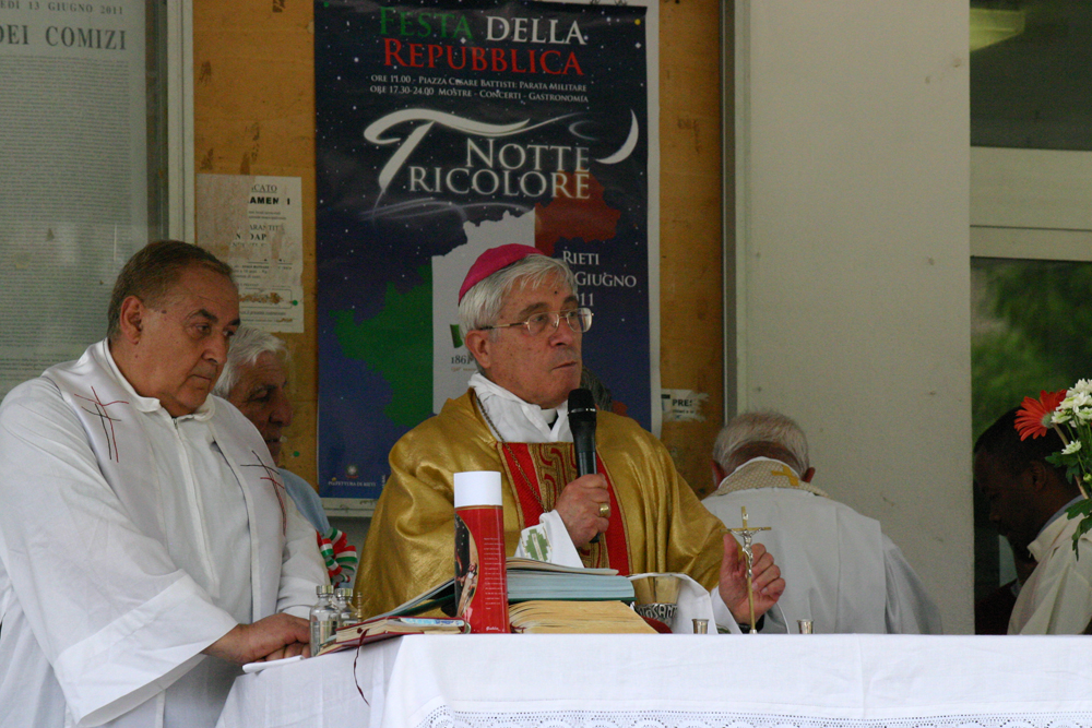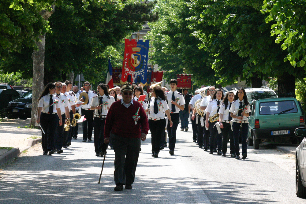 Un suggestivo corteo si è snodato dal Municipio vecchio a quello attuale, con la Banda Musicale di Torano, le Associazioni degli Alpini, rappresentanti dell’Arma dei Carabinieri, del Corpo Forestale dello Stato, dei Vigili Urbani e di Associazioni combattentistiche di Rieti. Nel piazzale antistante il Municipio è stata concelebrata da 8 sacerdoti la Santa Messa presieduta dal Vescovo di Rieti, S.E. Mons Delio Lucarelli, alla quale è seguito un caloroso discorso del Sindaco Michele Pasquale Nicolai.