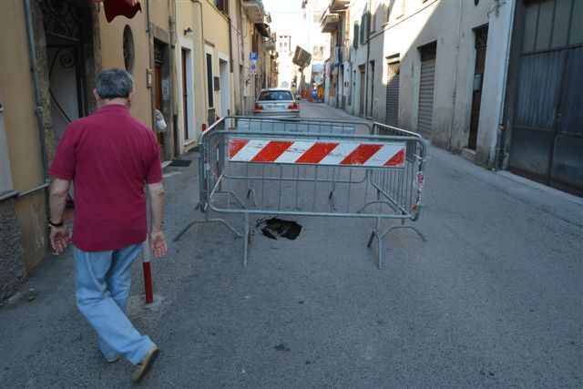 Una buca di notevoli dimensioni, accompagnata da un avvallamento della strada, ha costretto la Polizia Municipale a chiudere l’ultimo tratto di via Di Mezzo e disporre alcune transenne di sicurezza. L’area interessata è quella che si trova tra l’incrocio di via Di Mezzo con via Pennina.