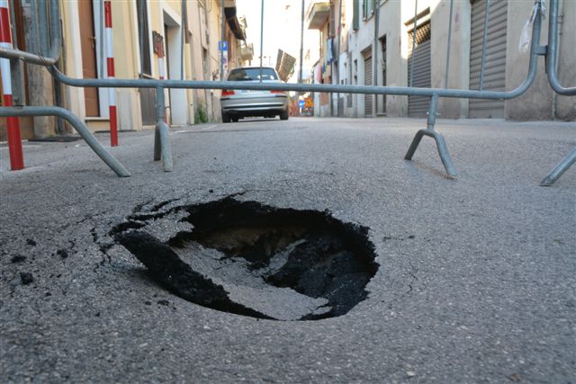 Alla Sogea il compito di capire le cause del cedimento del manto stradale.