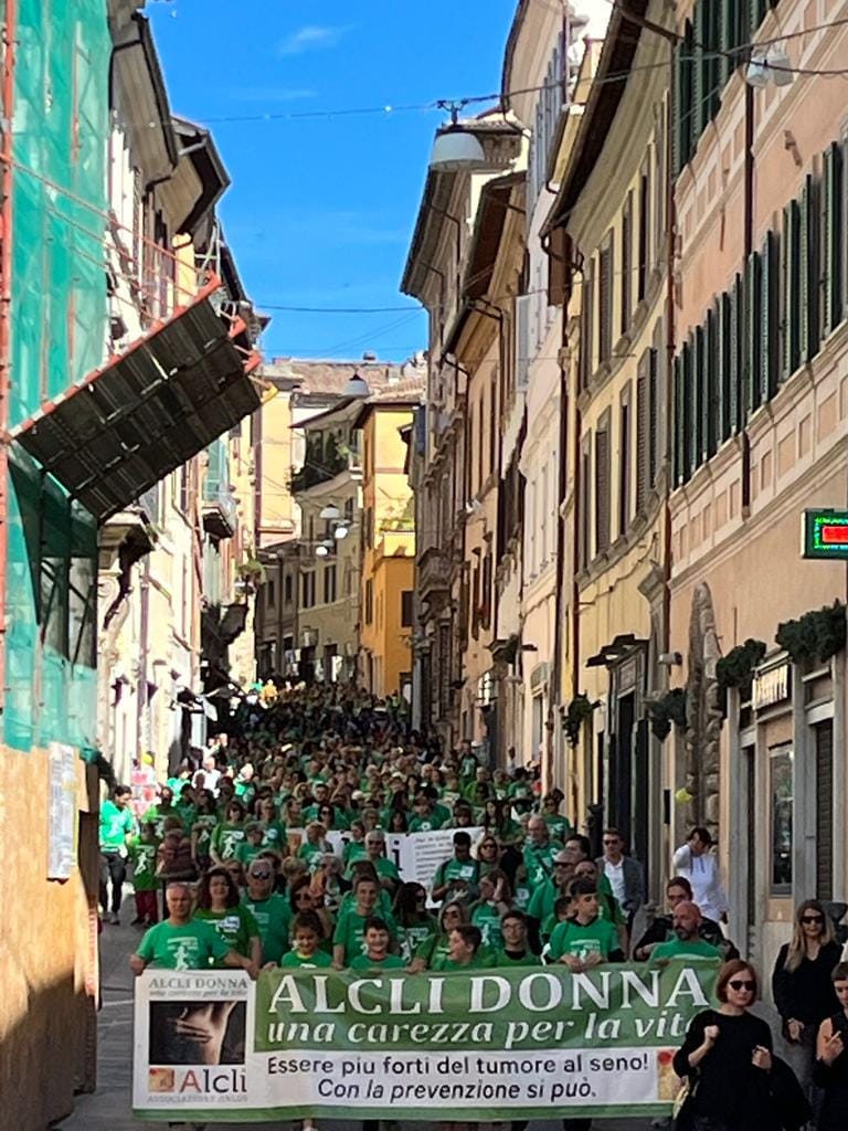 «Sono commossa nel vedere tante persone che hanno deciso di pensare alla propria salute, hanno preso consapevolezza di un potente strumento che abbiamo per combattere il tumore, che è proprio la prevenzione», ha dichiarato la Presidente dell’Alcli Odv, Santina Proietti, che ha voluto ringraziare la folla accorsa alla Camminata, il personale sanitario che ha raccolto tutte le prenotazioni allo screening della giornata e tutte la associazioni presenti, i musicisti della Bande musicali partecipanti che volontariamente hanno dato la disponibilità per intrattenere la comunità. «Naturalmente ringrazio tutti i volontari dell’Alcli Donna in primis che ancora una volta hanno messo tanto impegno, sacrificando tempo ed energia per dare un aiuto concreto ai malati. I volontari sono la nostra grande forza e ringrazio la città che come sempre ci dà affetto e fiducia».