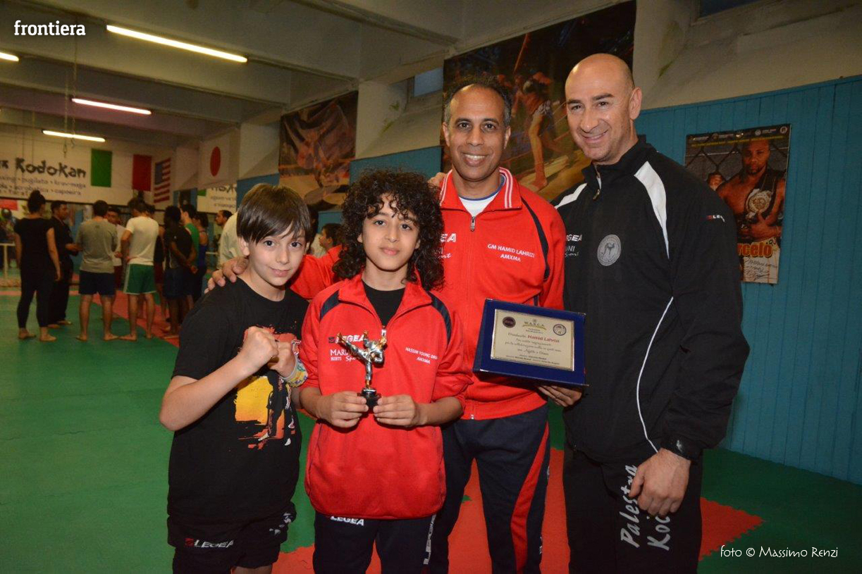 Ospiti d’eccezione nella palestra Kodokan. A Rieti, Nassim “Young Dragon” Faras Lahrizi, giovanissimo 5 volte campione del mondo di kickboxing/karate, affiancato dal padre Hadmin Lahrizi, 3 volte campione del mondo di kickboxing e dallo shihan Alfredo Torella, campione di arti marziali.