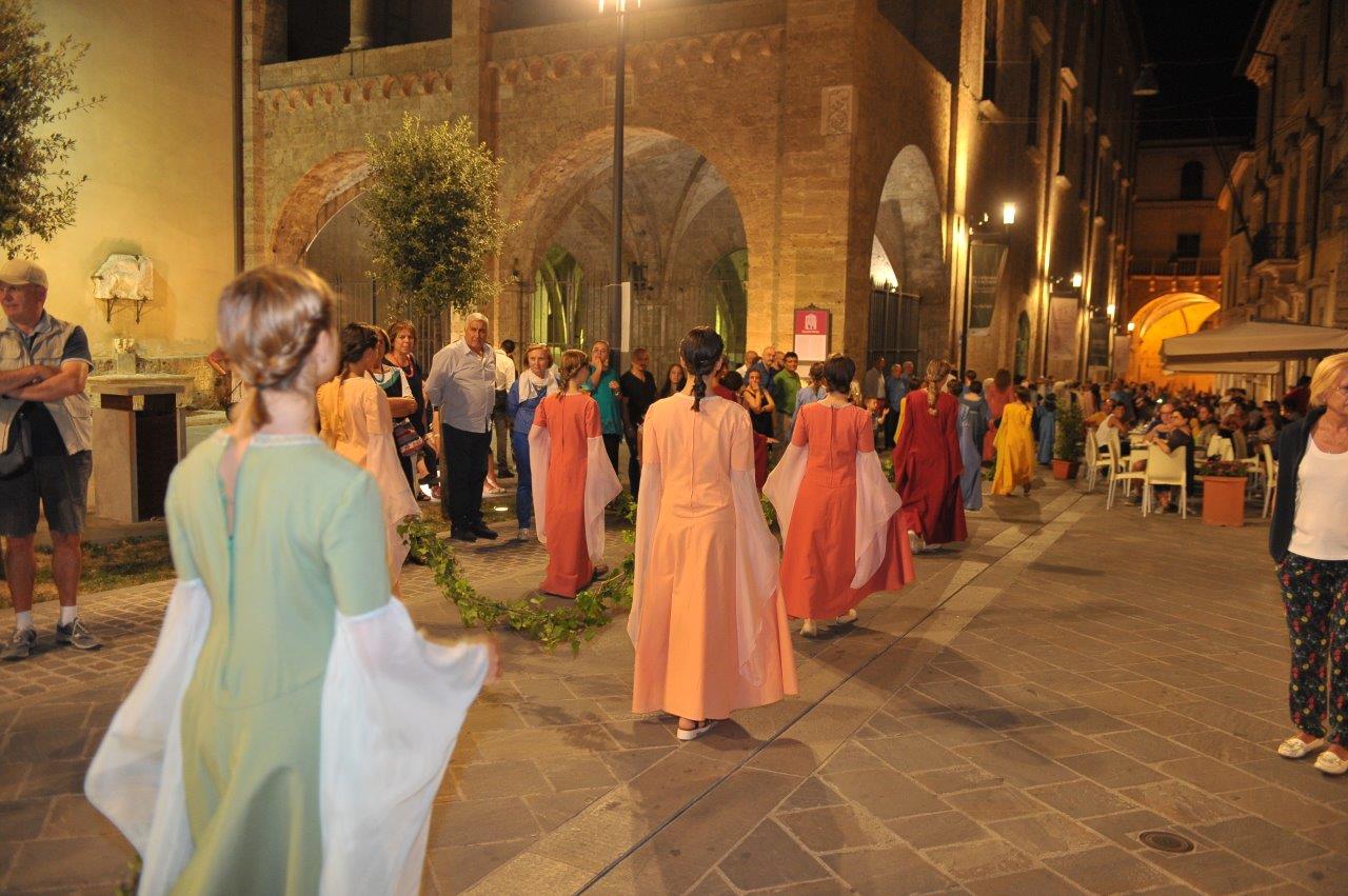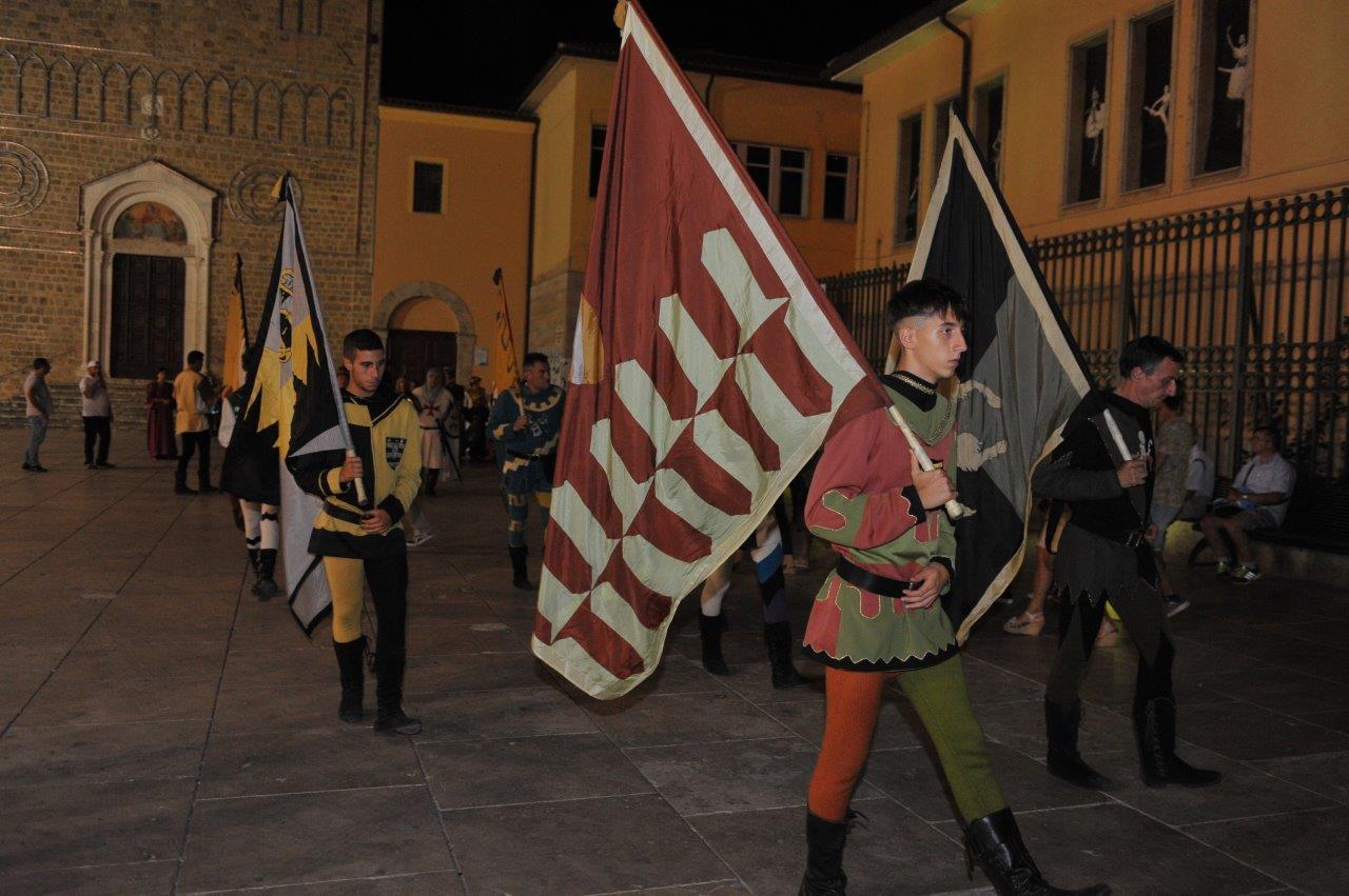 Pensata più come esperienza che come spettacolo, la Rievocazione in qualche modo riesce a davvero a far trasparire qualcosa l’epoca della canonizzazione di san Domenico. Erano gli anni della fioritura del sistema dei comuni, dell’accentuarsi della lotta fra Impero e Papato. Un’epoca convulsa e incerta, per molti versi simile alla nostra, che vedeva compagnie e confraternite nascevano allo scopo di richiamare gli uomini verso un punto fermo, un riferimento sicuro: l’insegnamento del Vangelo.