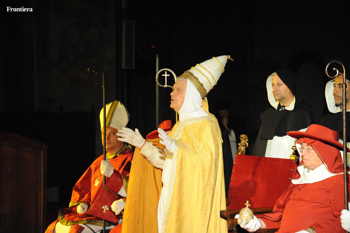 Altra “voce” di rilievo quella dell’organo Dom Bedos Ruobo, il cui canto ha sottolineato l’ingresso e l’uscita del corteo papale e le fasi para-liturgiche. Straordinariamente piacevoli anche le musiche di scena dell’Esemble Aubespine.