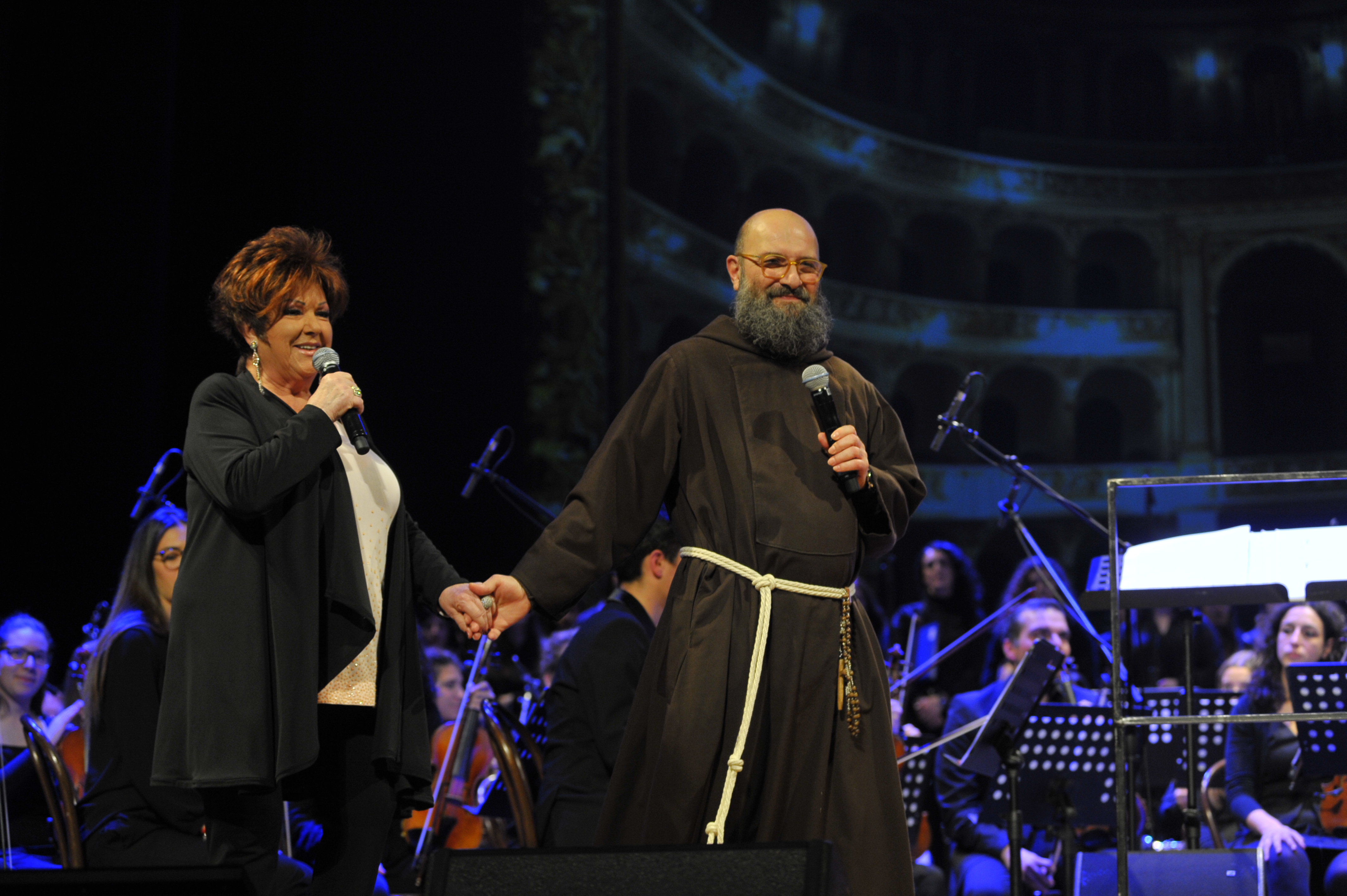 Sul palcoscenico, un duetto originale e pieno di sorprese: il padre cappuccino Antonio Maria Tofanelli della fraternità interobbedenziale di Rieti e la nota cantante Orietta Berti hanno introdotto i giovani e talentuosi musicisti del Liceo Musicale “Elena Principessa di Napoli” di Rieti, guidati per l’occasione dal M° Leonardo De Amicis.