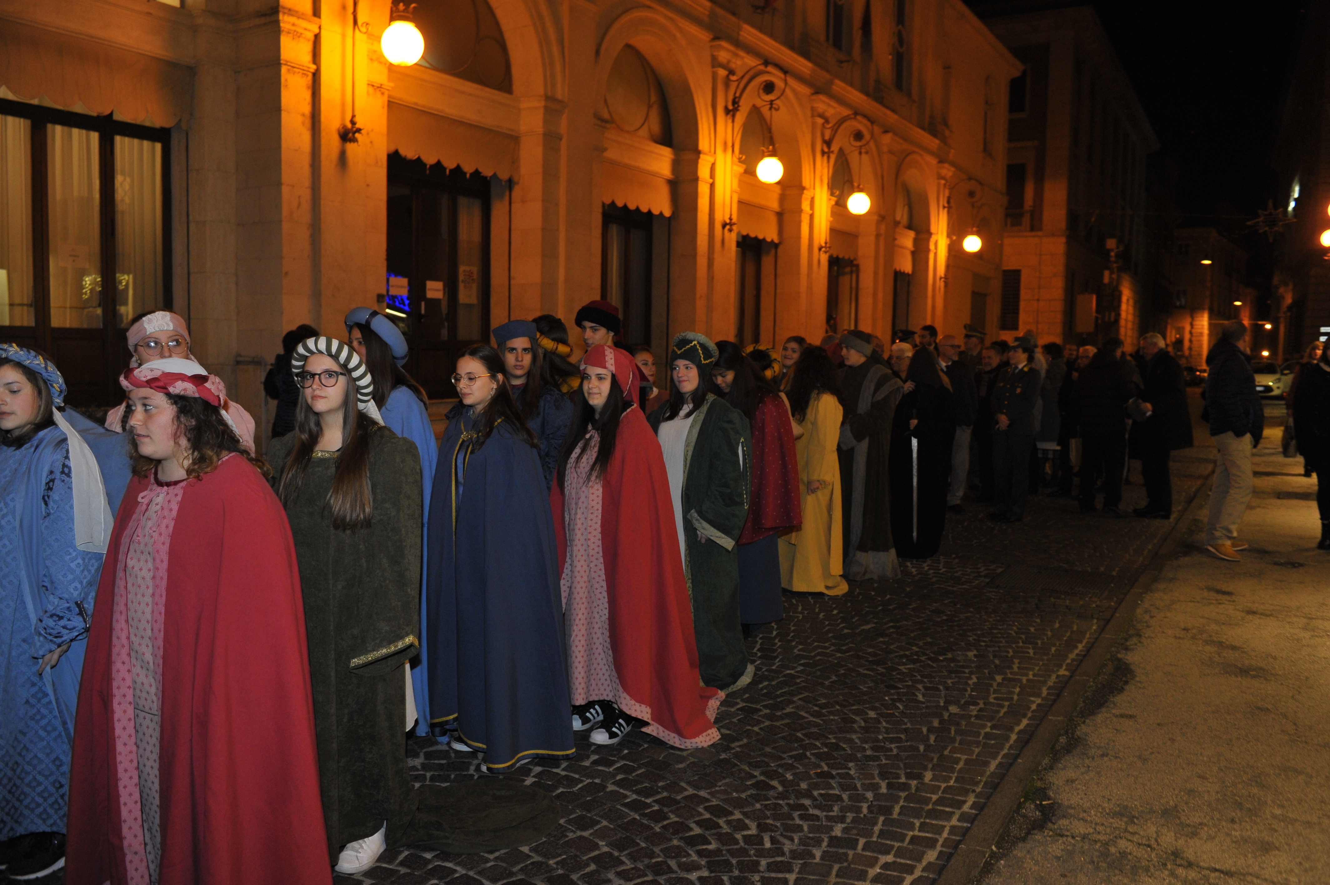 Ma anche i più giovani non sono stati certamente da meno. Beatrice Coltella e i reatini Jacopo Bertini e Davide Rossi hanno saputo regalare grandi emozioni e hanno strappato moltissimi applausi al pubblico del teatro Vespasiano. Ma al termine dello spettacolo la serata ha riservato ancora sorprese. All’uscita dal teatro, un piccolo fiume di persone con in testa un corteo medievale composti di giovani ragazzi ha raggiunto il poco distante Palazzo Papale per riempirsi ancora gli occhi di meraviglia.