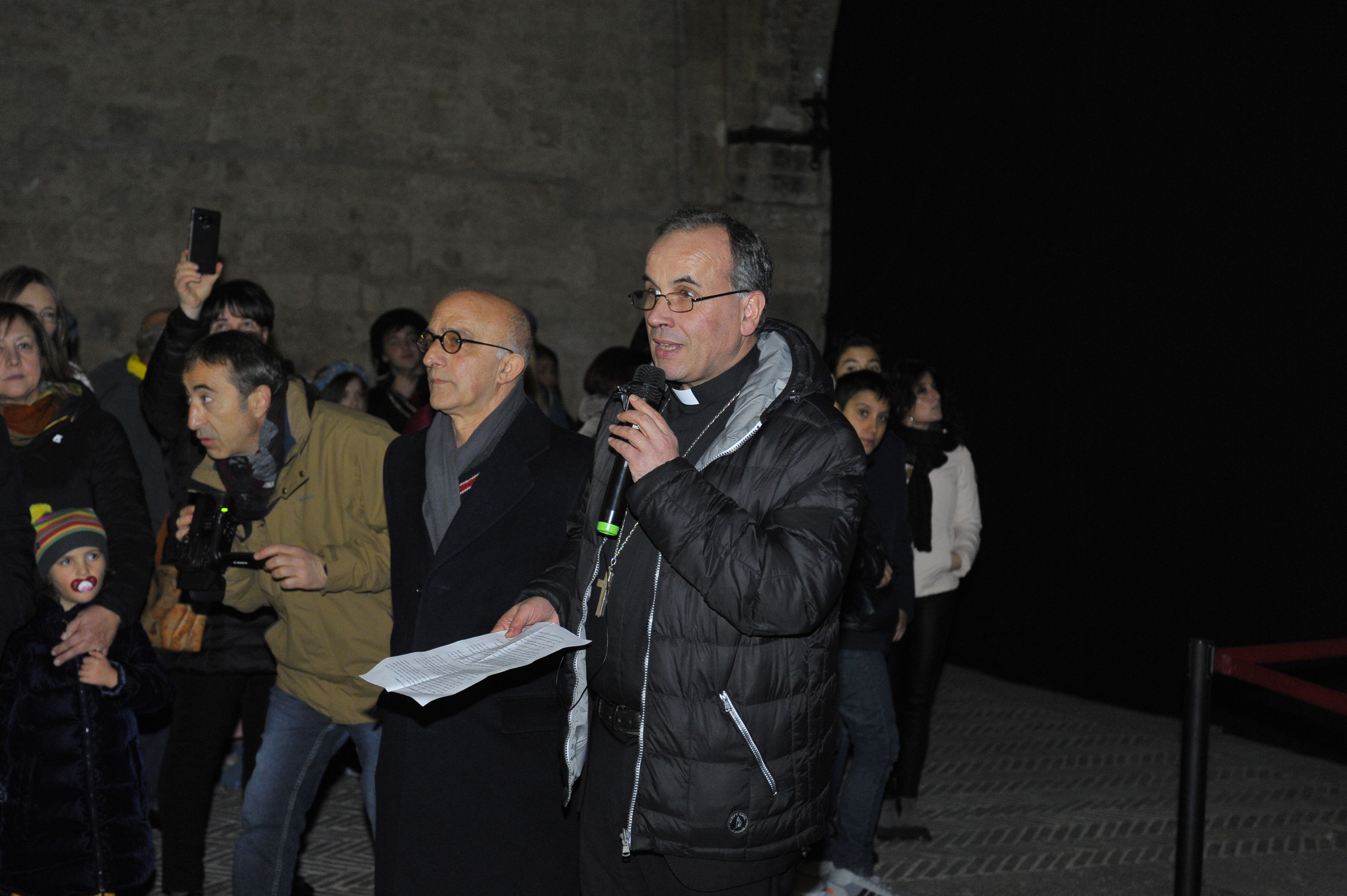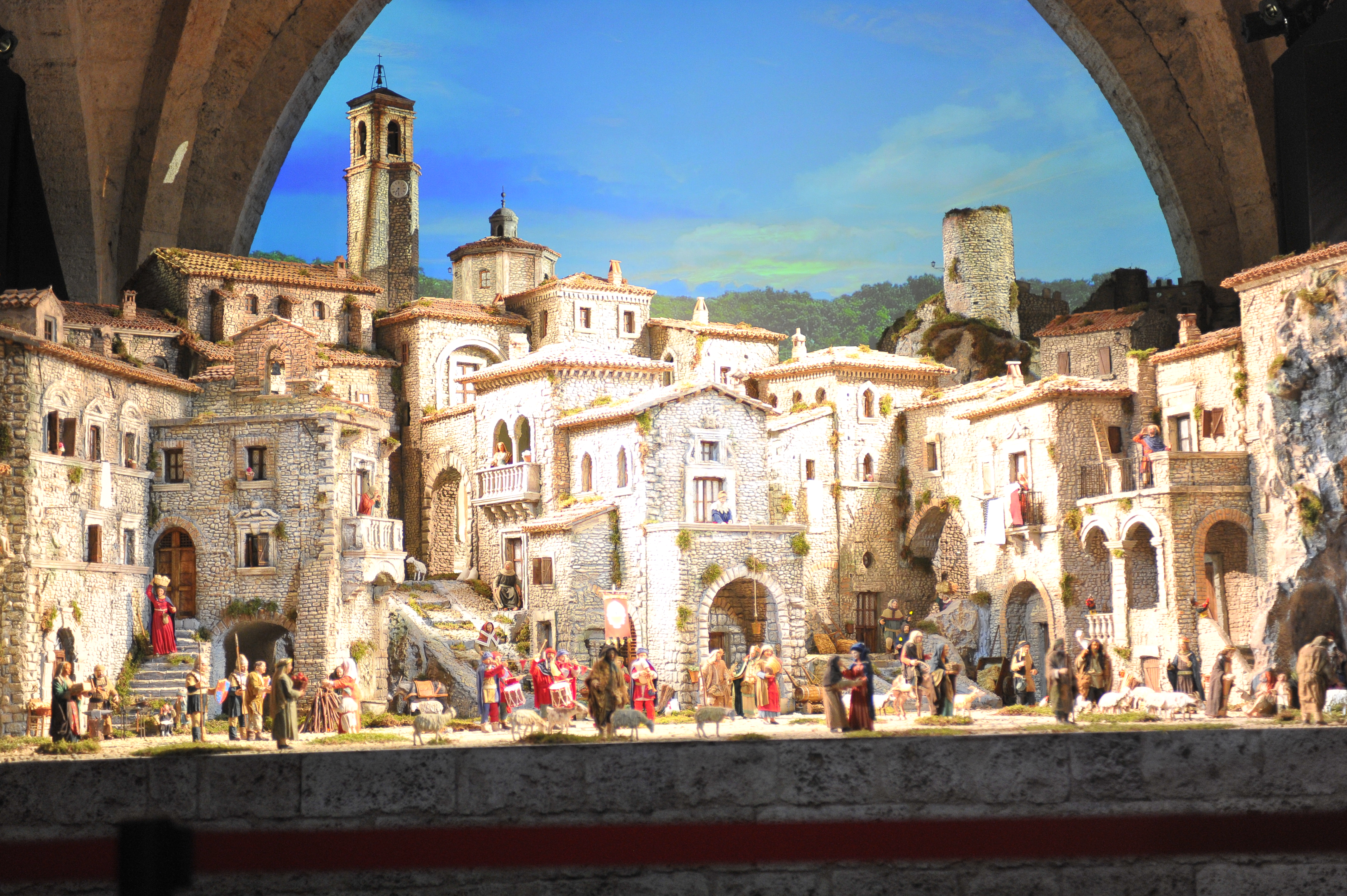 Dopo un breve discorso introduttivo del vescovo Domenico, è stato finalmente svelato alla città il monumentale presepe creato dal maestro Francesco Artese. Quasi cinquanta metri quadri di opera totalmente realizzata a mano, dalle statue ai costumi, dagli edifici ai dettagli, dagli accessori agli animali. Dopo la discesa del telone che ha coperto per quattro mesi il vero e proprio capolavoro artigianale, un lungo sospiro tra le centinaia di persone presenti, e poi l’assoluto stupore.