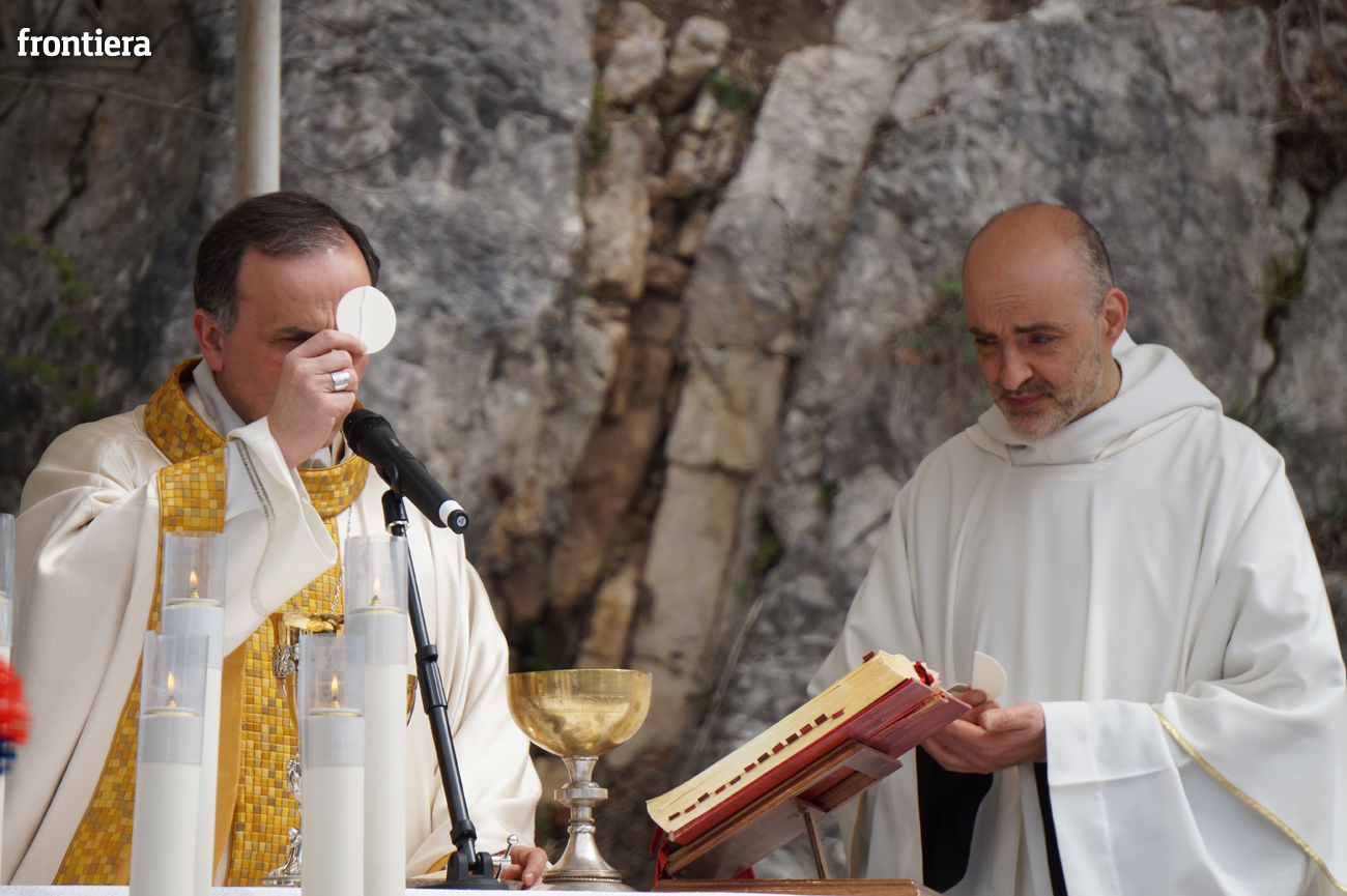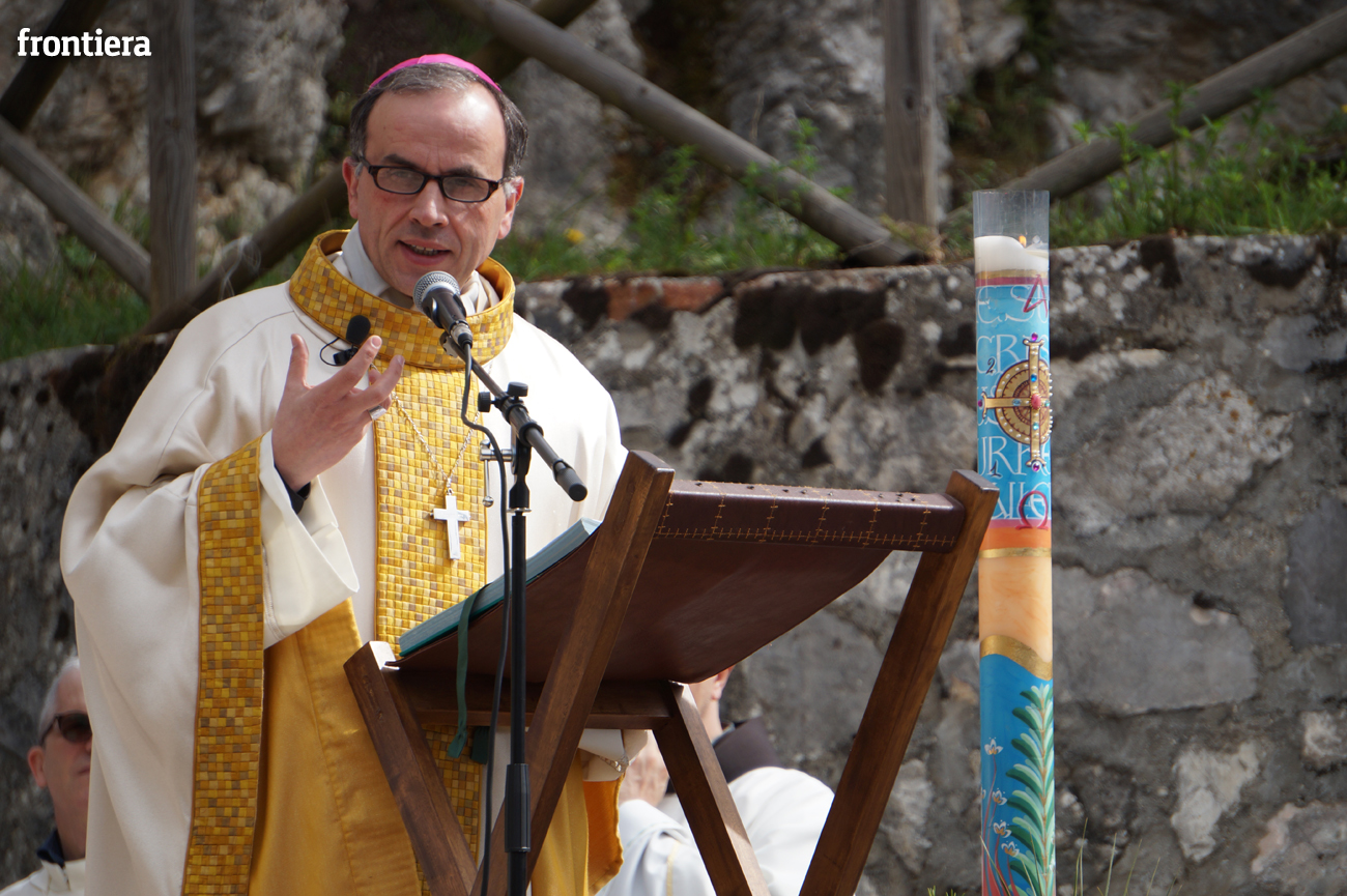 Quella gioia e quella pace hanno “soffiato” potentemente su tutti i convenuti al santuario. È stato lo stesso vescovo a impiegare l’immagine del refolo. Evocando il soffio di Gesù sugli apostoli ricordato nella pericope evangelica del giorno e collegandolo al gesto creatore di Dio che, nella Genesi, soffia nelle narici dell’uomo un alito di vita, egli ha invocato per i cuori di tutti una «nuova creazione», una conversione che apra alla comprensione dell’altro, al perdono e all’amore verso i fratelli.