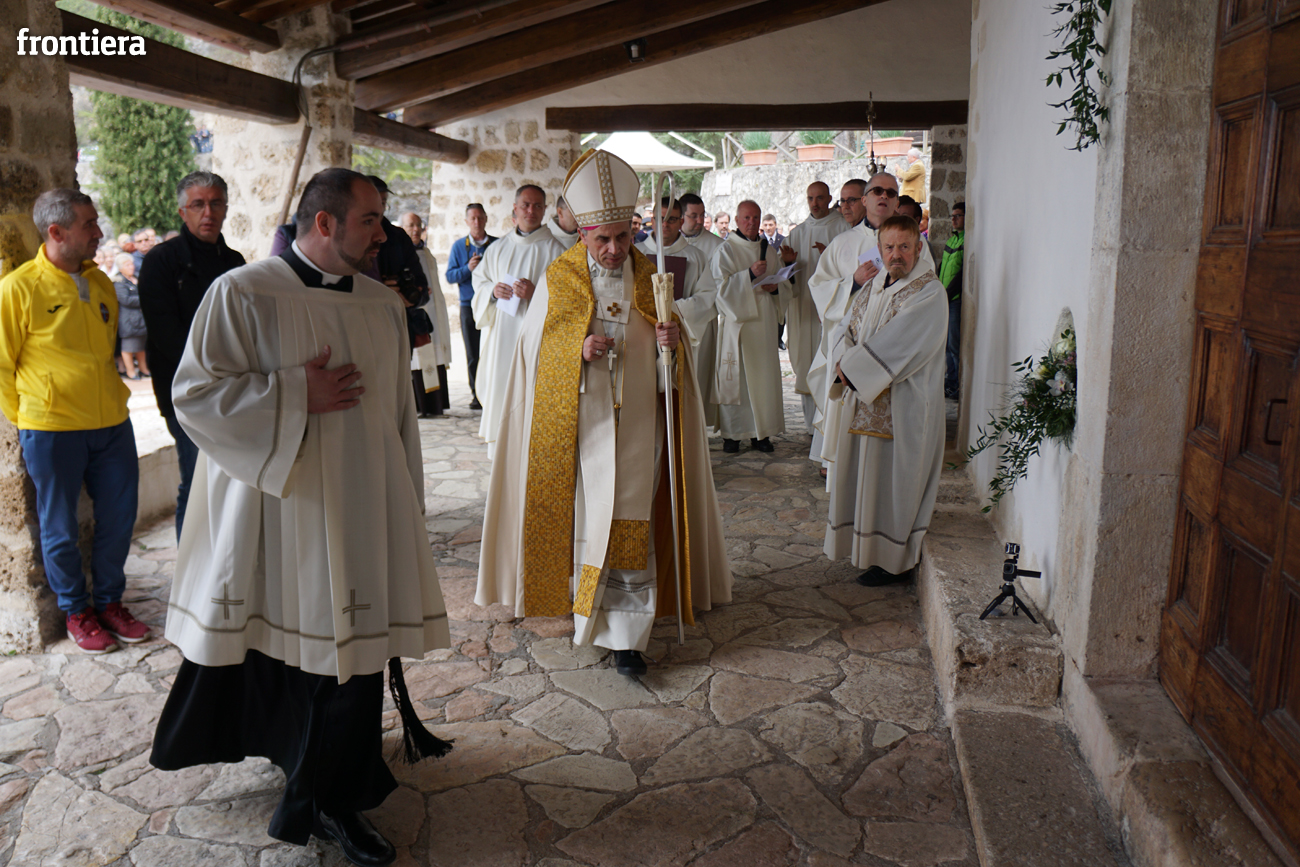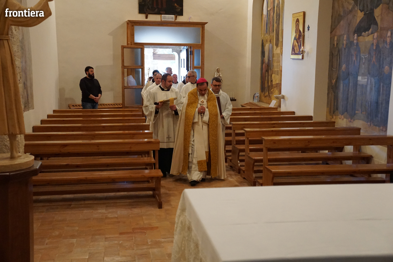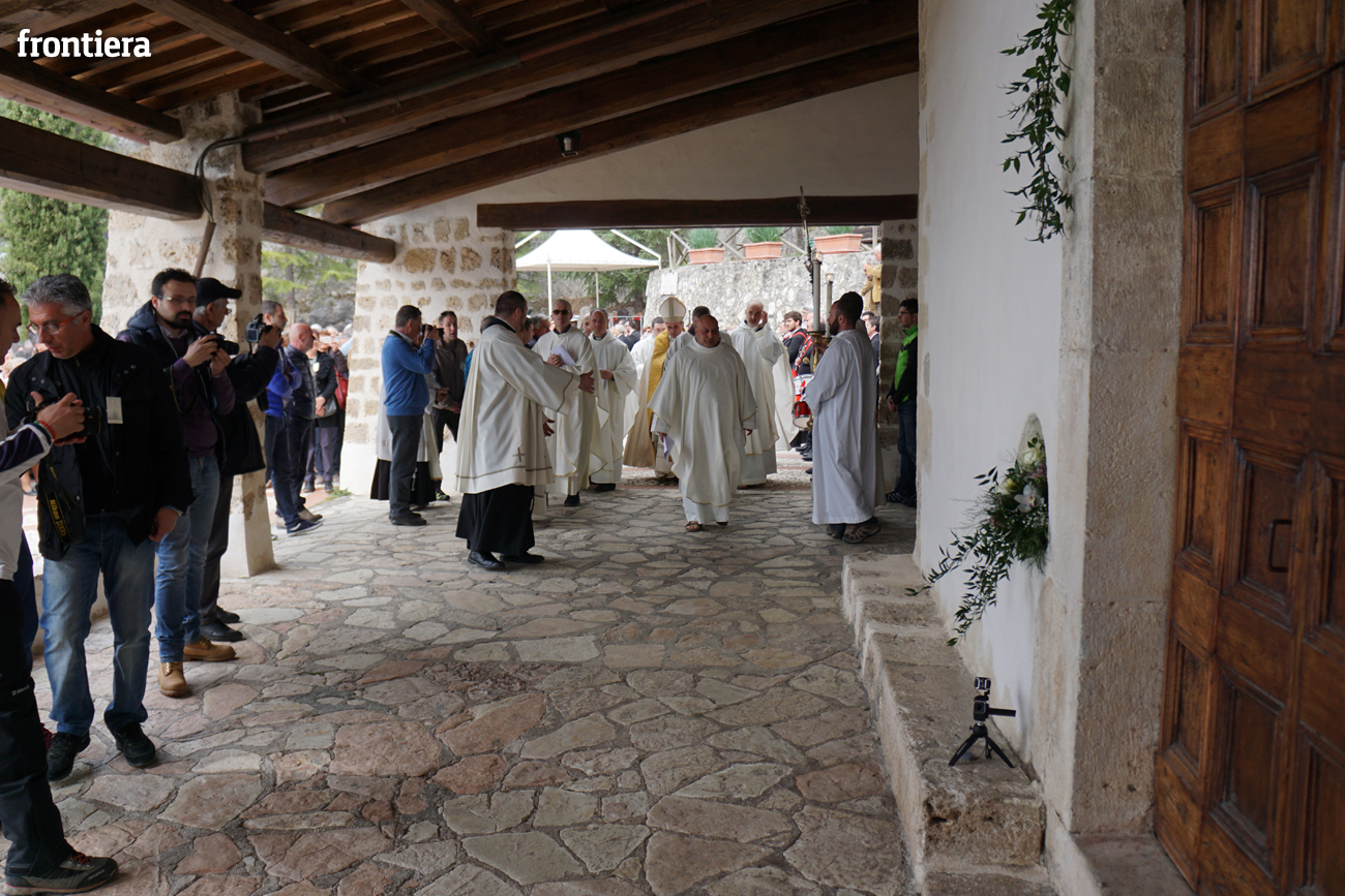Tutta incentrata su san Francesco l’omelia che il vescovo Domenico ha tenuto domenica 3 aprile, seconda di Pasqua, in occasione dell’apertura della Porta Santa della Misericordia presso il santuario francescano di San Giacomo Apostolo a Poggio Bustone. In quel luogo, nel 1208, il Poverello attraversa, dopo la sua conversione, «momenti di lacerazione interiore e di scoraggiamento psicologico perché incapace di rinascere a una vita pasquale segnata dalla gioia, dalla pace, dal perdono». È proprio mentre si macera nell’esame di coscienza, ripensando «con amarezza agli anni passati malamente», che si sente a poco a poco «inondare nell’intimo del cuore di ineffabile letizia e immensa dolcezza», maturando la certezza di essere stato perdonato da tutte le sue colpe e di aver raggiunto l’agognato stato di grazia.