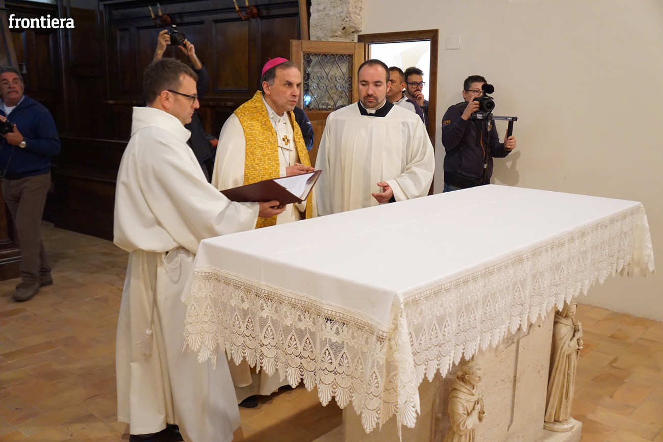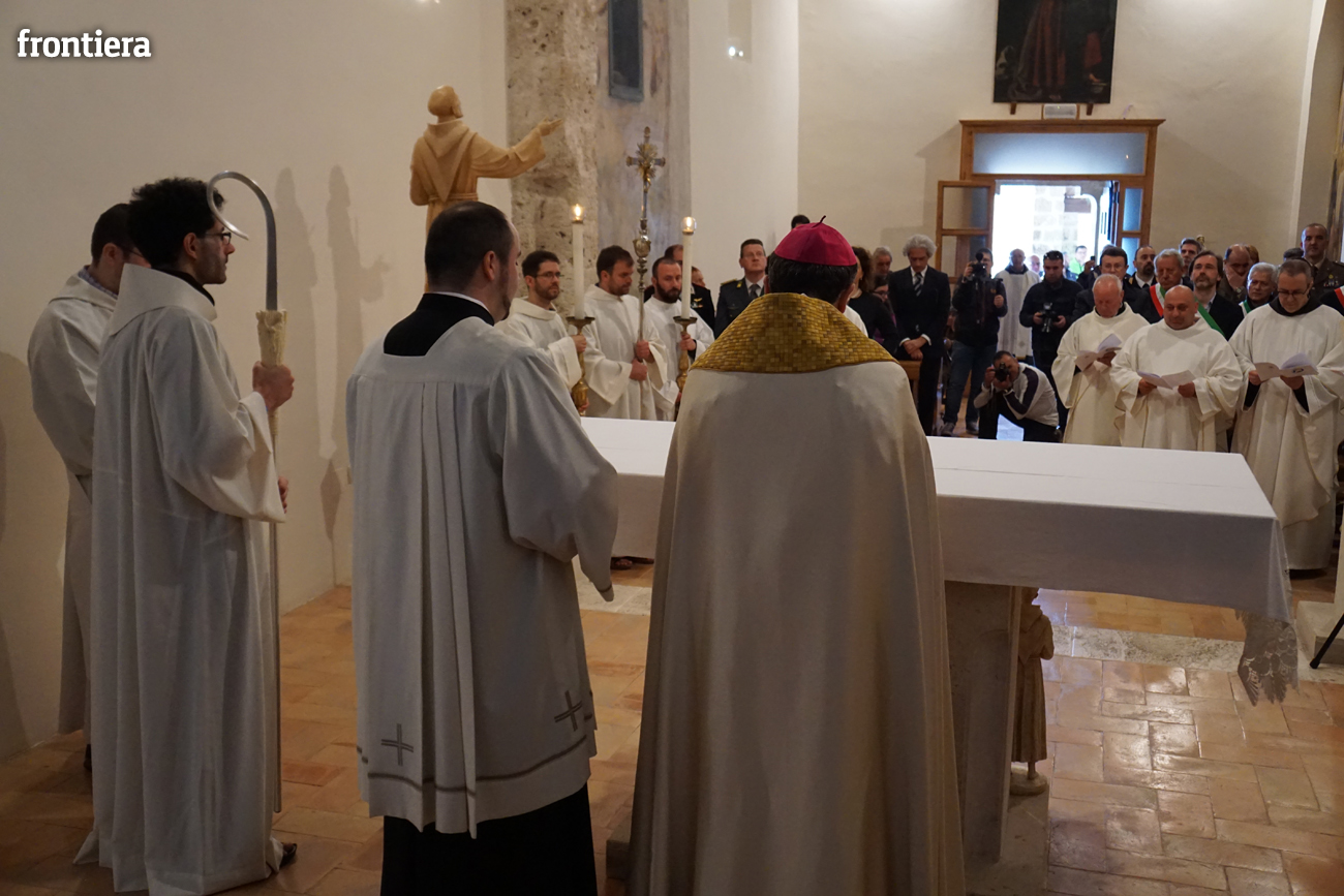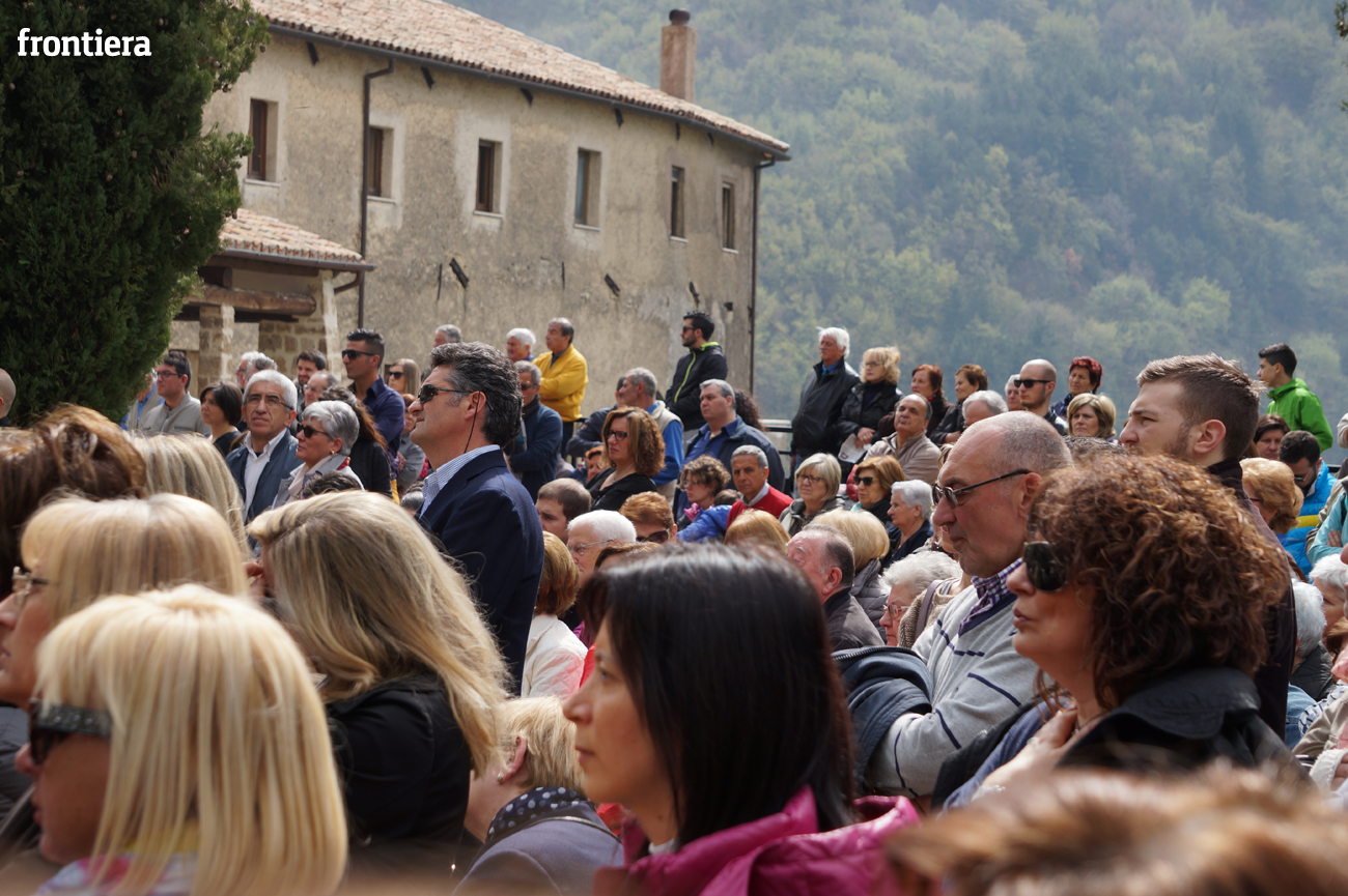 Tutta incentrata su san Francesco l’omelia che il vescovo Domenico ha tenuto domenica 3 aprile, seconda di Pasqua, in occasione dell’apertura della Porta Santa della Misericordia presso il santuario francescano di San Giacomo Apostolo a Poggio Bustone. In quel luogo, nel 1208, il Poverello attraversa, dopo la sua conversione, «momenti di lacerazione interiore e di scoraggiamento psicologico perché incapace di rinascere a una vita pasquale segnata dalla gioia, dalla pace, dal perdono». È proprio mentre si macera nell’esame di coscienza, ripensando «con amarezza agli anni passati malamente», che si sente a poco a poco «inondare nell’intimo del cuore di ineffabile letizia e immensa dolcezza», maturando la certezza di essere stato perdonato da tutte le sue colpe e di aver raggiunto l’agognato stato di grazia.