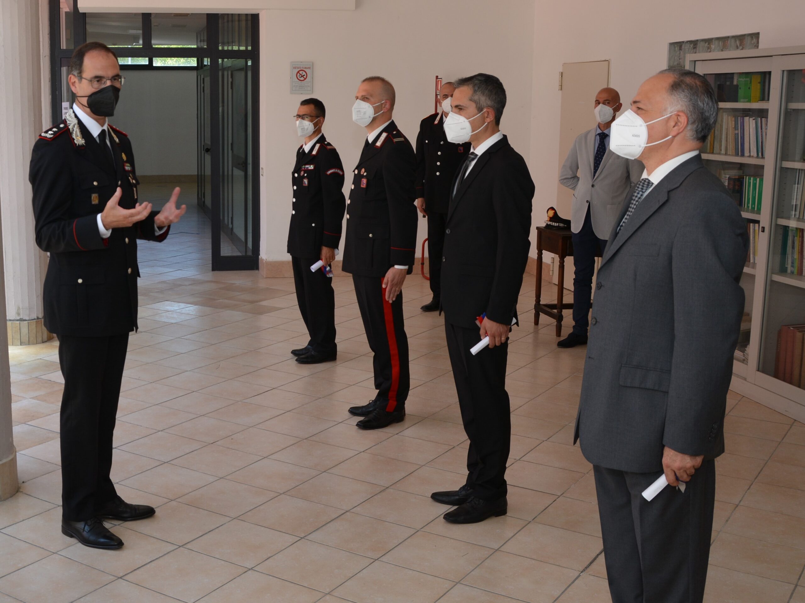 Dopo i saluti il Generale Minicucci ha consegnato le ricompense da lui stesso concesse a cinque militari della Compagnia di Rieti che si sono distinti in servizio: tre Encomi Semplici al Maresciallo Maggiore Mariano Patacchiola, Maresciallo Ordinario Marco Azzarello e Brigadiere Capo Riccardo Dionisi, rispettivamente Comandante e addetti alla Stazione di Cantalice, per aver tratto in arresto, dopo articolate indagini, tre persone responsabili di numerosi furti su autovetture parcheggiate nei pressi dei cimiteri del luogo, e due lettere di vivo compiacimento al Brigadiere Capo Davide Mannino e al Brigadiere Alessandro Renzi, entrambi addetti alla Sezione Operativa del Nucleo Operativo e Radiomobile della Compagnia di Rieti, per aver tratto in arresto tre persone responsabili di diversi furti in tabaccherie della provincia.