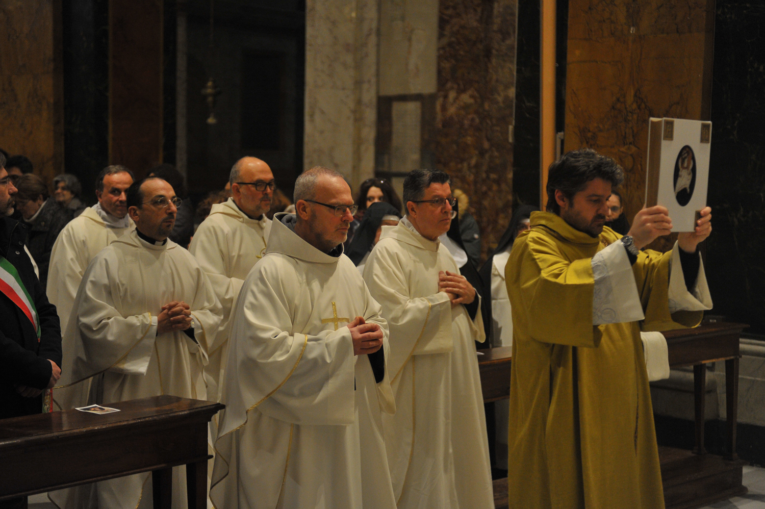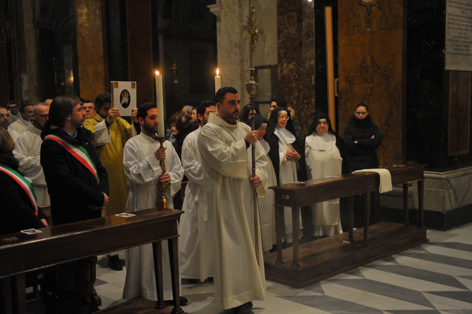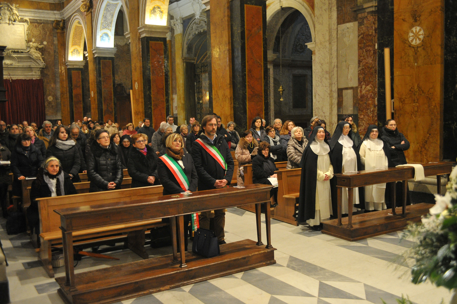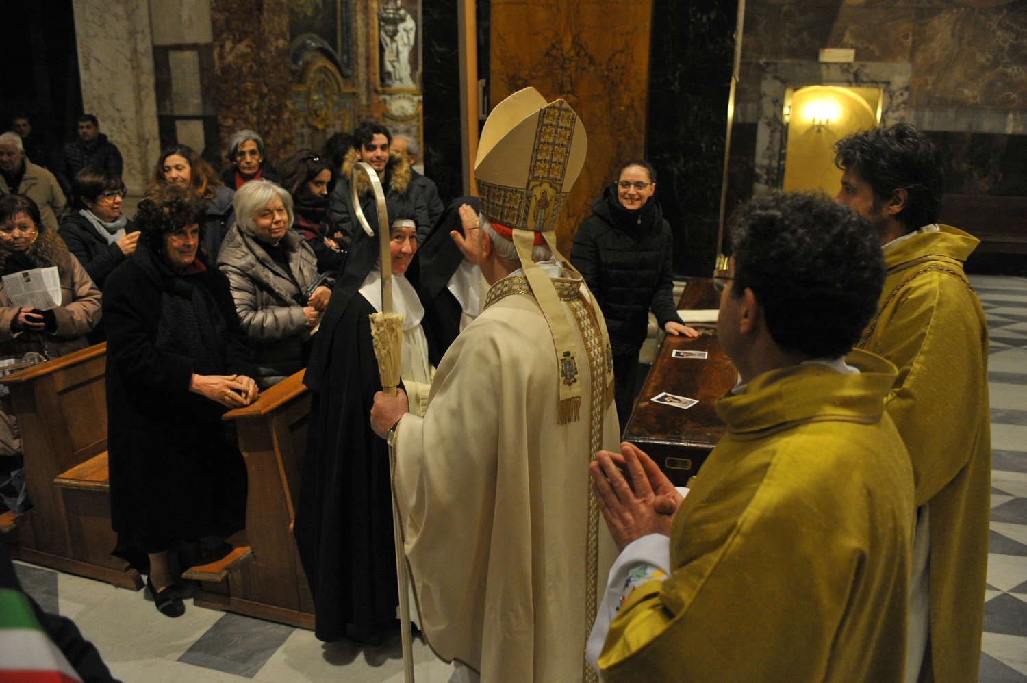 È stato un momento di preghiera intenso e partecipato quello che, nel pomeriggio di sabato 4 febbraio, ha visto riuniti i fedeli di Rieti e di Perugia per la santa messa che il cardinale Gualtiero Bassetti ha presieduto nella Basilica Cattedrale in onore di Colomba da Rieti, di cui quest’anno ricorrono i cinquecentocinquant’anni dalla nascita. I membri dell’associazione umbra dedita allo studio della figura della beata, che, nata a Rieti, ha poi trascorso gran parte della sua vita a Perugia, erano in città dal mattino e hanno speso la loro giornata visitando i luoghi legati all’esperienza e al culto di Colomba, dal monastero di Sant’Agnese, sorto sul luogo della sua casa natale, all’oratorio di San Pietro Martire al chiostro nuovo di San Domenico.