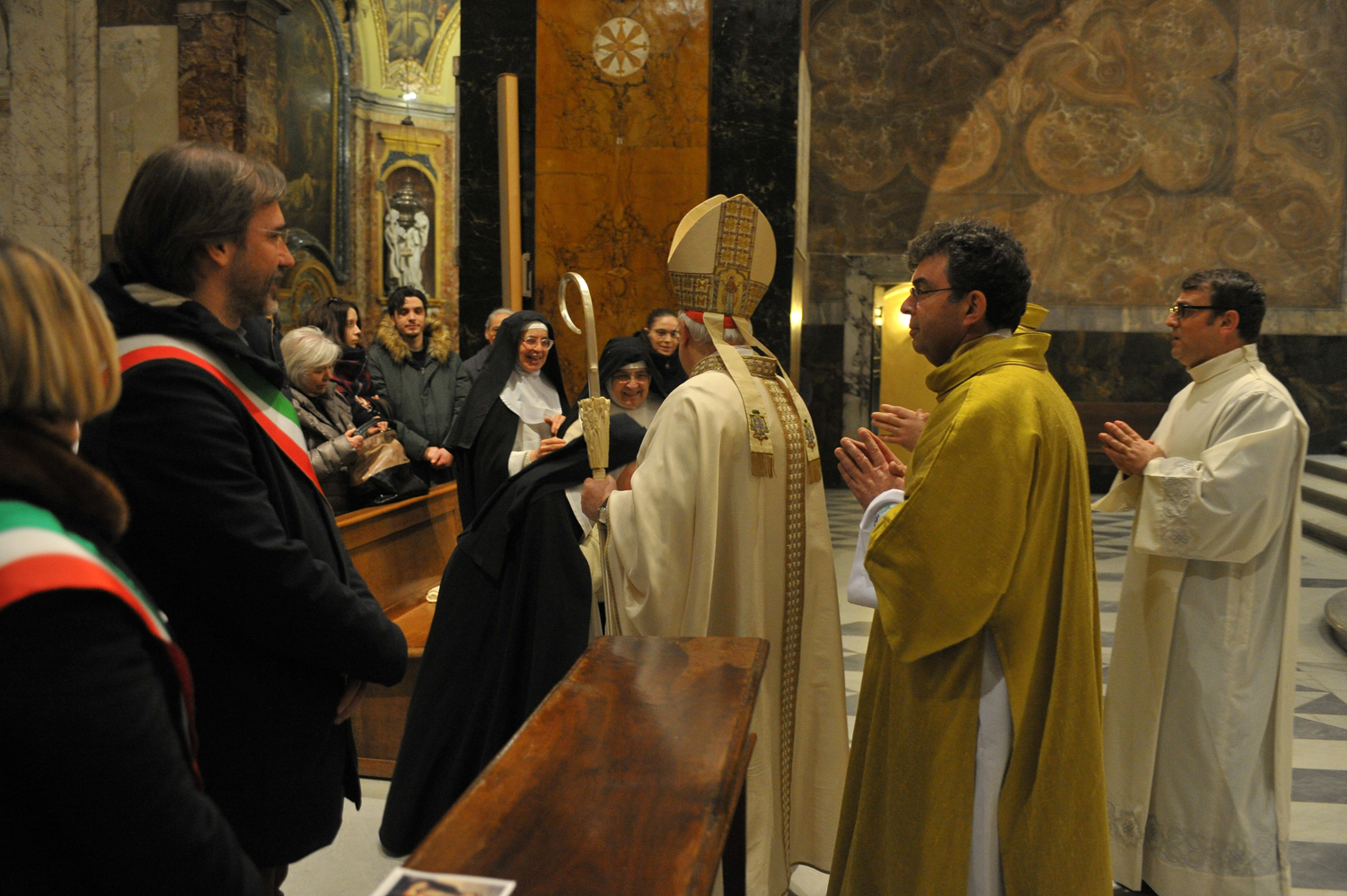 Sabato 4 febbraio, un consistente gruppo di fedeli è giunto a Rieti da Perugia, accompagnato dal cardinale Gualtiero Bassetti. Il porporato perugino, insieme al vescovo Domenico Pompili, al vescovo emerito di Rieti Delio Lucarelli, e all’emerito di Perugia Giuseppe Chiaretti, ha presieduto una solenne concelebrazione eucaristica nella cattedrale di Santa Maria Assunta