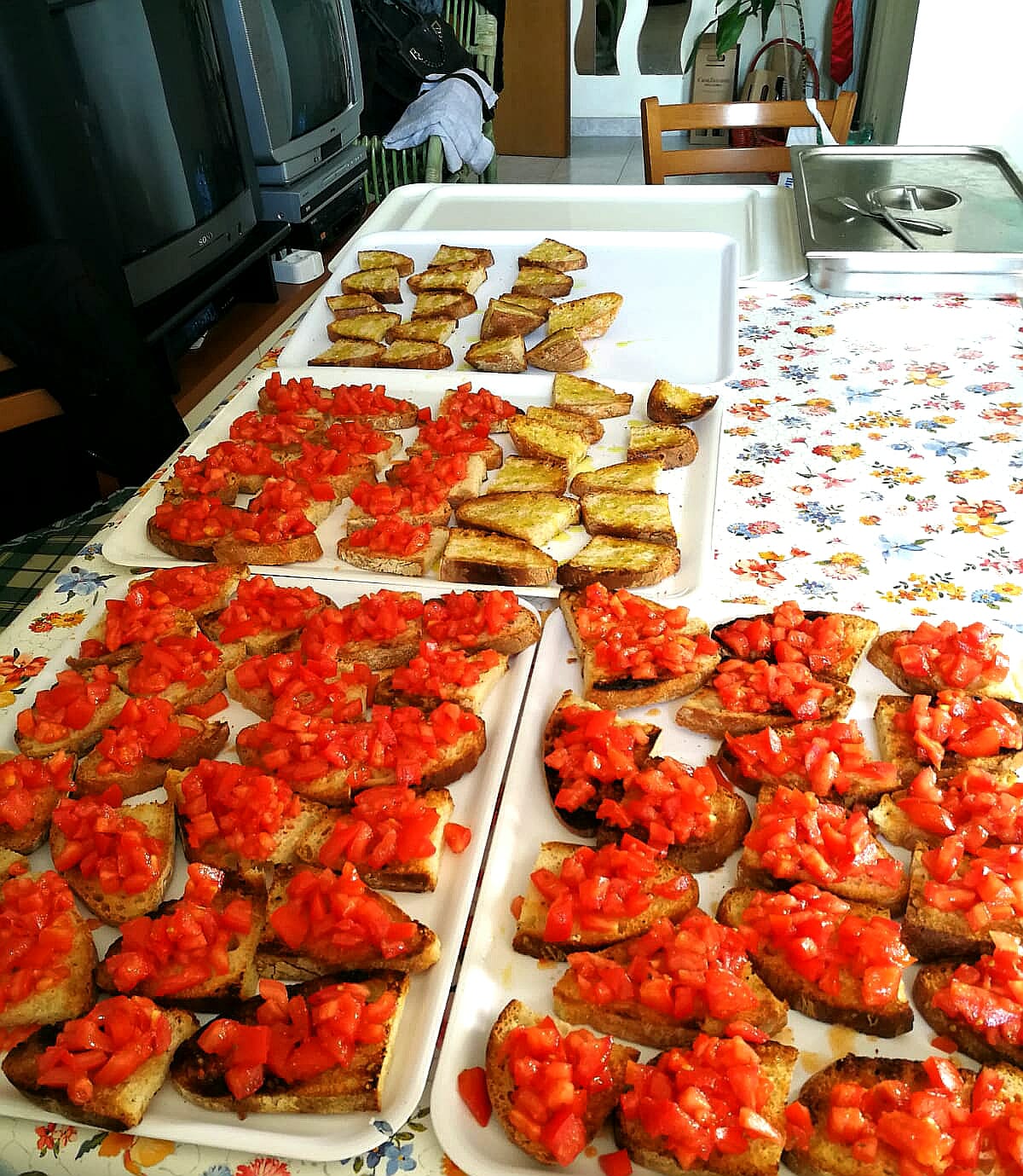 Non è mancato chi è passato di là dal recinto per fare i complimenti, chi si è sentito ristorato per la situazione che stava vivendo, immerso nella natura così curata. Come non gioire poi per i manicaretti preparati dalle donne impegnate in cucina e, nel pomeriggio, per le castagne e le pizze fritte che hanno allietato ancor di più una giornata di per sé fatta di sole, sudore e un po’ di vento.