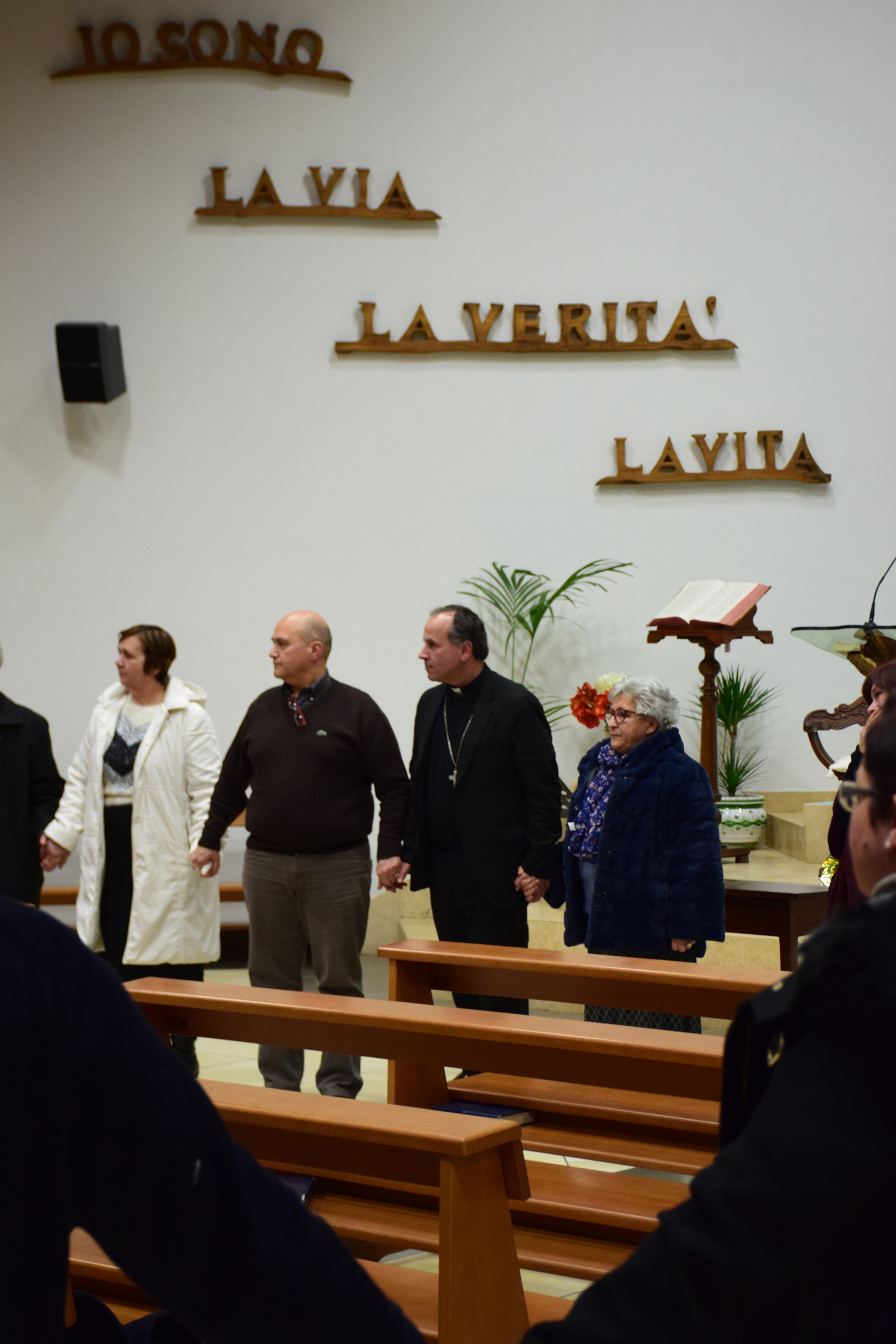 Anche lui ha preso la parola, per un momento di riflessione, durante l’incontro di preghiera guidato dal pastore Daniele Benini, scandito da brani biblici con risonanze di alcuni fedeli della comunità avventista e anche da parte di un fedele cattolico (sul tema della riconciliazione tra fratelli, che fa da sfondo alla Settimana dell’unità dei cristiani di quest’anno), canti di lode, interventi dei ministri di culto (oltre al pastore Daniele e al vescovo Domenico, anche don Marco, direttore del competente ufficio diocesano, che ha guidato la preghiera comune del Padre nostro), invocazioni all’unico Signore nel quale ci si è voluti ritrovare come figli al di là delle differenze dottrinali e delle divisioni che permangono, consapevoli della base comune che è la fede trinitaria e l’appartenenza allo stesso Cristo morto e risorto.