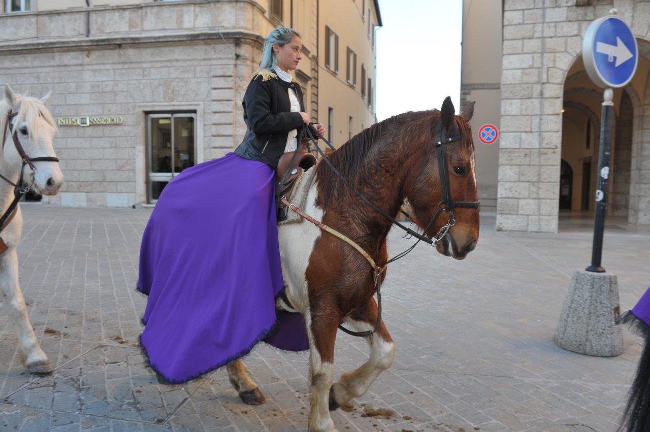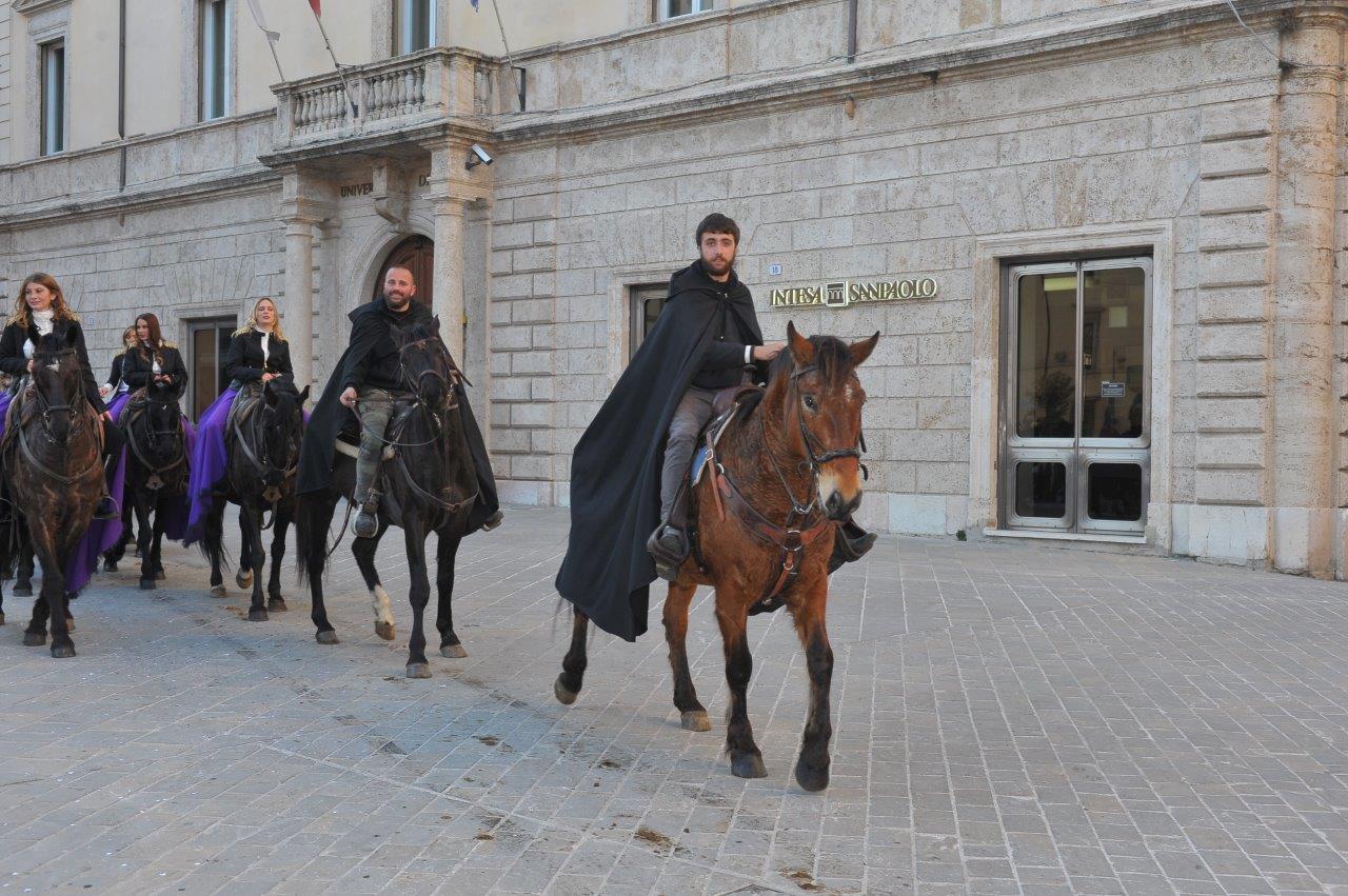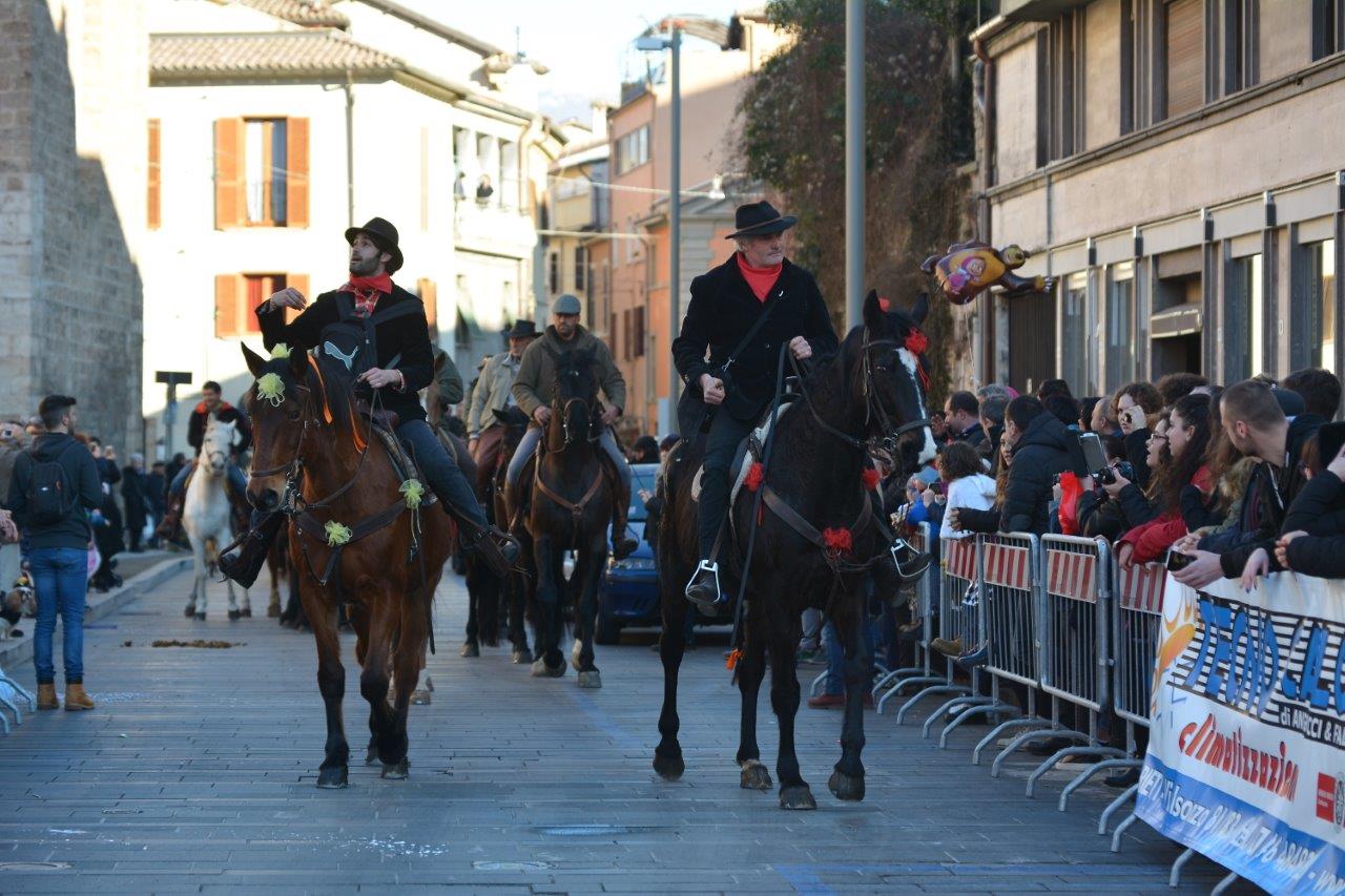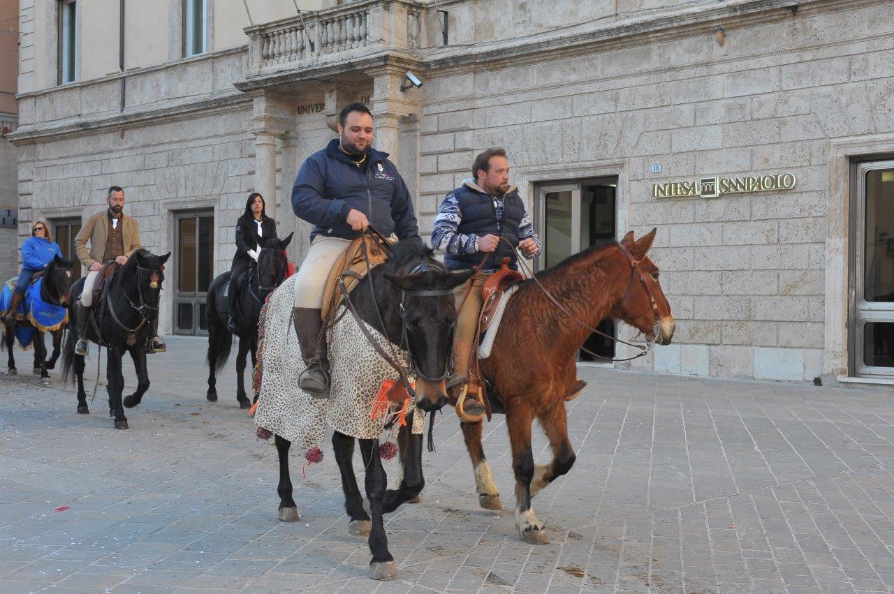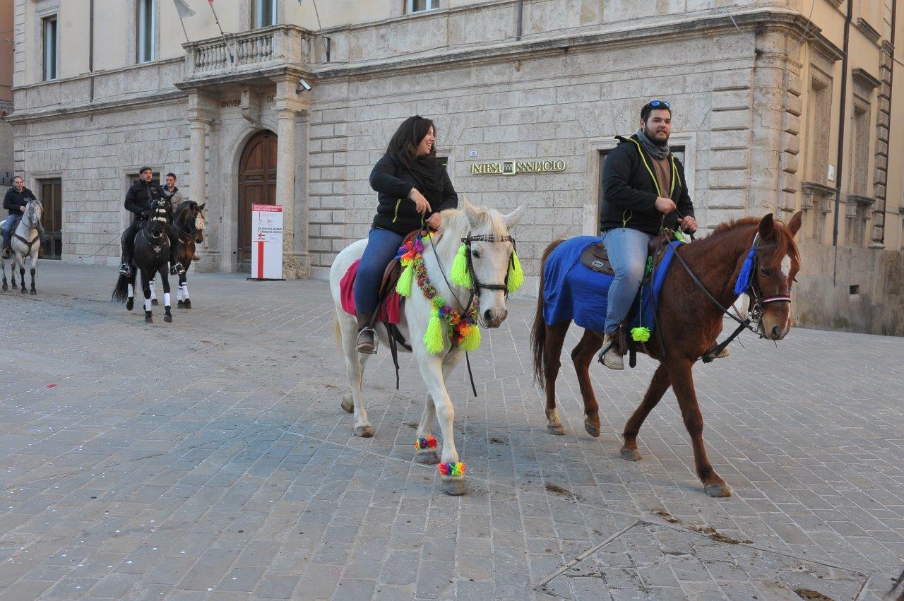Buona riuscita per la consueta sfilata dei Cavalli Infiocchettati. Circa 200 equipaggi hanno sfilato lungo le vie della città. Tra di loro anche cavalieri da varie regioni e un gruppo ippico arrivato da Norcia.