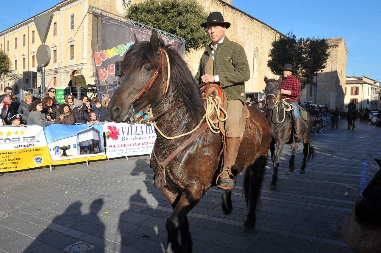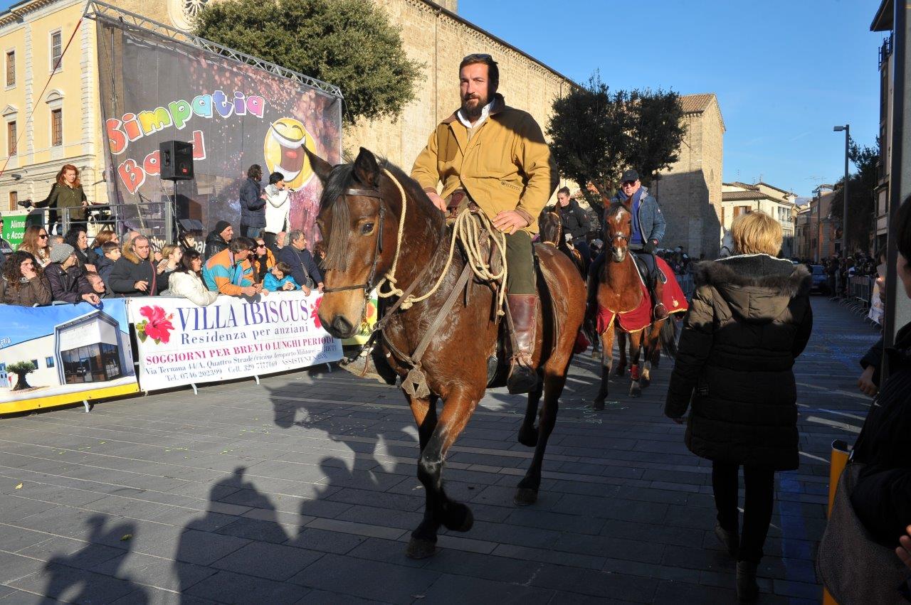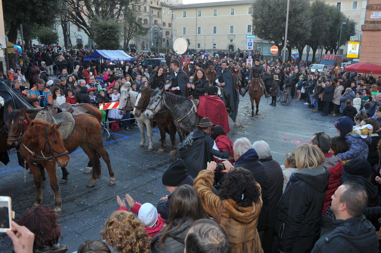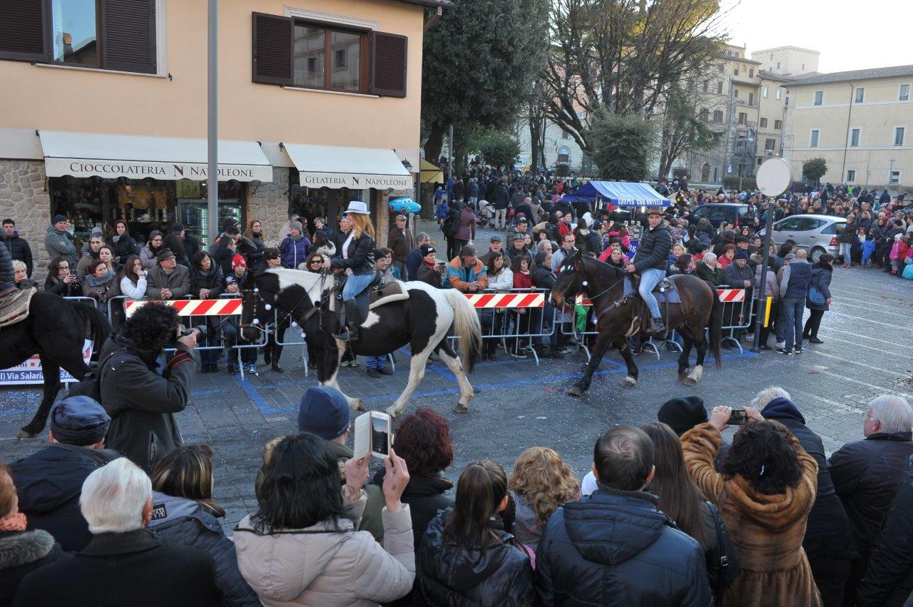 Come da programma, la sfilata pomeridiana è stata preceduta, la domenica mattina, dalla rievocazione storica, con la benedizione di cavalli e cavalieri impartita da don Marco Tarquini nei pressi della chiesa di Sant’Antonio Abate.
