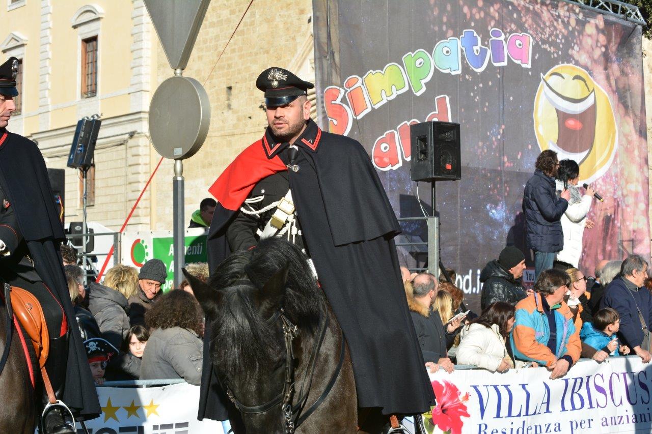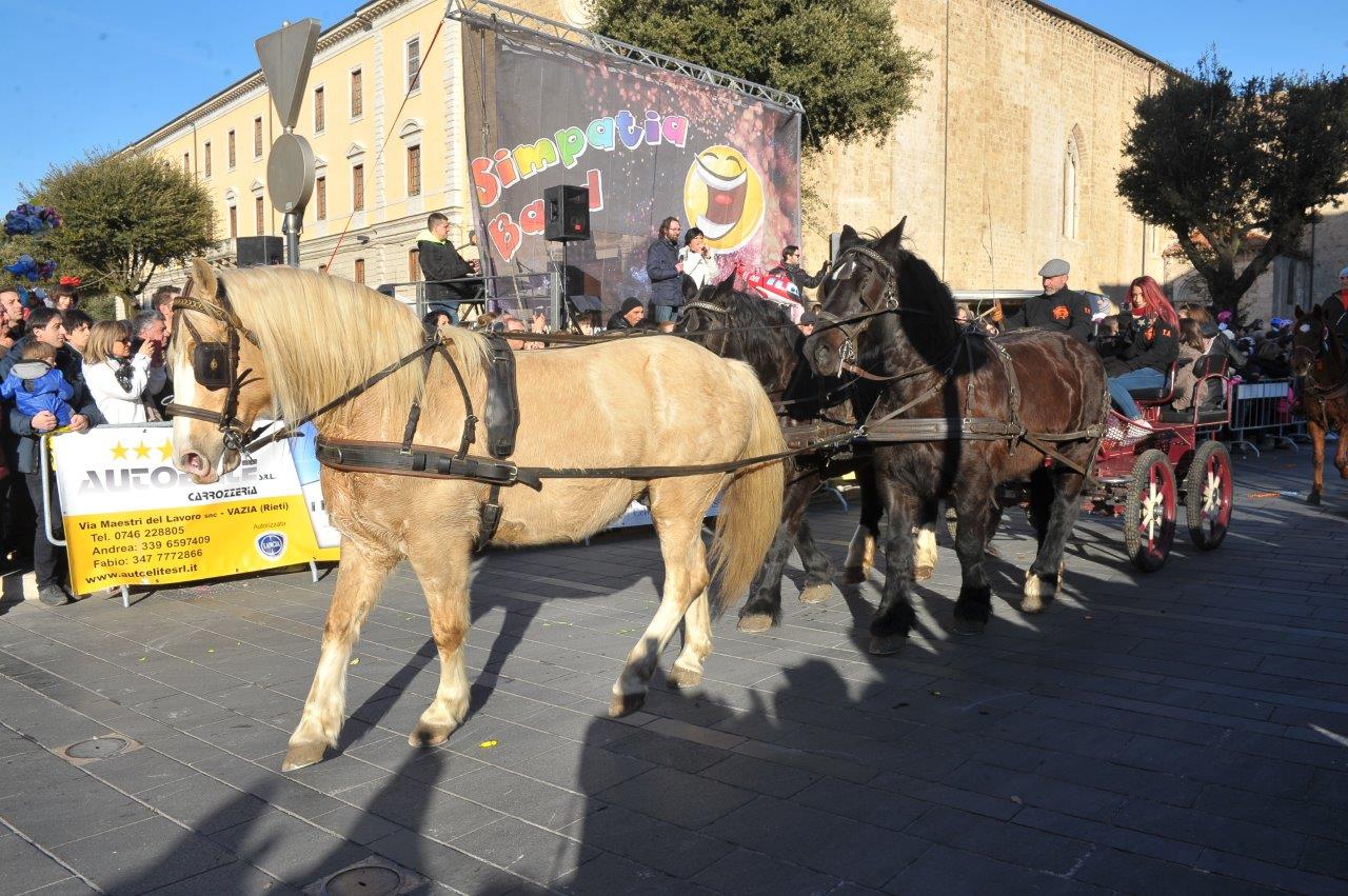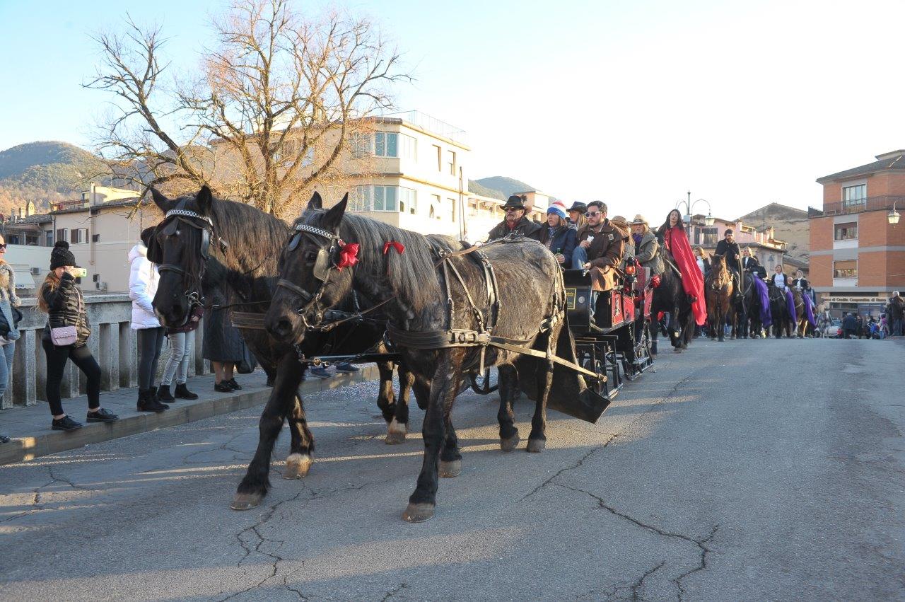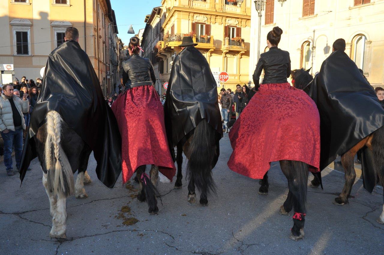 Come da programma, la sfilata pomeridiana è stata preceduta, la domenica mattina, dalla rievocazione storica, con la benedizione di cavalli e cavalieri impartita da don Marco Tarquini nei pressi della chiesa di Sant’Antonio Abate.
