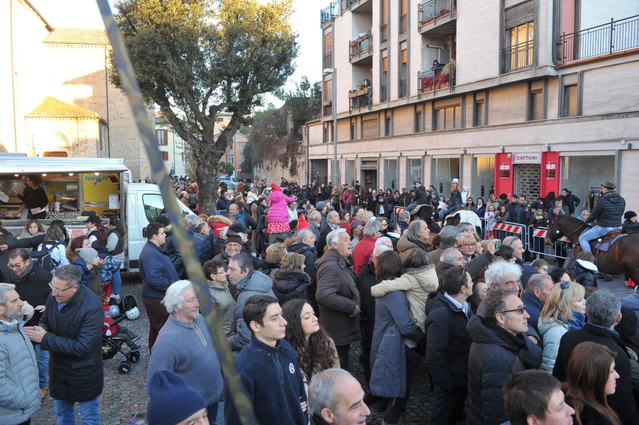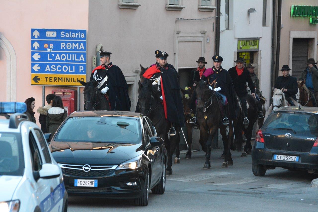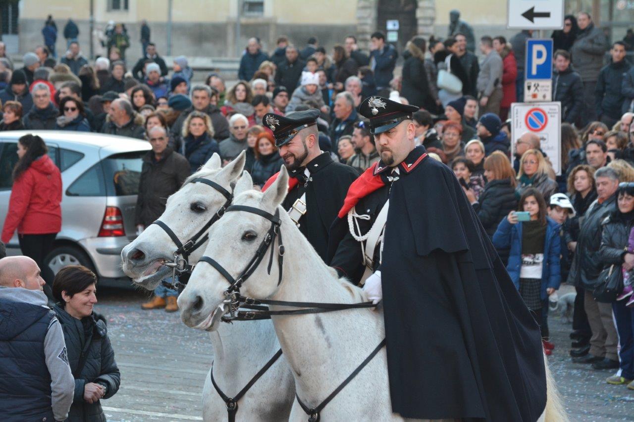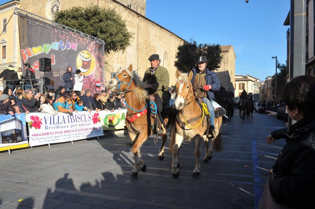 Come da programma, la sfilata pomeridiana è stata preceduta, la domenica mattina, dalla rievocazione storica, con la benedizione di cavalli e cavalieri impartita da don Marco Tarquini nei pressi della chiesa di Sant’Antonio Abate.