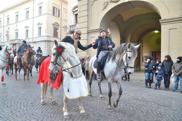 Anche quest’anno l’appuntamento ha richiamato un pubblico notevole. In tanti si sono riversati nelle vie del centro storico, incuranti del clima gelido, con i bambini in braccio o sulle spalle ad ammirare divertiti gli animali e i cavalieri.