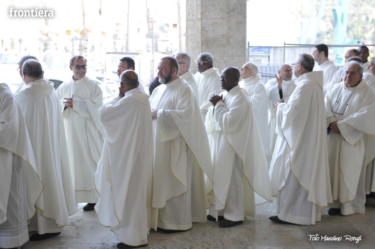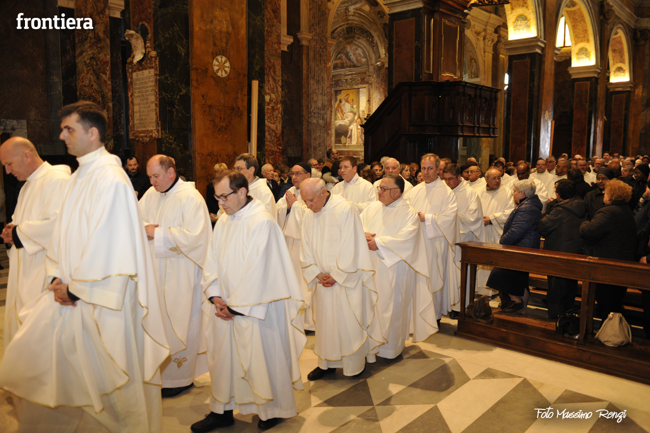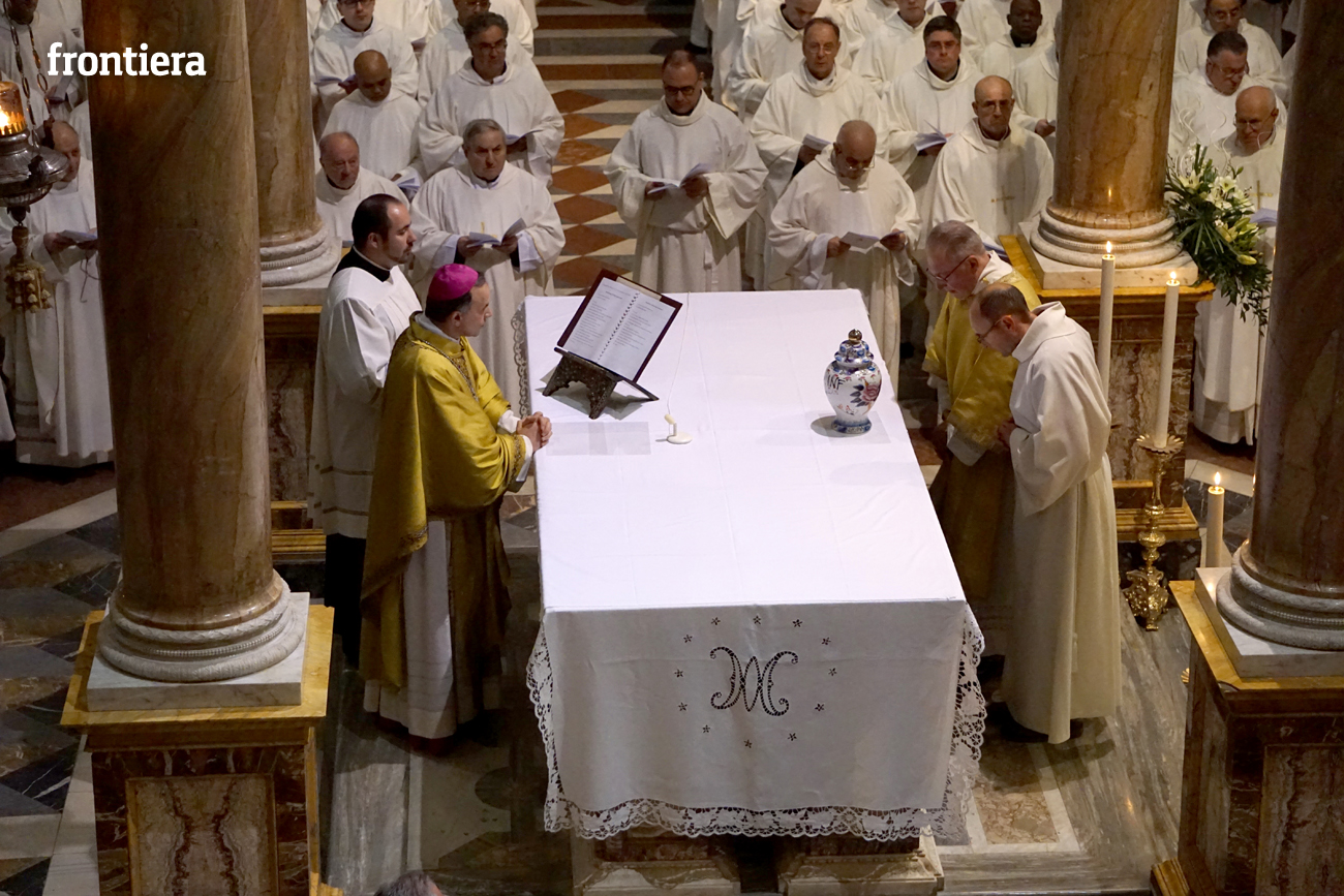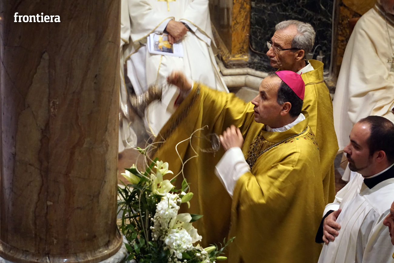 È stata celebrata in Santa Maria nel pomeriggio del 23 marzo, Mercoledì Santo, la Messa del Crisma. Non soltanto i presbiteri della diocesi, ma anche tantissimi fedeli laici hanno preso parte alla liturgia solenne: i primi in forza del sacerdozio ministeriale, tutti quanti in virtù della consacrazione battesimale.