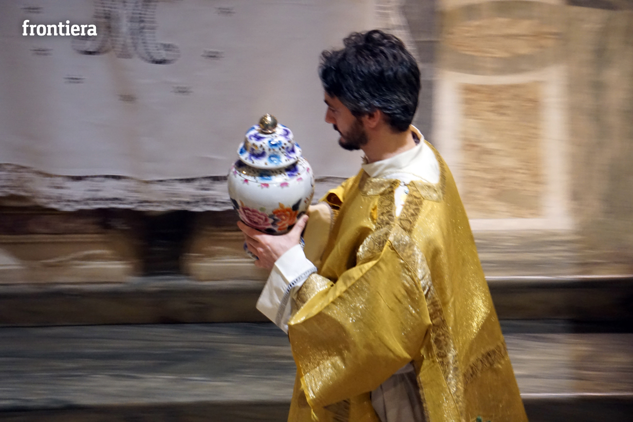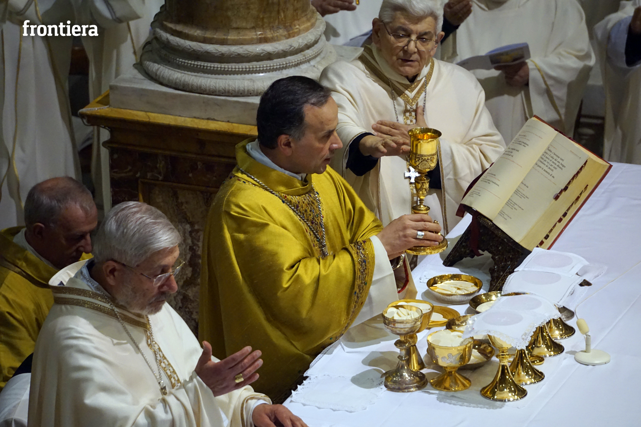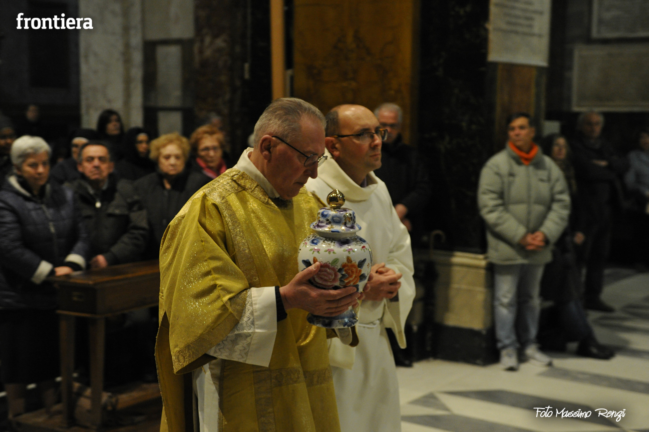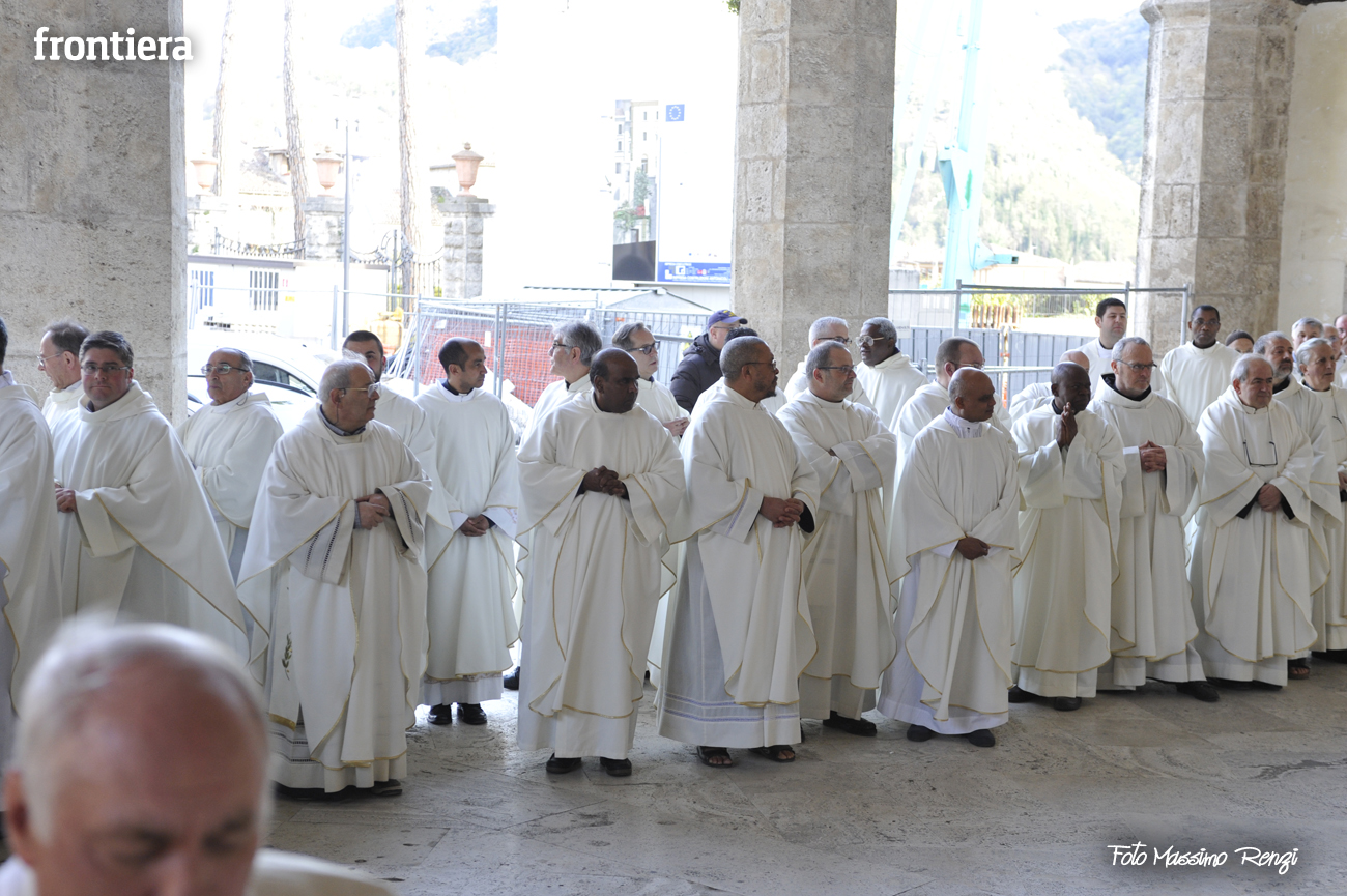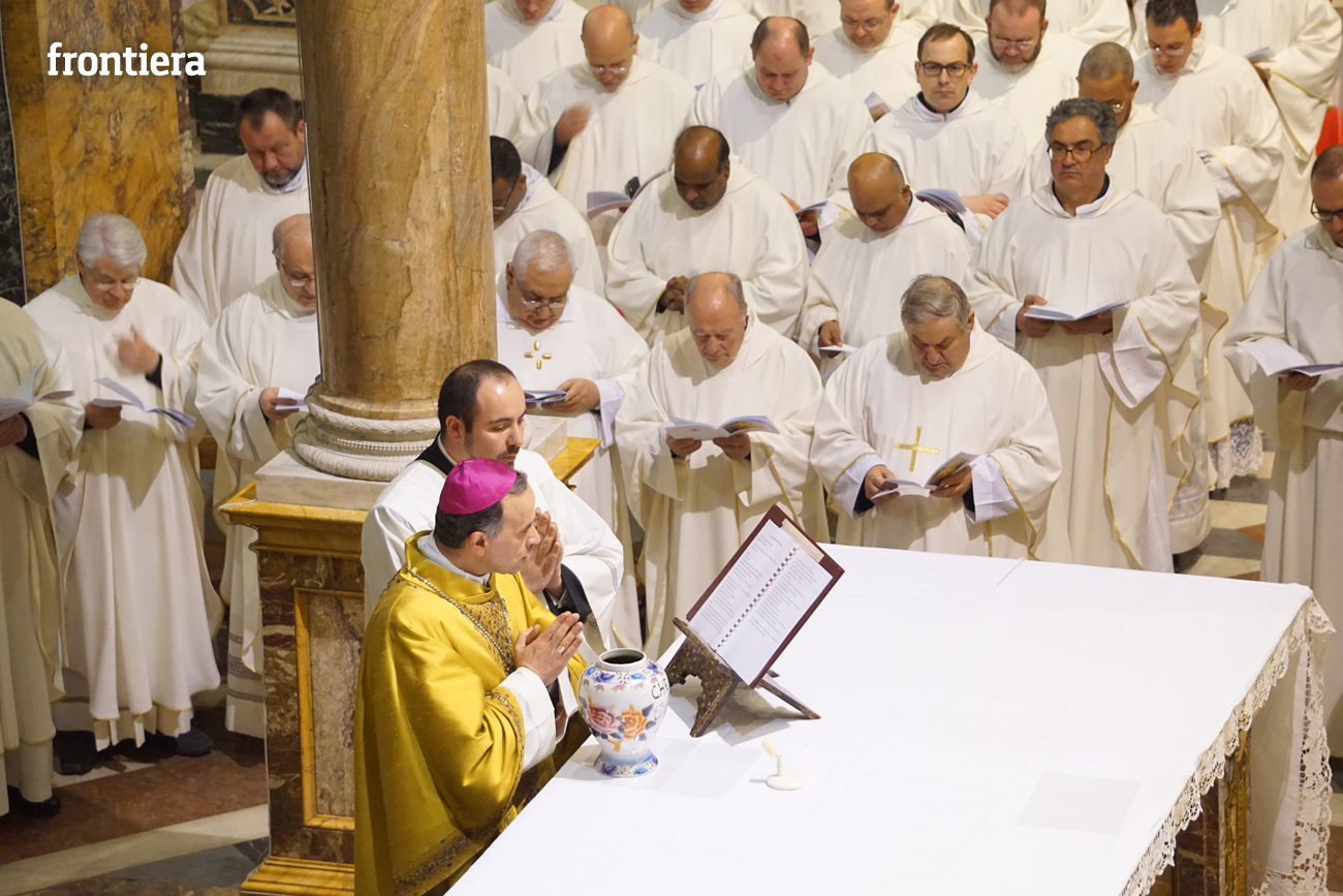 È stata celebrata in Santa Maria nel pomeriggio del 23 marzo, Mercoledì Santo, la Messa del Crisma. Non soltanto i presbiteri della diocesi, ma anche tantissimi fedeli laici hanno preso parte alla liturgia solenne: i primi in forza del sacerdozio ministeriale, tutti quanti in virtù della consacrazione battesimale.