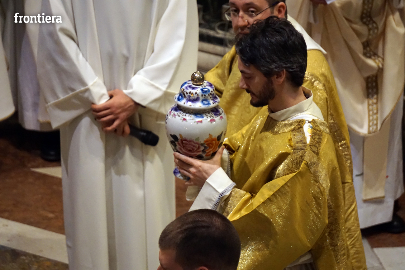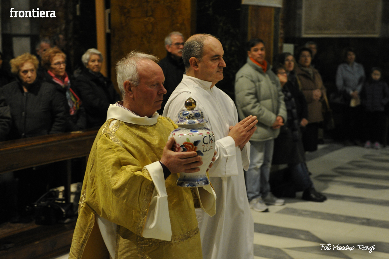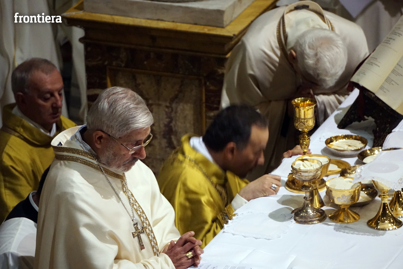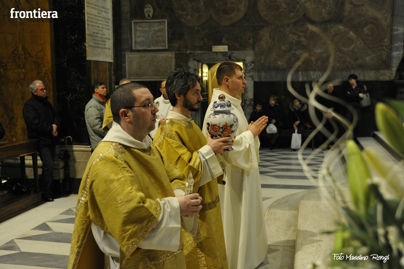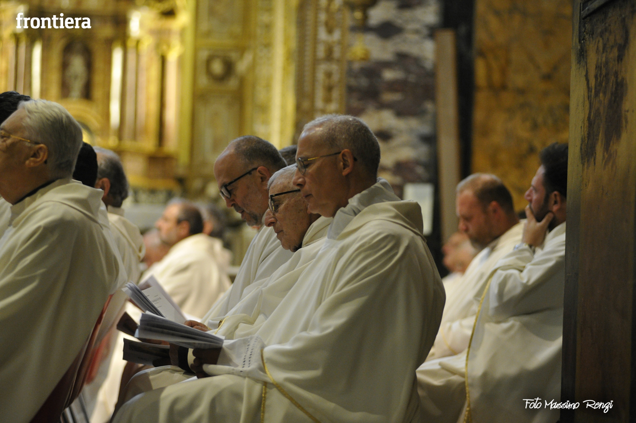 È stata celebrata in Santa Maria nel pomeriggio del 23 marzo, Mercoledì Santo, la Messa del Crisma. Non soltanto i presbiteri della diocesi, ma anche tantissimi fedeli laici hanno preso parte alla liturgia solenne: i primi in forza del sacerdozio ministeriale, tutti quanti in virtù della consacrazione battesimale.