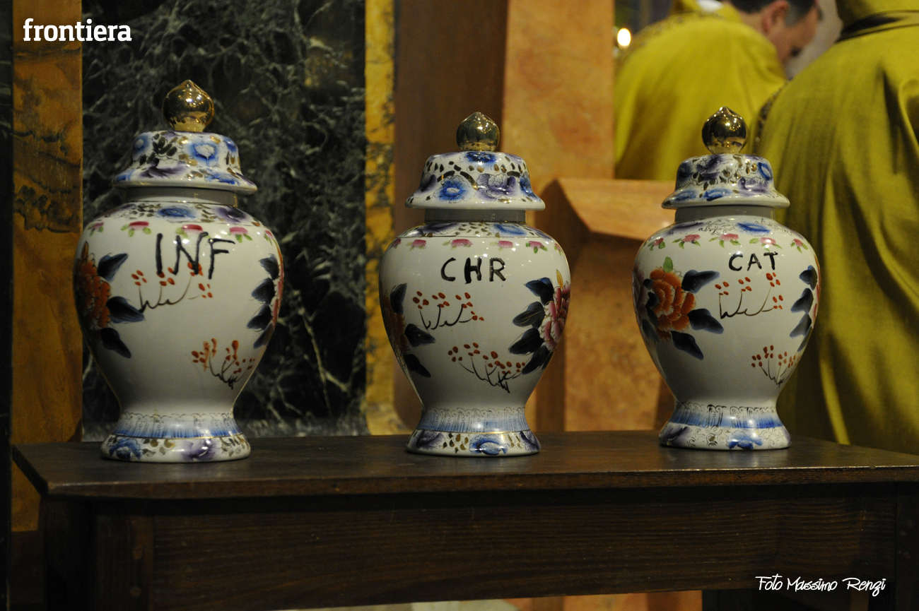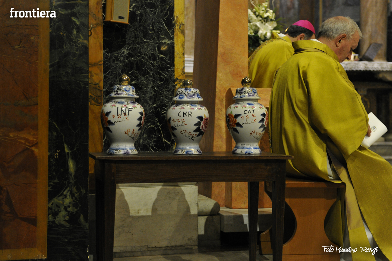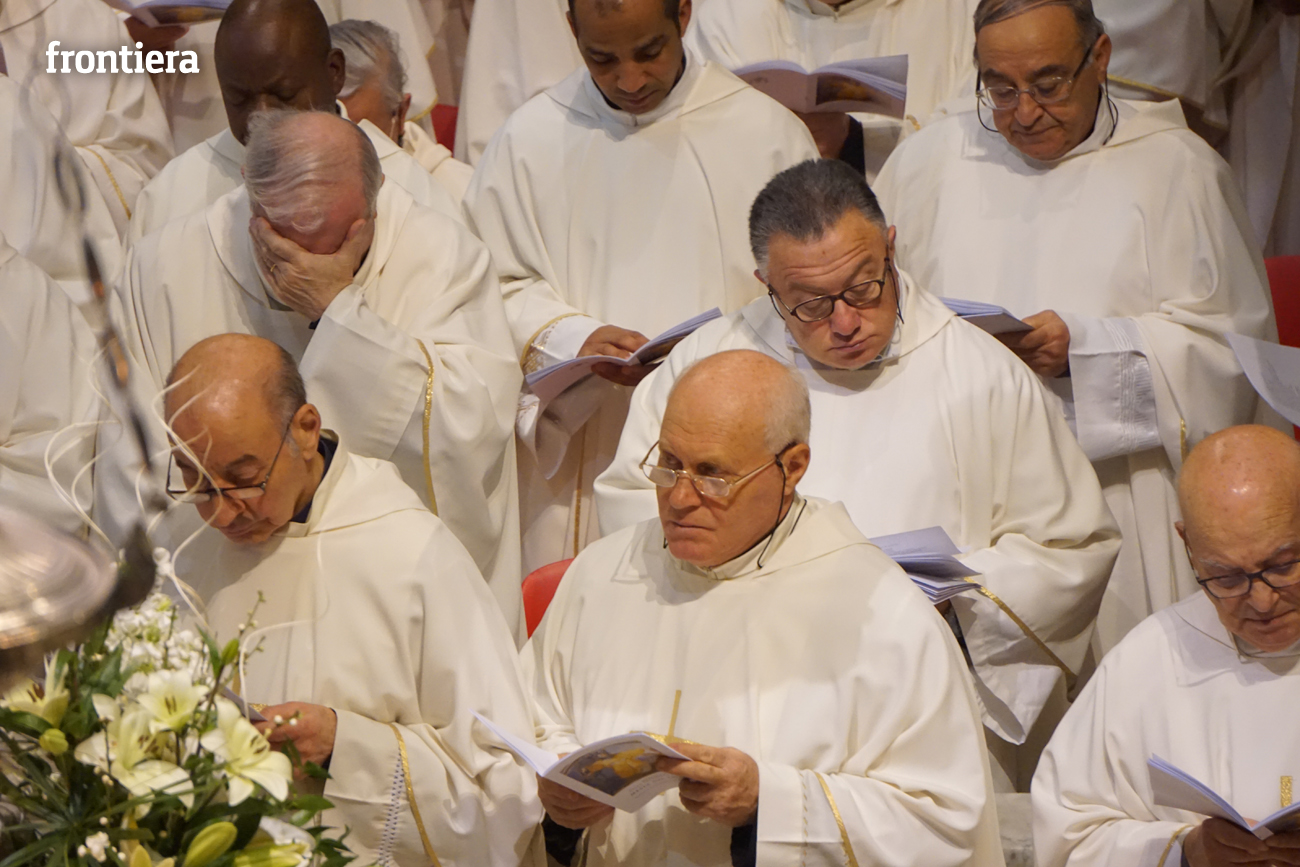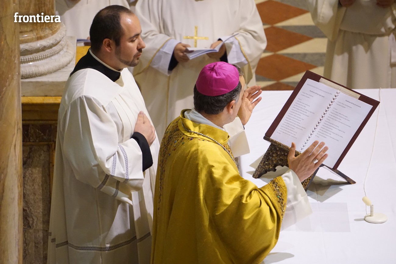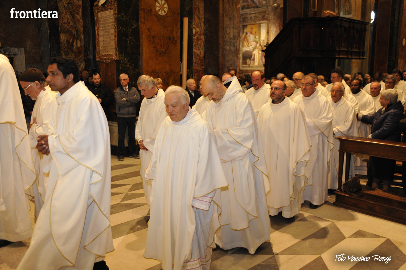 È stata celebrata in Santa Maria nel pomeriggio del 23 marzo, Mercoledì Santo, la Messa del Crisma. Non soltanto i presbiteri della diocesi, ma anche tantissimi fedeli laici hanno preso parte alla liturgia solenne: i primi in forza del sacerdozio ministeriale, tutti quanti in virtù della consacrazione battesimale.