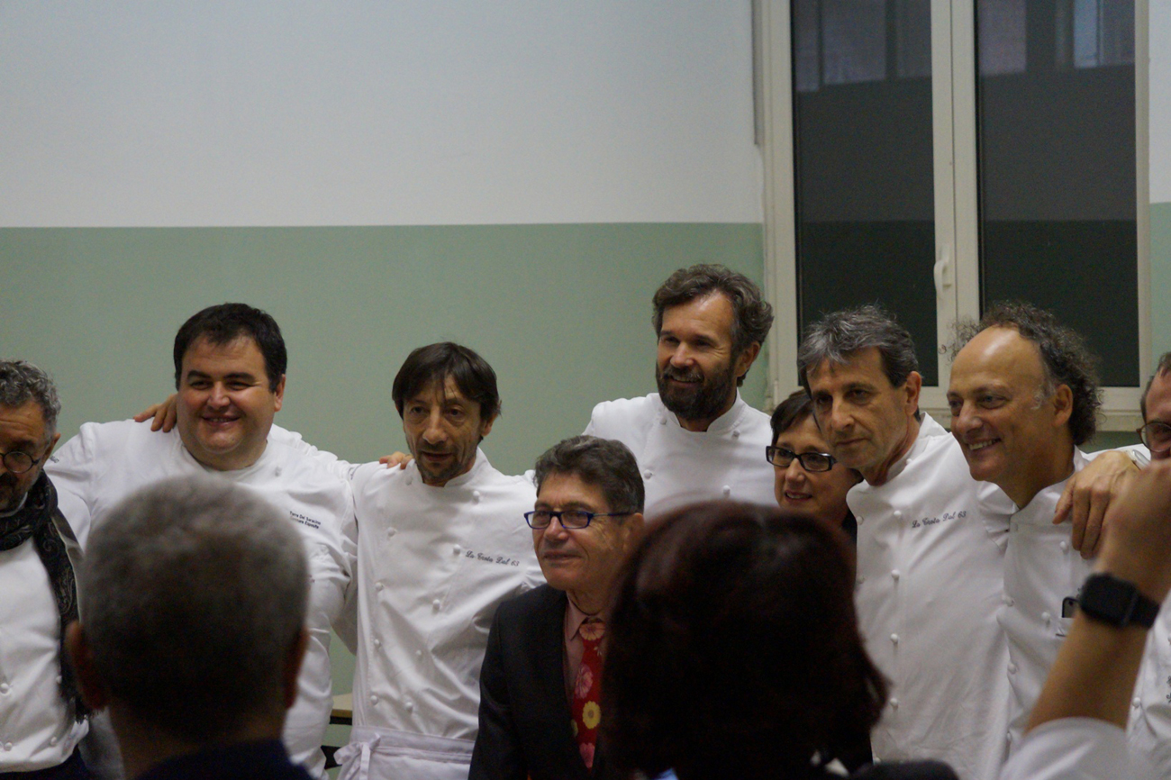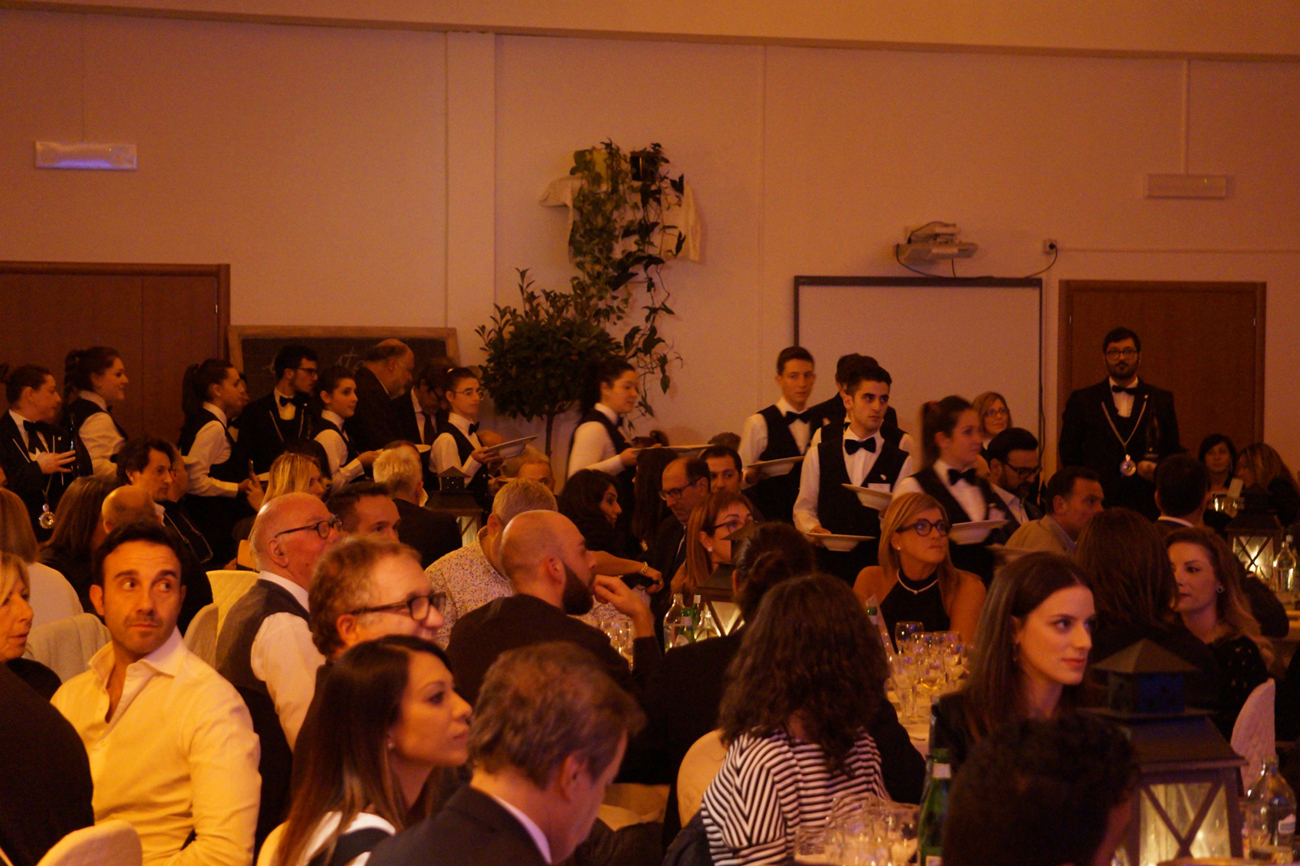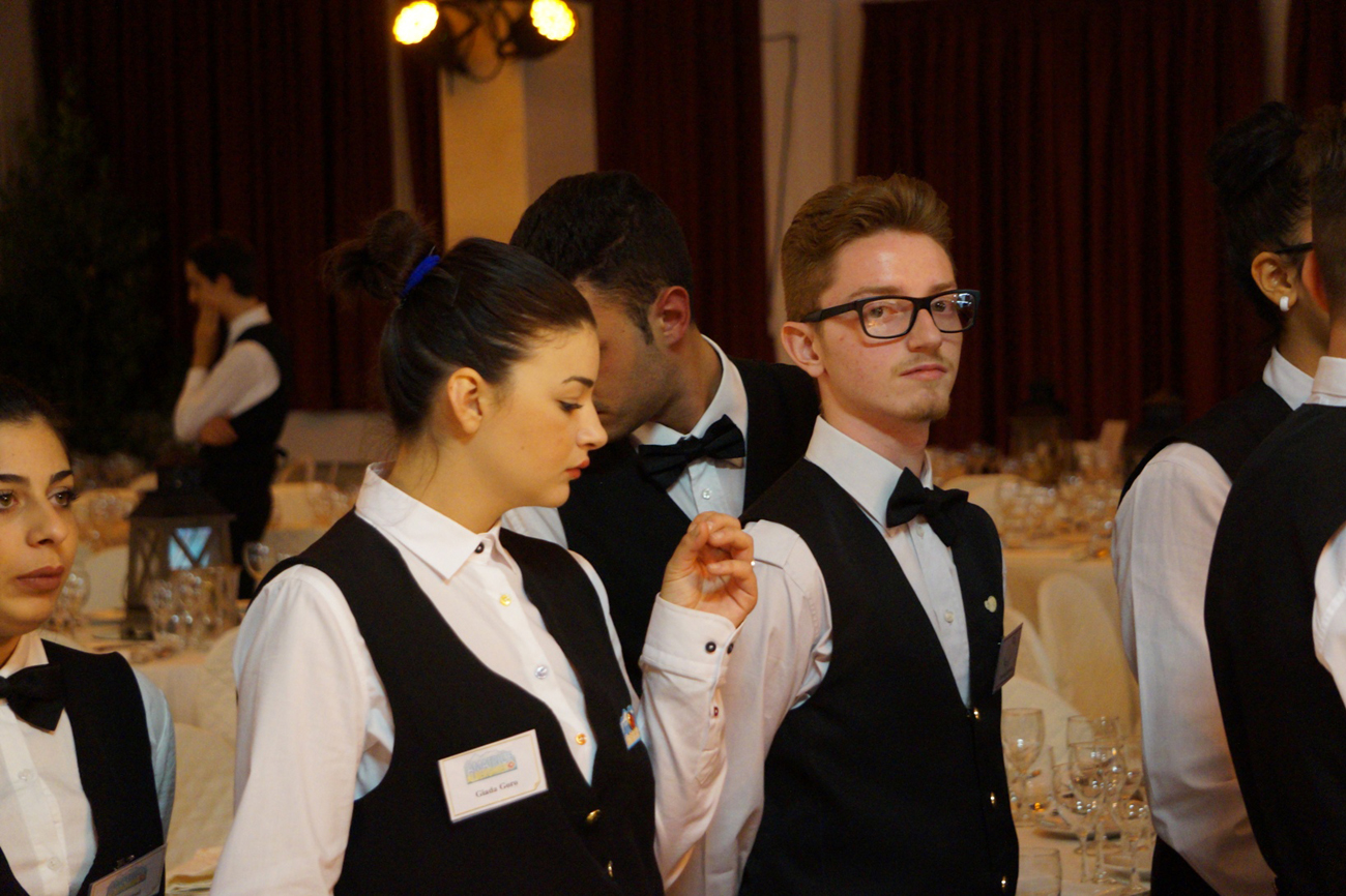 Già alle 18 i visi tesi degli studenti rendono l’idea dell’emozione che cresce per una serata di beneficienza col tutto esaurito. Con attenzione i ragazzi hanno seguito i consigli e le istruzioni dei maestri e il risultato è stato di grande professionalità ed eleganza. La generosità dei commensali si è poi estesa anche all’asta di vini pregiati immediatamente esauriti e alla richiesta di grembiuli firmati dai grandi chef.
