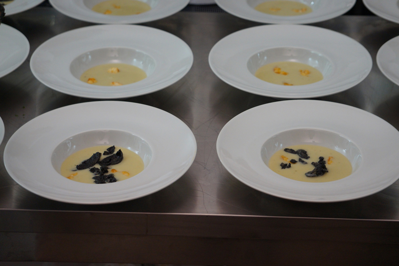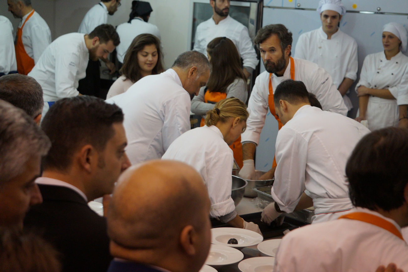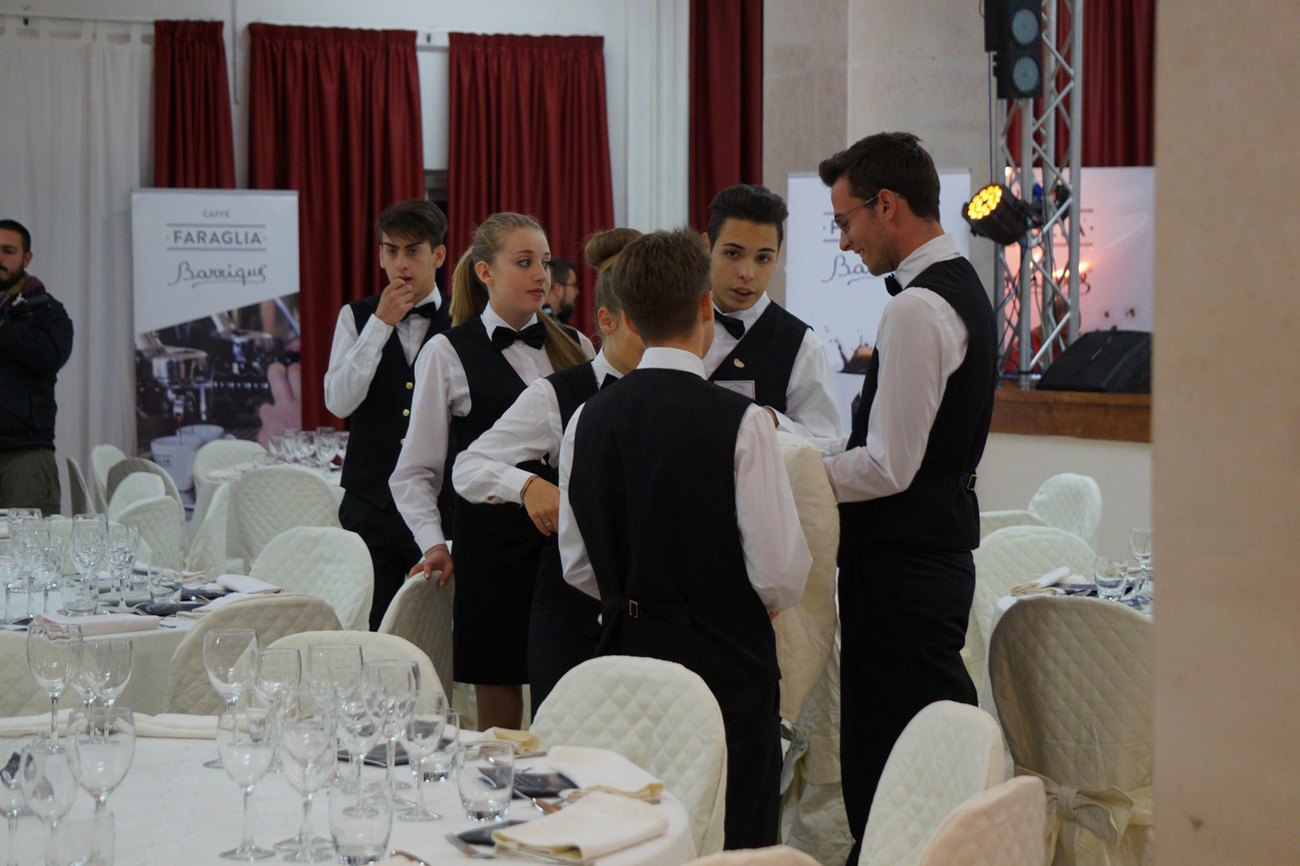 Già alle 18 i visi tesi degli studenti rendono l’idea dell’emozione che cresce per una serata di beneficienza col tutto esaurito. Con attenzione i ragazzi hanno seguito i consigli e le istruzioni dei maestri e il risultato è stato di grande professionalità ed eleganza. La generosità dei commensali si è poi estesa anche all’asta di vini pregiati immediatamente esauriti e alla richiesta di grembiuli firmati dai grandi chef.