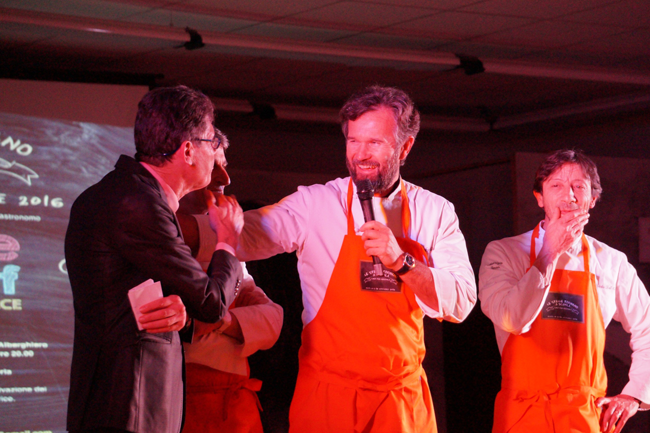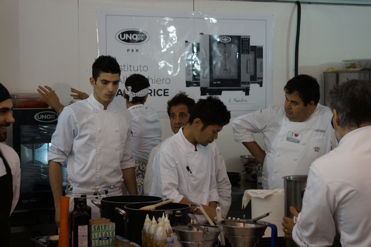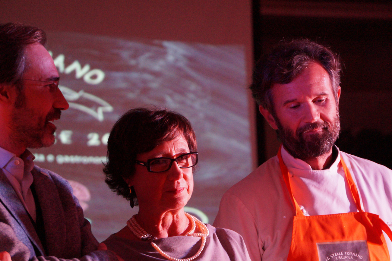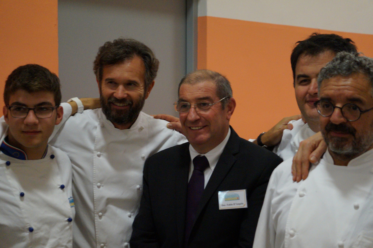 Gran finale per l’iniziativa ‘Le Stelle tornano a scuola’, una tre giorni di solidarietà e grande gastronomia che ha visto coinvolti i ragazzi degli istituti alberghieri di Rieti e Amatrice nell’aula magna del Costaggini insieme ai grandi chef di Rieti, Roma e ad alcuni degli chef migliori al mondo: Massimo Bottura, Moreno Cedroni, Maurizio e Sandro Serva (ideatori del progetto), Gennaro Esposito, Carlo Cracco e Mauro Uliassi.
