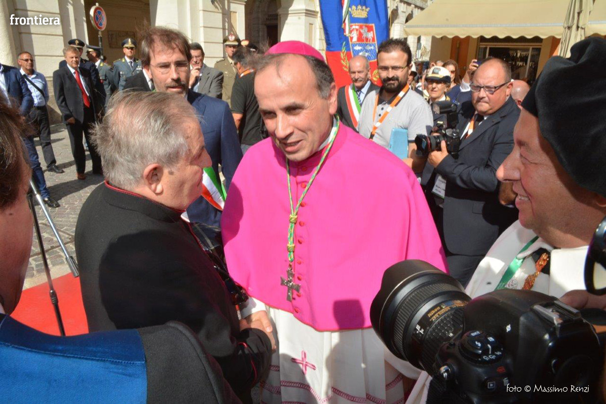 «Appare necessario, in primo luogo, riscoprire e coltivare il senso di appartenenza alla comunità, promuovere un rinnovato senso civico che agevoli la convivenza civile e permetta a tutti di sentirsi parte della famiglia umana, nella quale aiutarsi l’un l’altro come fratelli e sorelle. Farsi vicini e farsi prossimi per vivere, come direbbe Lei, quella “tensione di comunione” che costituisce lievito indispensabile per far crescere un nuovo umanesimo» ha detto il sindaco di Rieti, Simone Petrangeli, accogliendo mons. Domenico Pompili al suo arrivo in città, a pochi minuti dalla sua ordinazione episcopale.