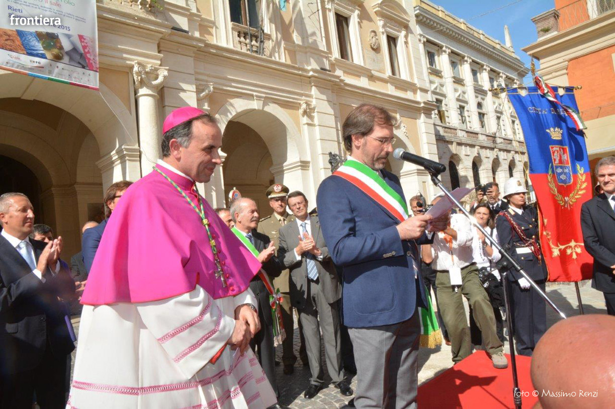 Parole che hanno trovato una qualche assonanza con quelle di risposta del nuovo vescovo di Rieti, che da parte sua ha preso l’impegno di «ascoltare e condividere tutti gli sforzi indirizzati al bene comune e garantisco una leale collaborazione perché la comunità cristiana dia il suo apporto per uno sviluppo che sappia coniugare insieme rispetto dell’ambiente e mercato del lavoro, portando a sistema le peculiarità di questo territorio: la natura, le acque, il percorso francescano, l’arte, l’agricoltura e perché no la tecnologia, che proprio da qui nei primi anni ’70 aveva iniziato a far sentire le sue irresistibili possibilità. Una questione mi ha colpito sin dall’inizio ed è la capacità della Città di tenere il collegamento con il resto del Paese, valorizzando la vicinanza alla Capitale non come una minaccia, ma come una promessa. Sviluppo significa facilità delle comunicazioni e infrastrutture agili che rendano accessibile e fruibile questo scrigno di storia e di risorse naturali».