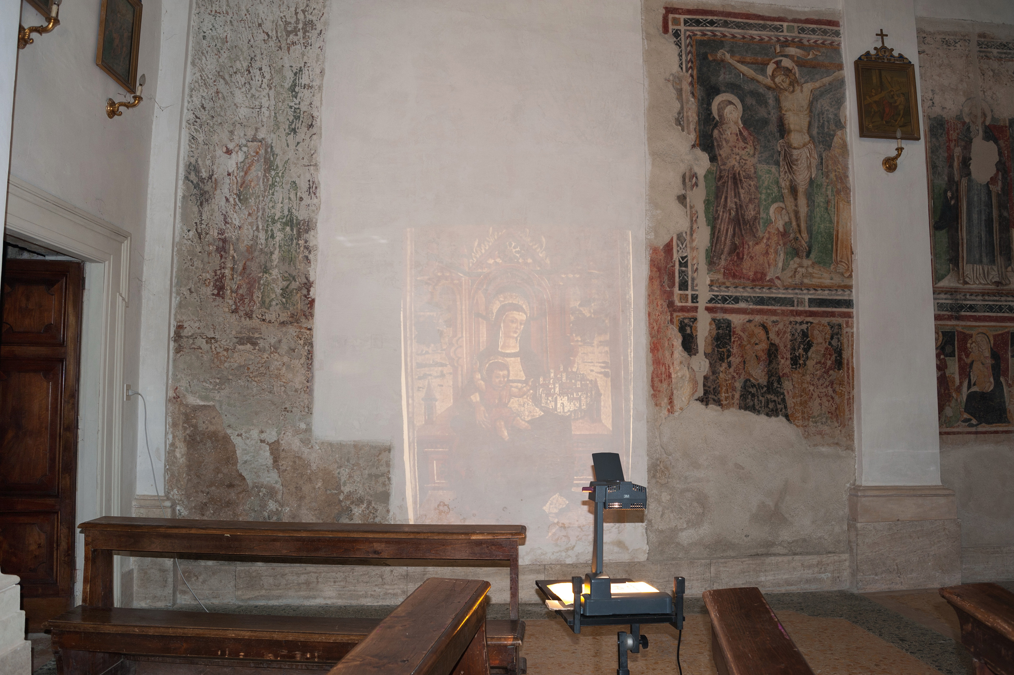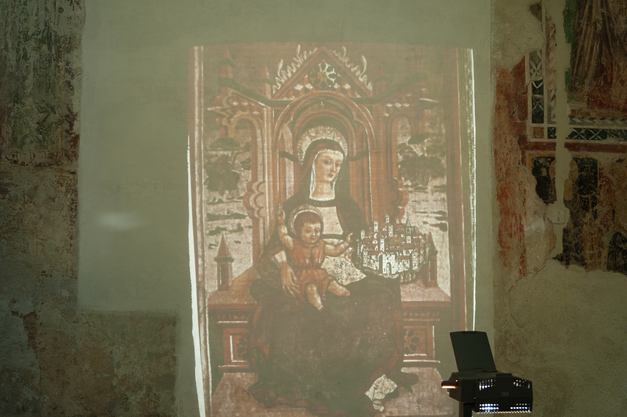 A unire idealmente portra d’Arce e Amatrice, le rispettive descrizioni geografiche e architettoniche realizzate a fresco nel Santuario dell’Icona Passatora in Ferrazza di Amatrice e nella Chiesa di S. Eusanio di Rieti, presso la quale l’installazione è situata.