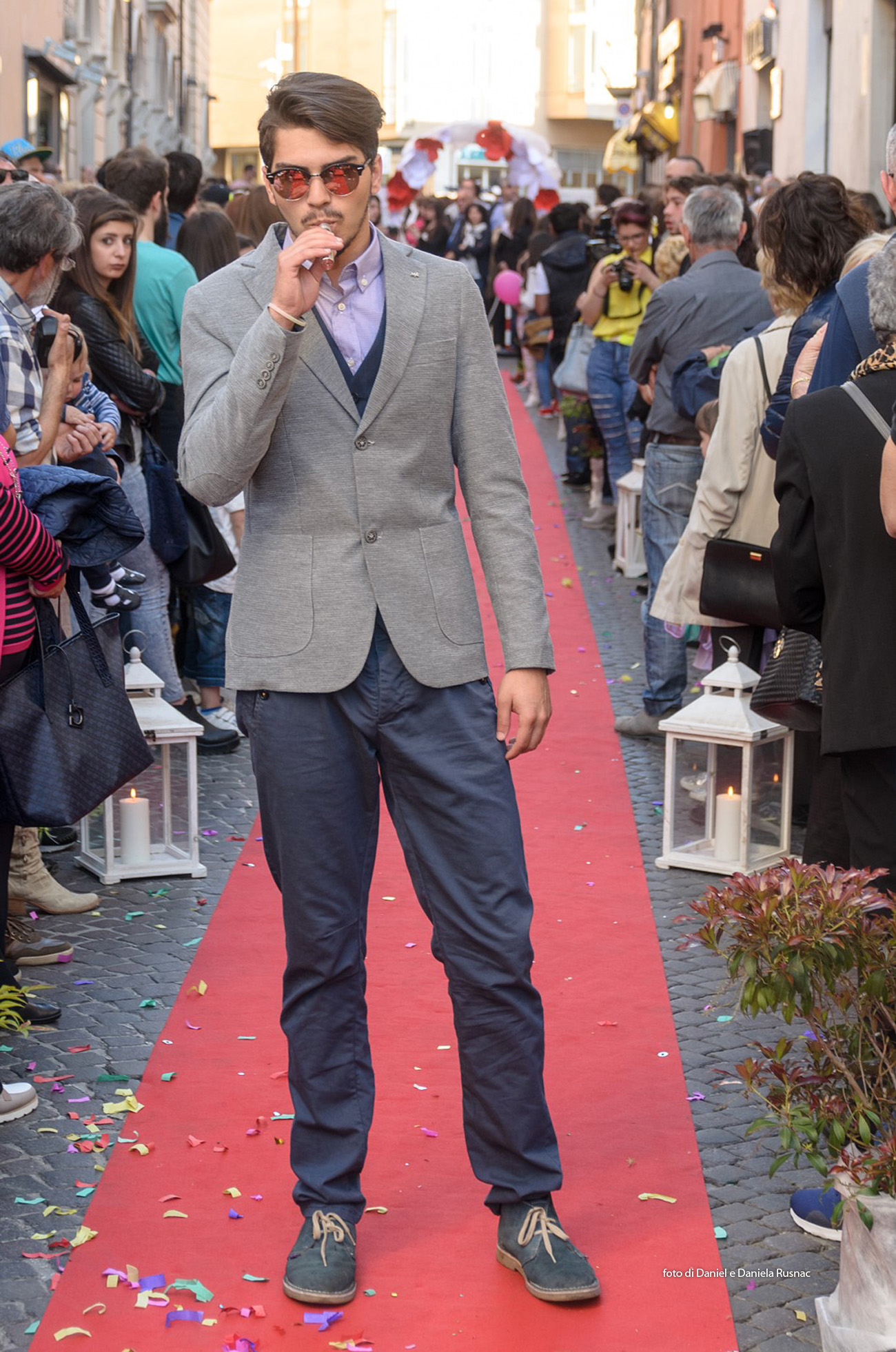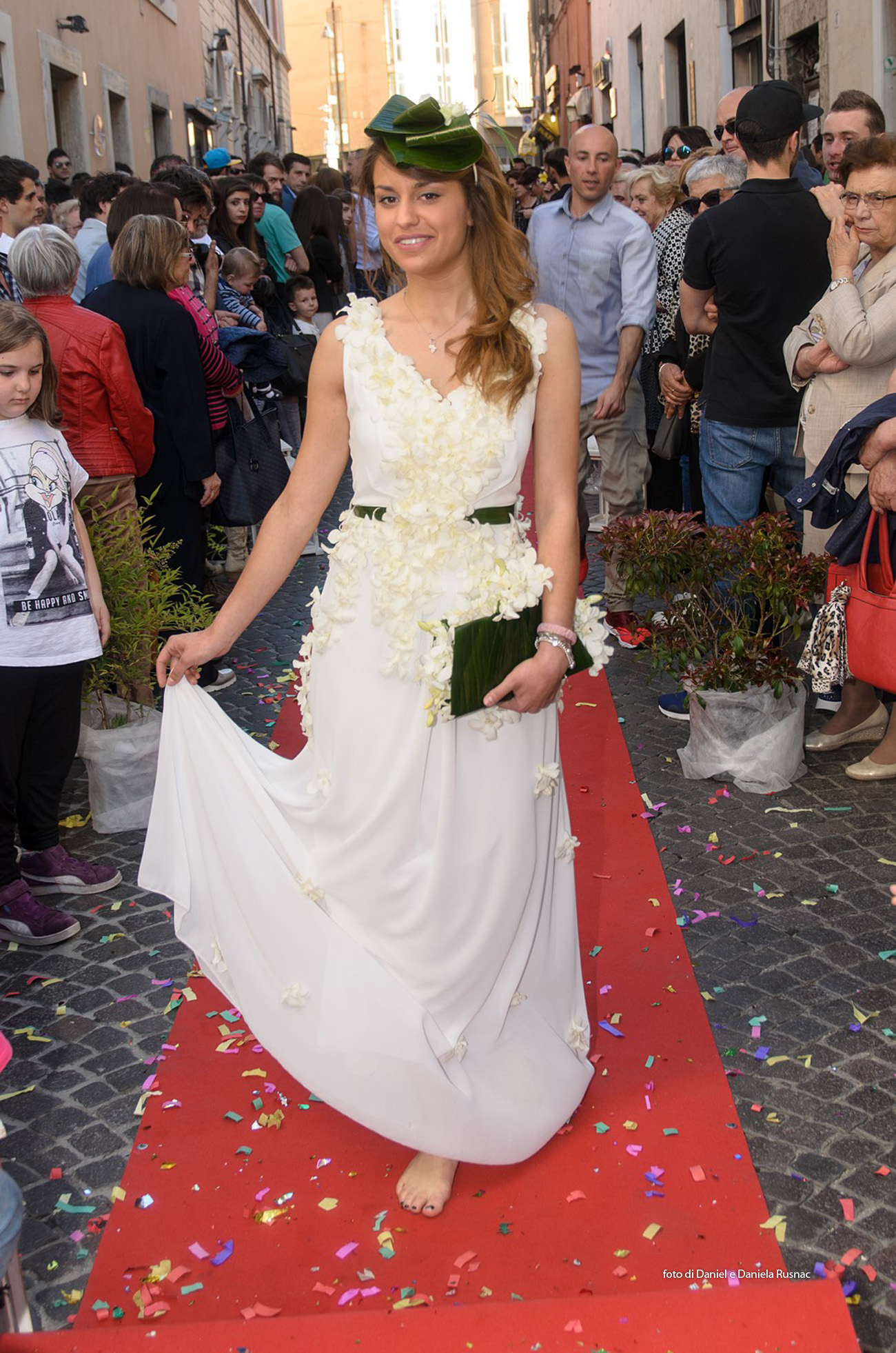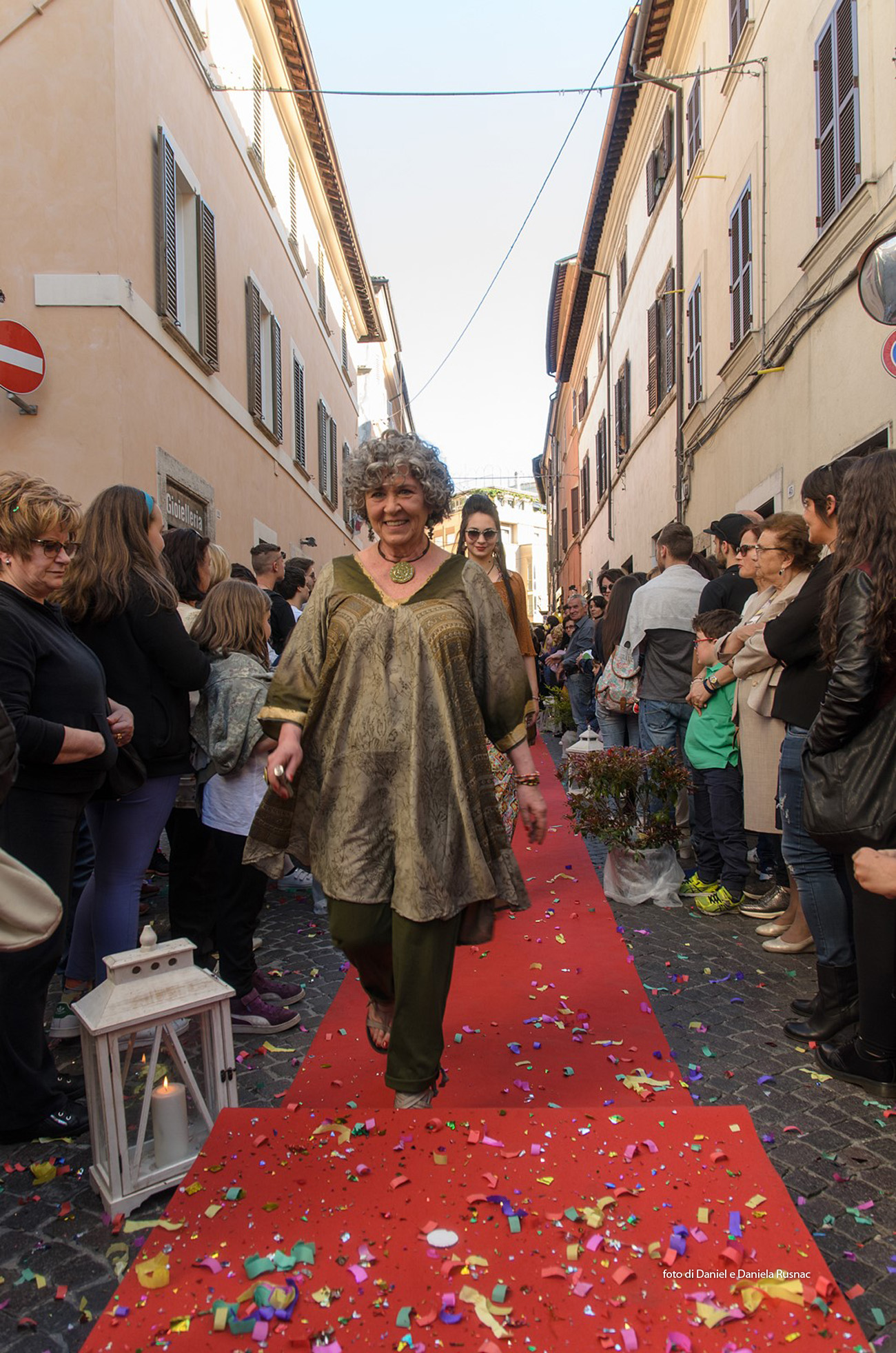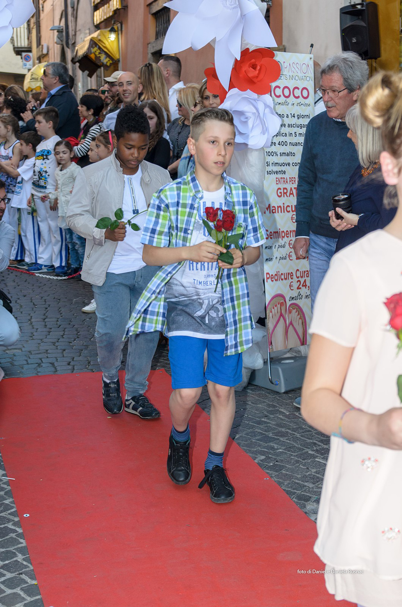 Modelle e modelli hanno sfilato sul red carpet allestito direttamente su strada per presentare le nuove collezioni e una speciale sorpresa floreale.