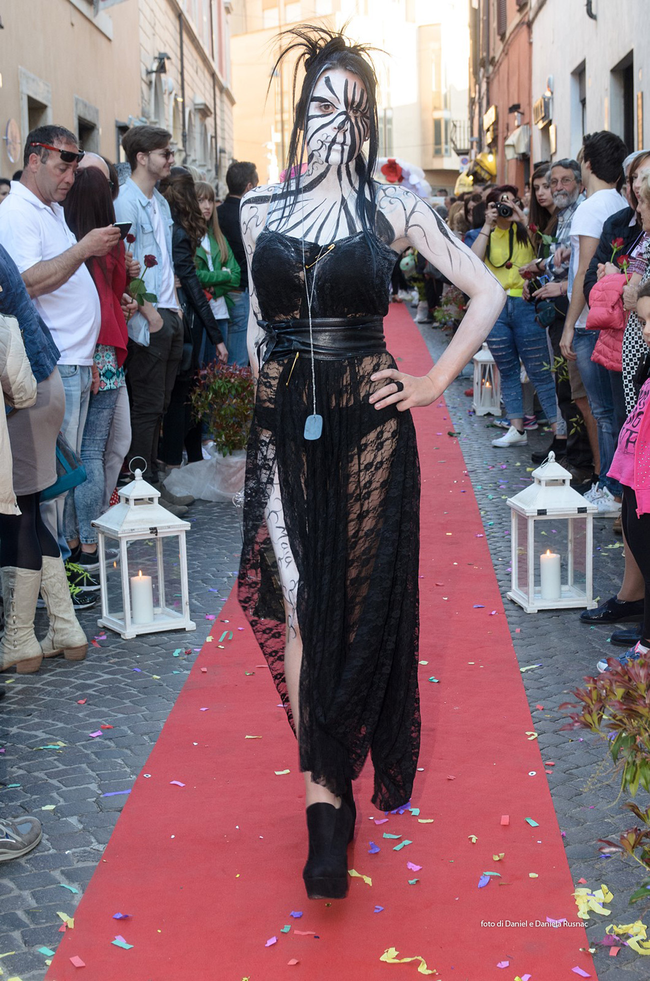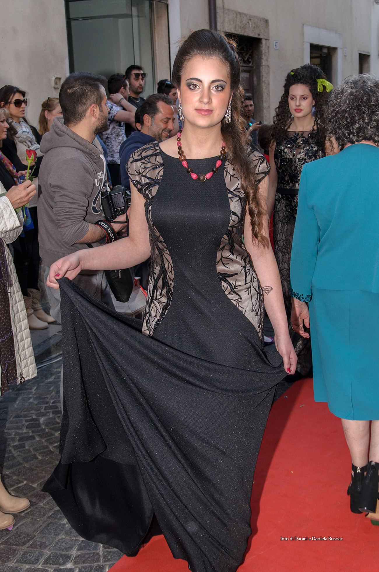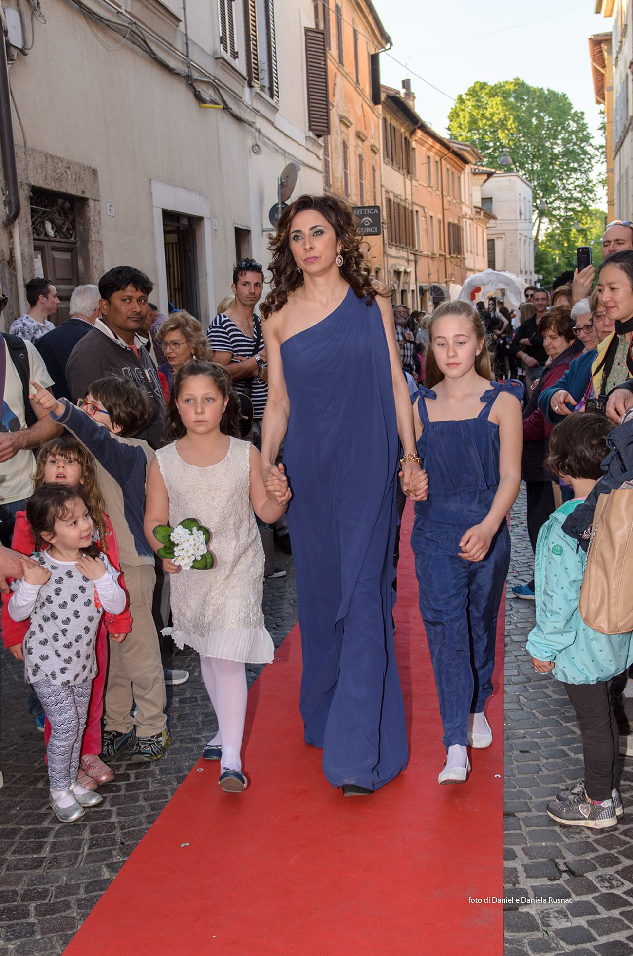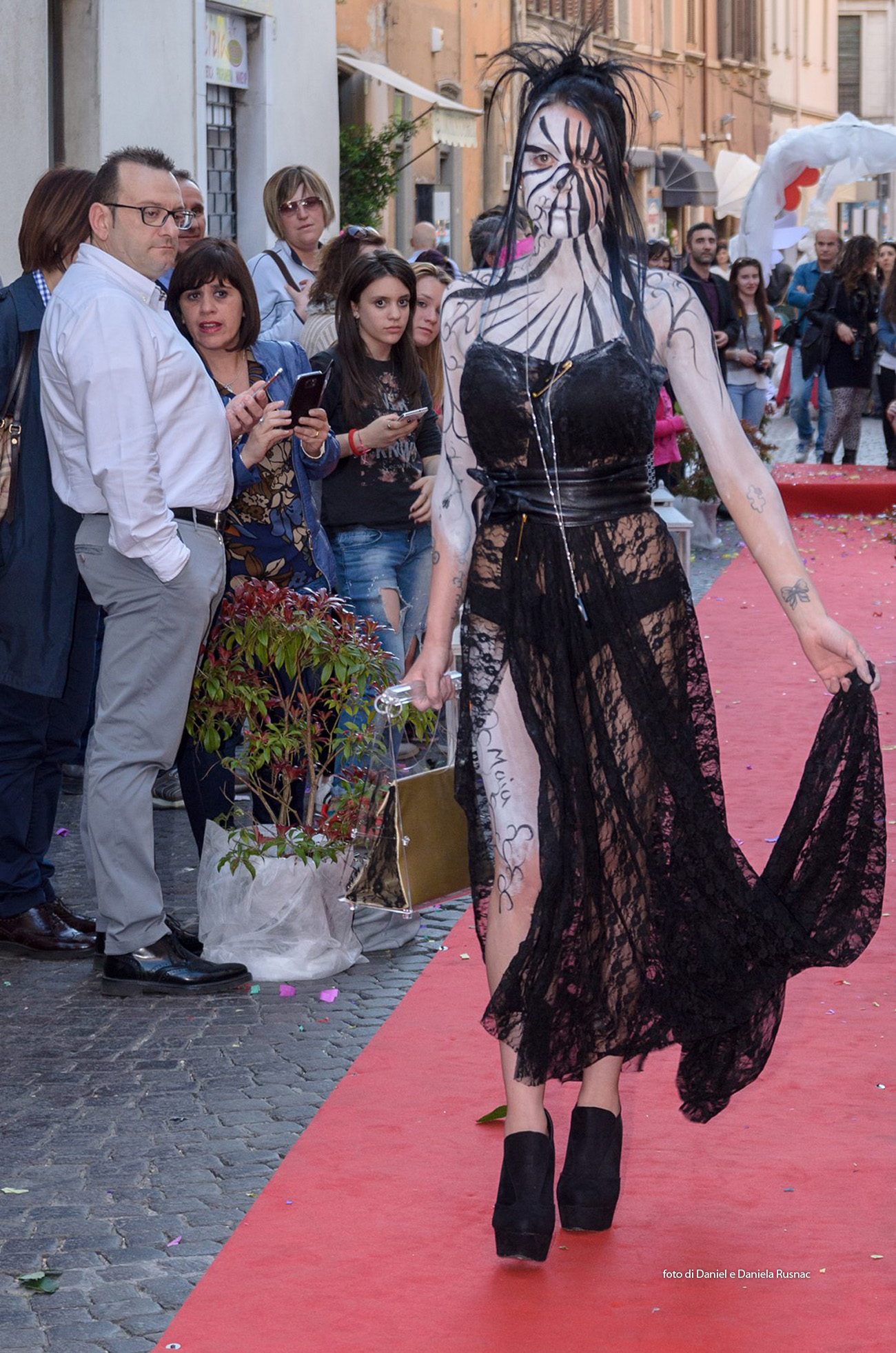 Modelle e modelli hanno sfilato sul red carpet allestito direttamente su strada per presentare le nuove collezioni e una speciale sorpresa floreale.