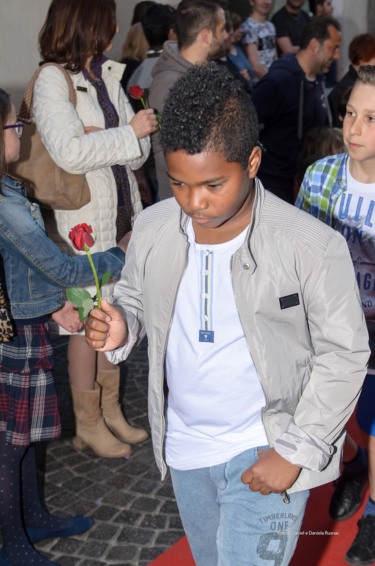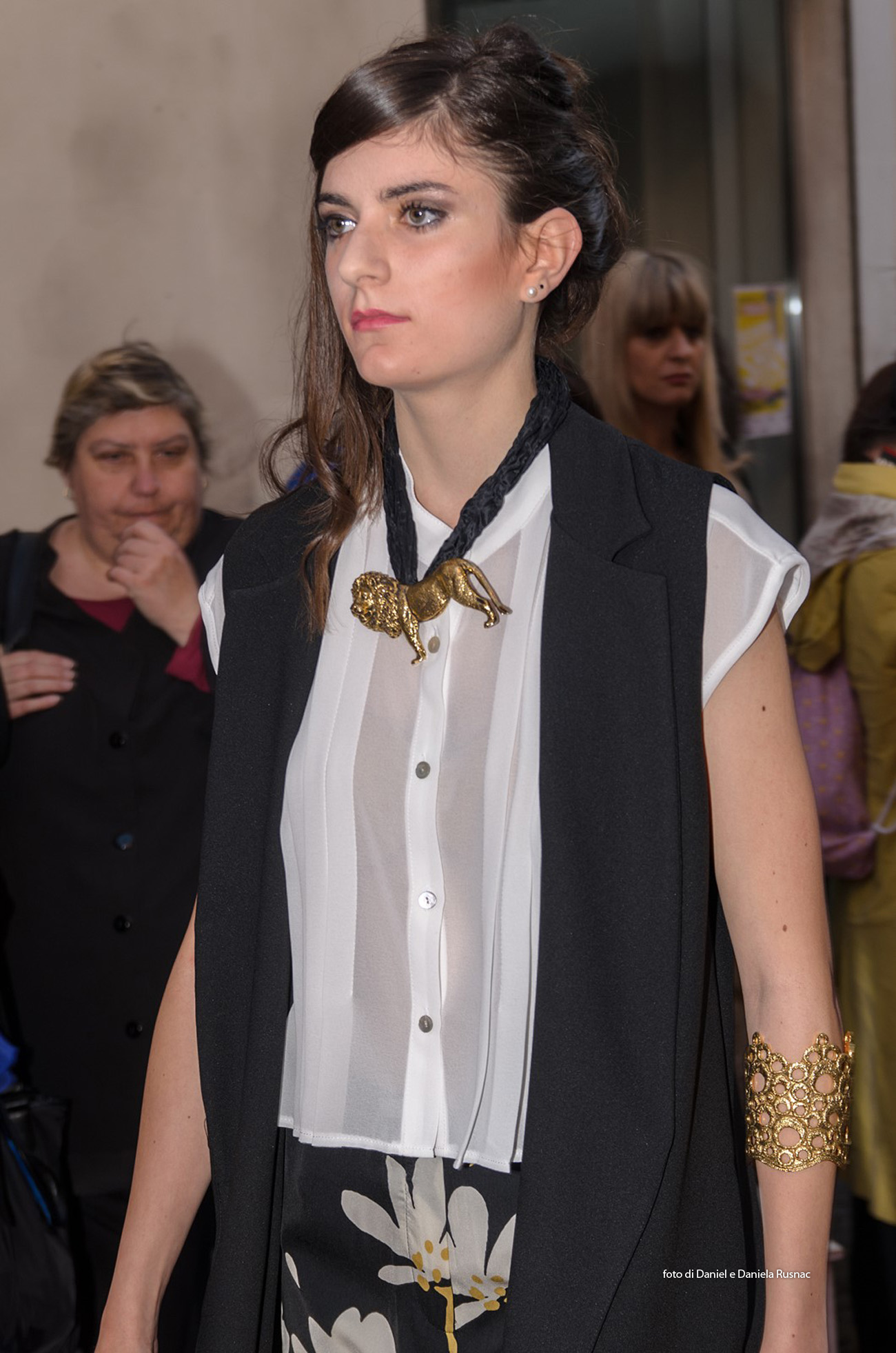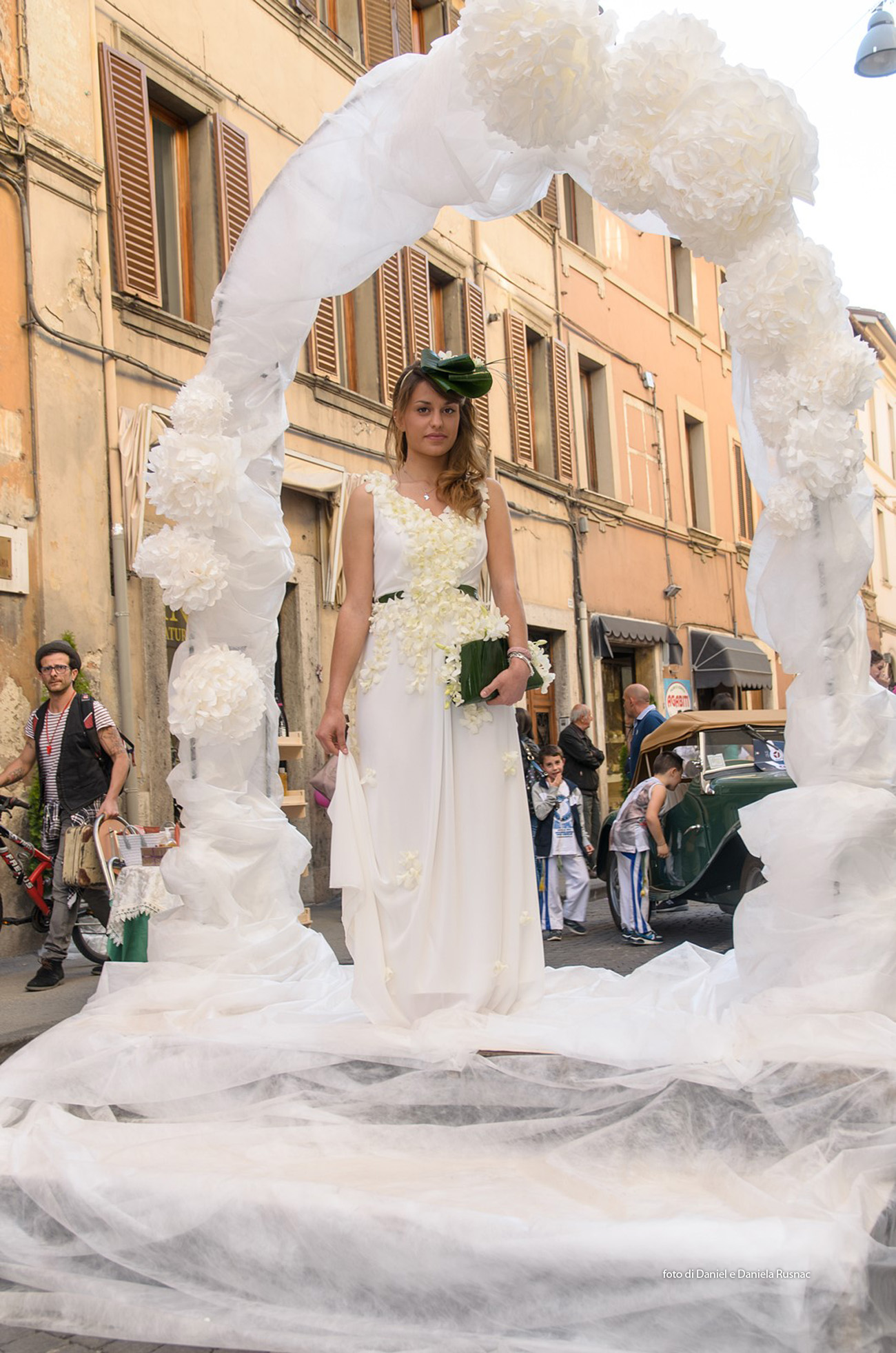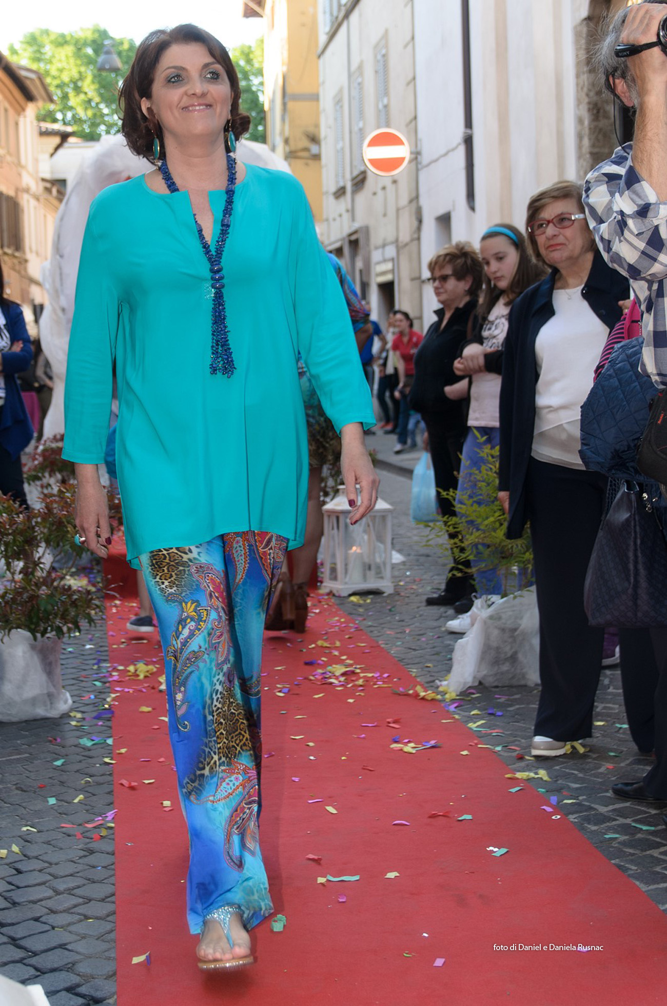 Modelle e modelli hanno sfilato sul red carpet allestito direttamente su strada per presentare le nuove collezioni e una speciale sorpresa floreale.
