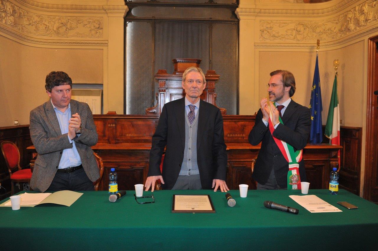 Il sindaco di Rieti Simone Petrangeli e il presidente del Consiglio comunale Gian Piero Marroni, nel corso di una cerimonia tenutasi ieri mattina in Comune, hanno consegnato al Primo Presidente della Corte Suprema di Cassazione, dott. Giovanni Canzio, la cittadinanza benemerita.